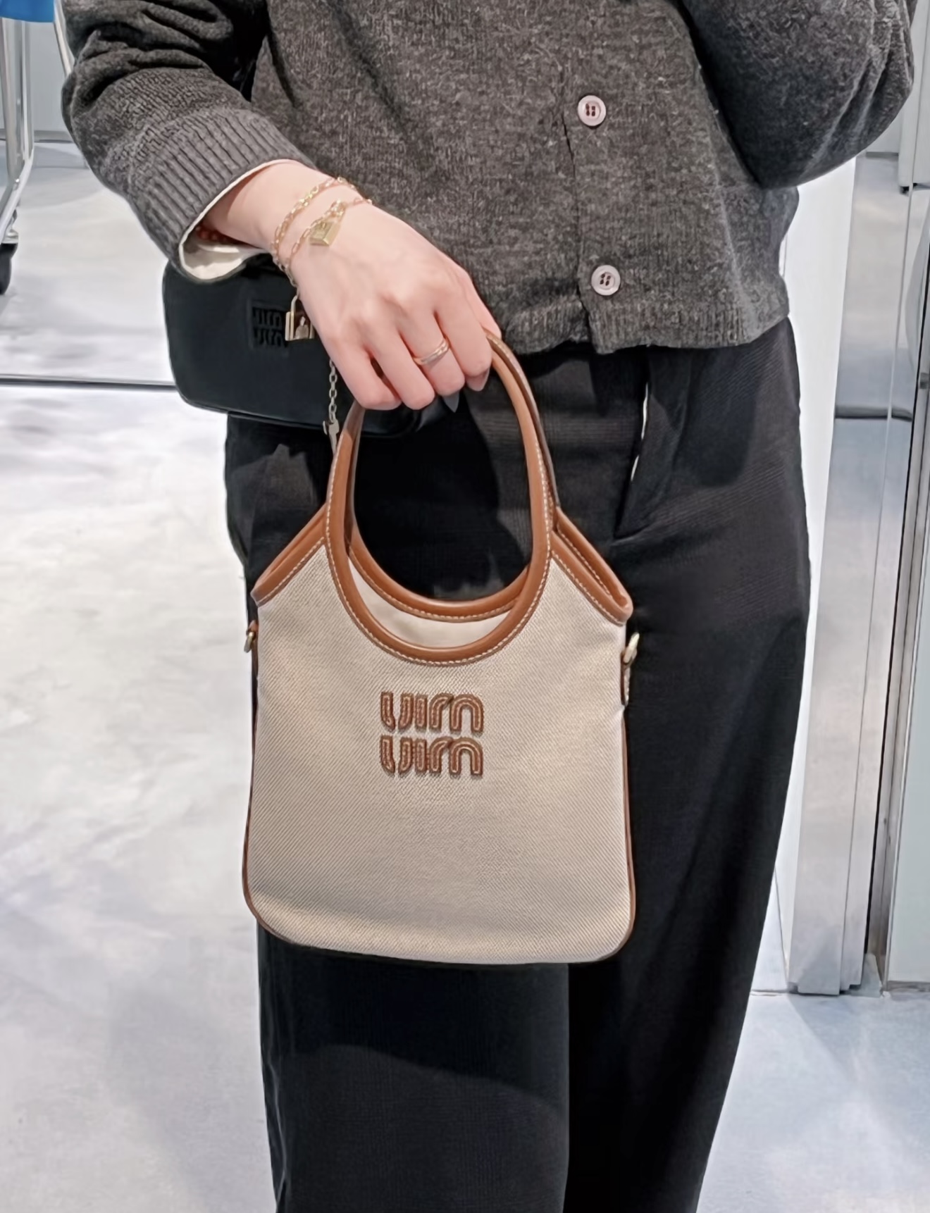 这款包包是AAAAA 1:1 质量 (非常棒). 使用了和原版一模一样的材料. 商标部分也保持了和缪缪/Miu Miu一样. 图片拍摄是实物包包拍摄, 您所收到的实物保证和我们图片一模一样.