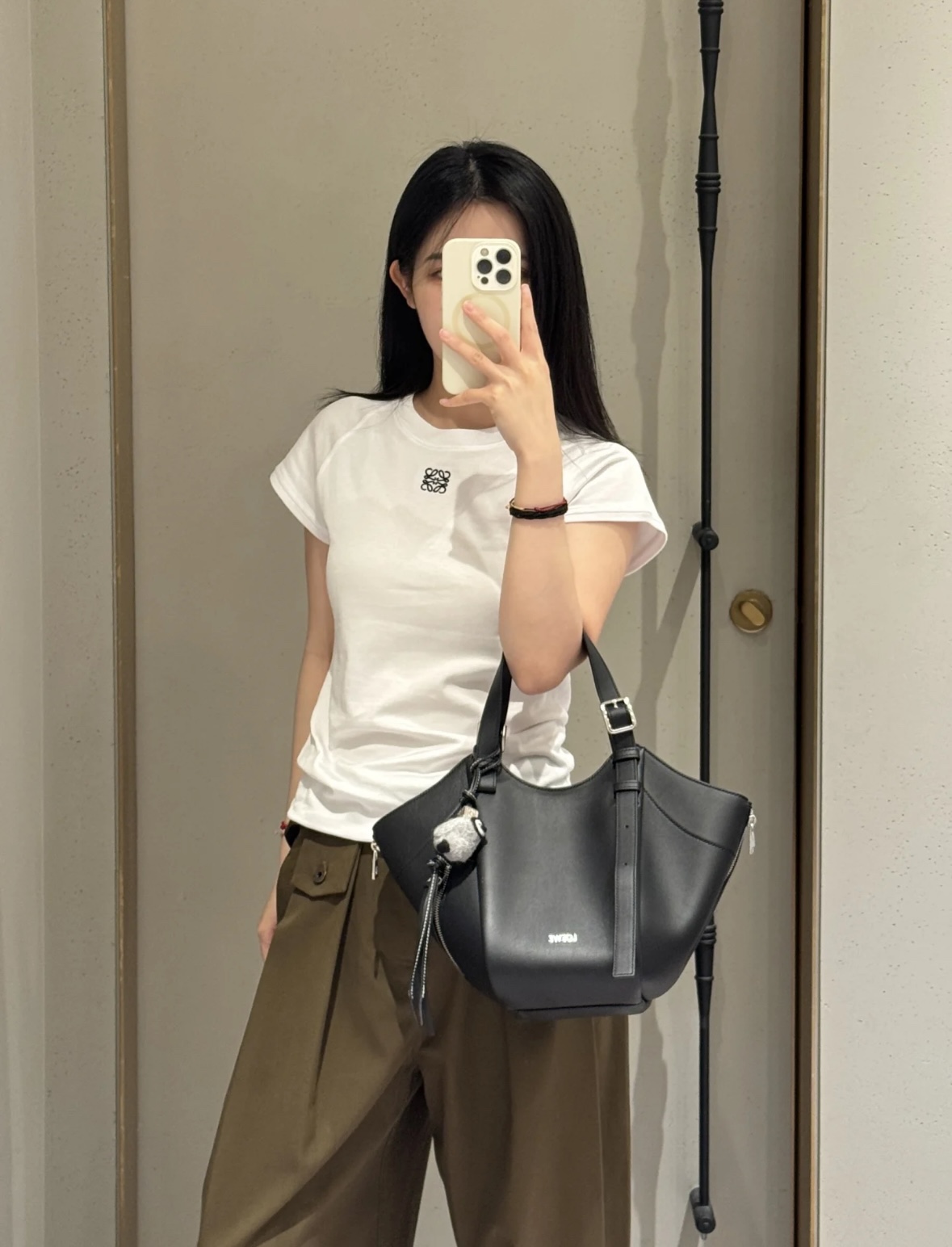 这款包包是AAAAA 1:1 质量 (非常棒). 使用了和原版一模一样的材料. 商标部分也保持了和罗意威/Loewe一样. 图片拍摄是实物包包拍摄, 您所收到的实物保证和我们图片一模一样.