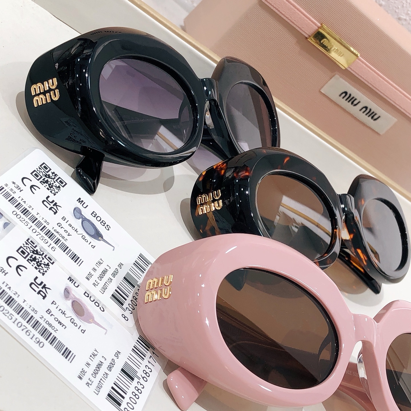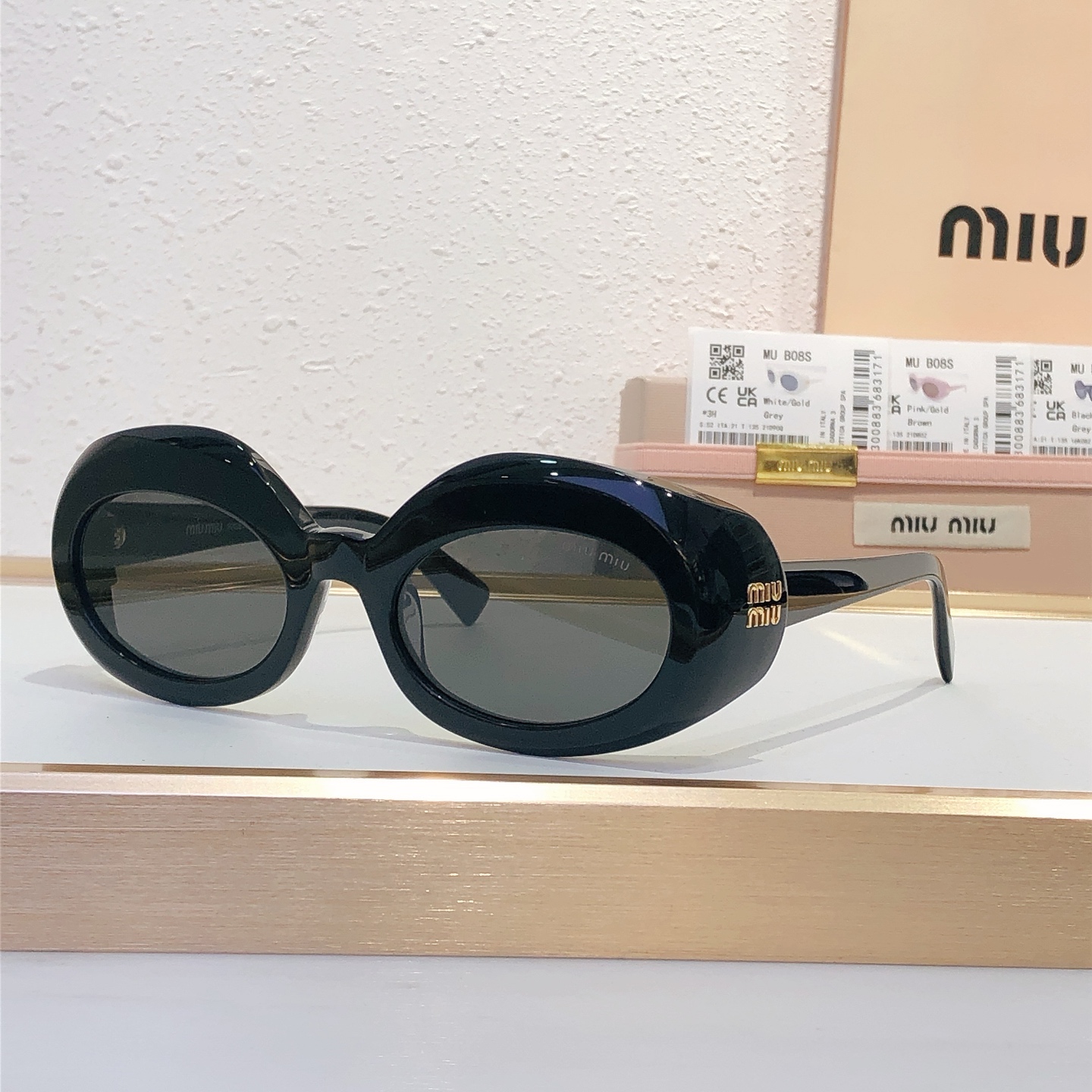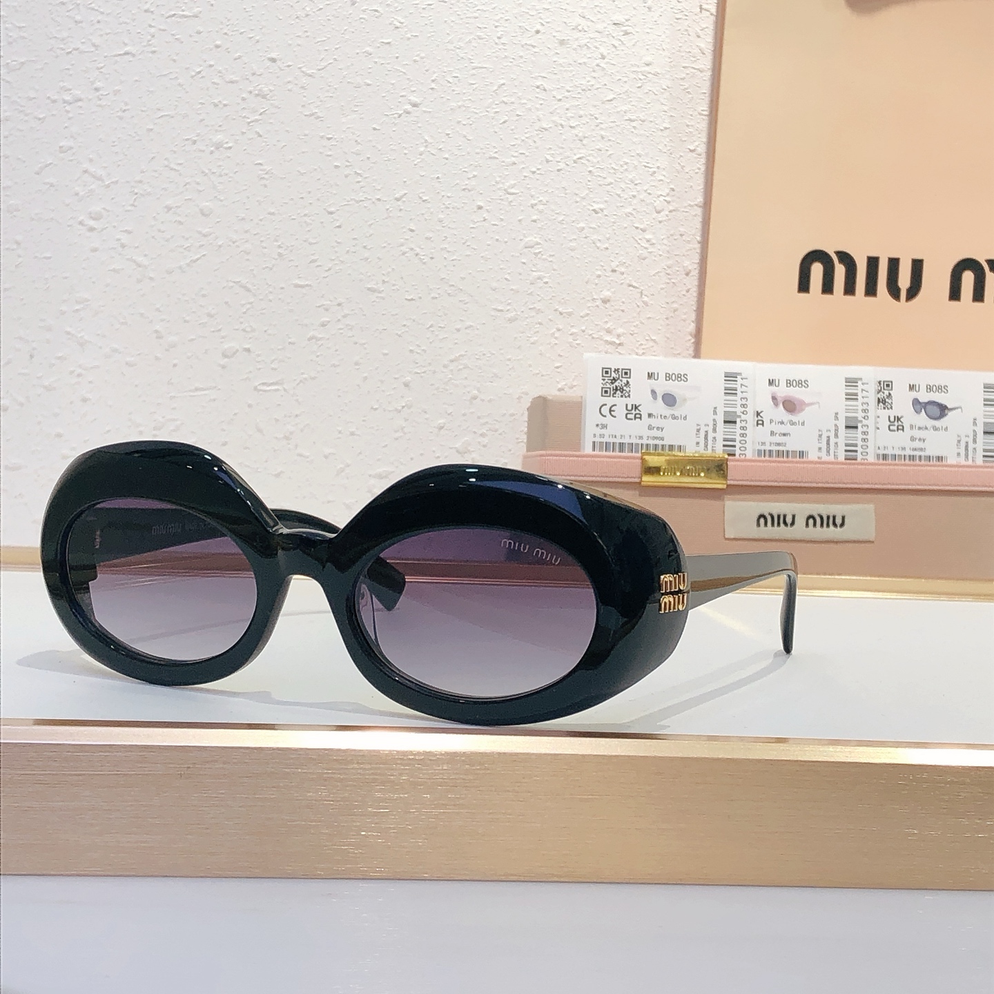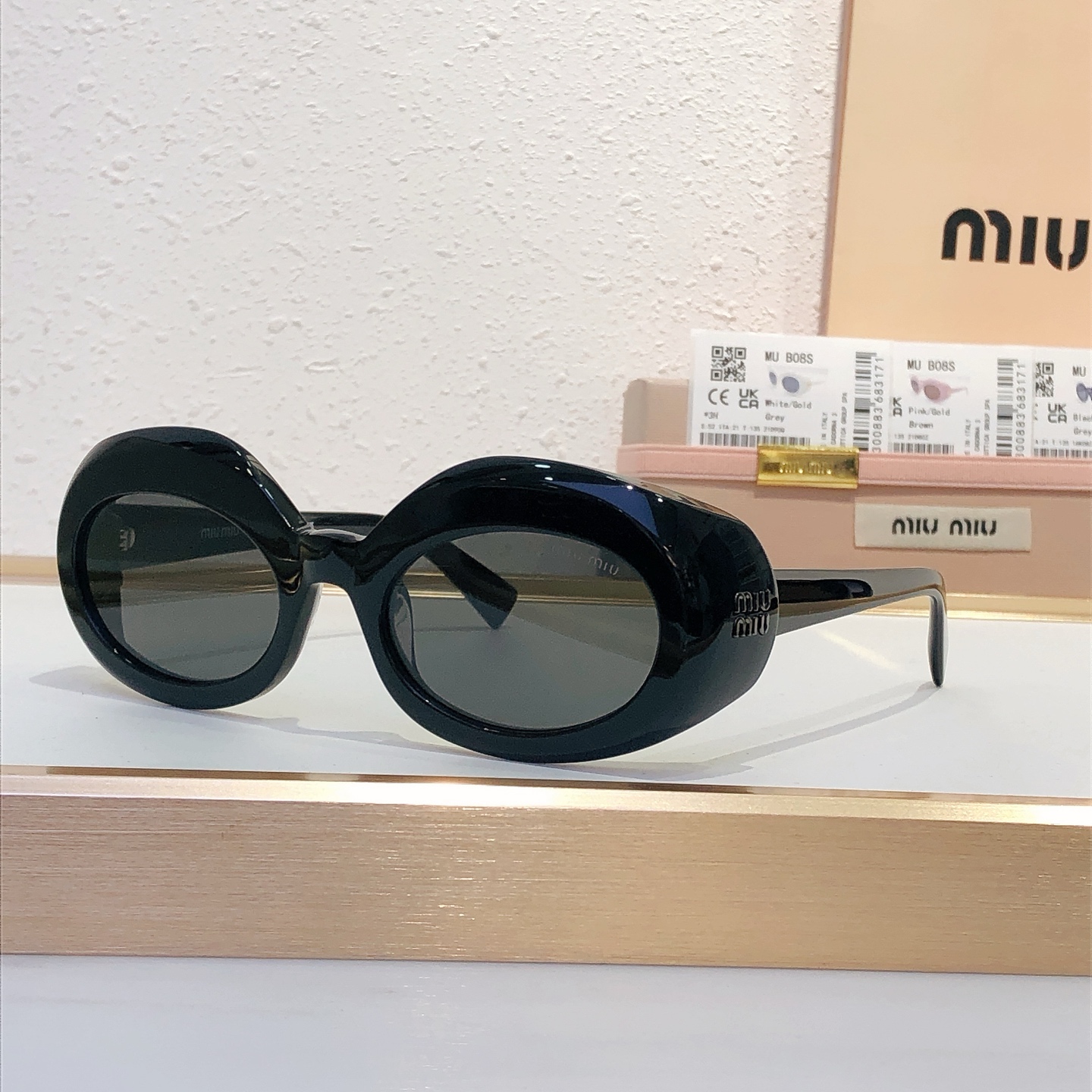这款太阳眼镜是AAAAA 1:1 质量 (非常棒). 使用了和原版一模一样的材料. 商标部分也保持了和缪缪/Miu Miu一样. 图片拍摄是实物太阳眼镜拍摄, 您所收到的实物保证和我们图片一模一样.