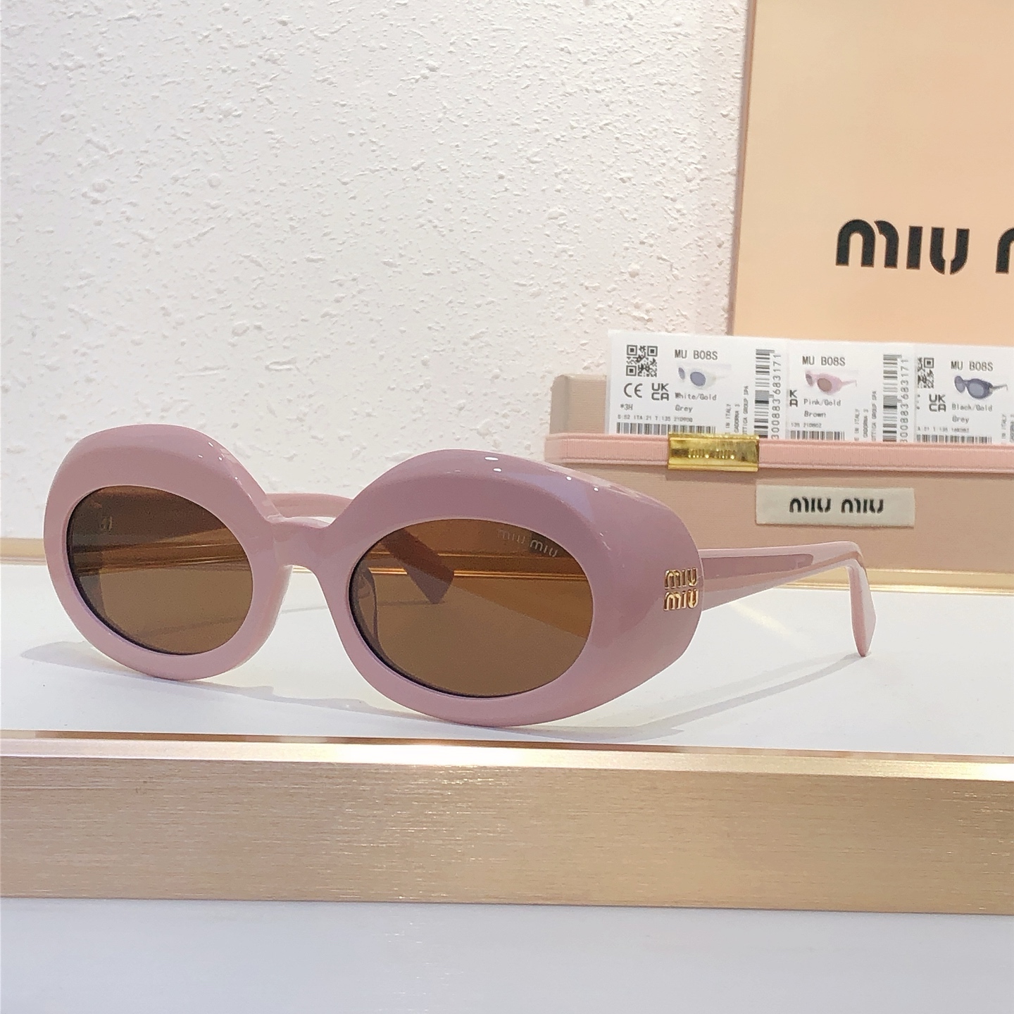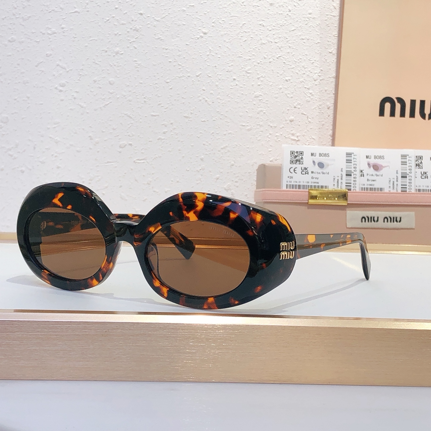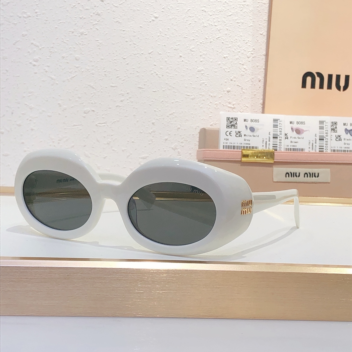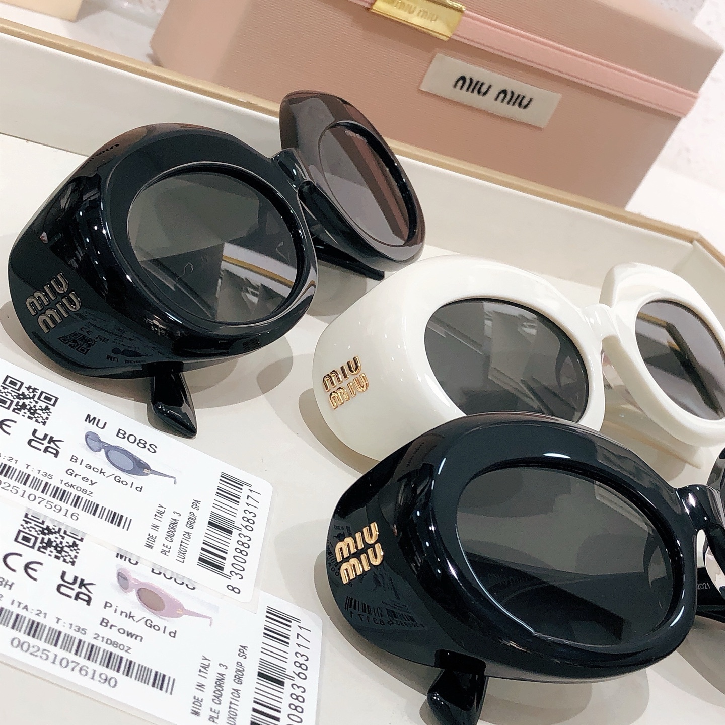 这款太阳眼镜是AAAAA 1:1 质量 (非常棒). 使用了和原版一模一样的材料. 商标部分也保持了和缪缪/Miu Miu一样. 图片拍摄是实物太阳眼镜拍摄, 您所收到的实物保证和我们图片一模一样.