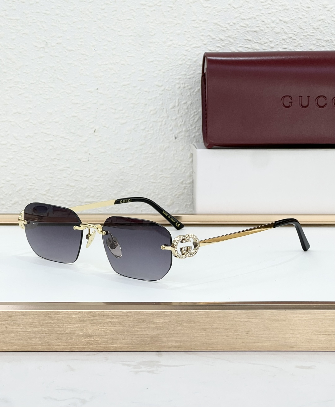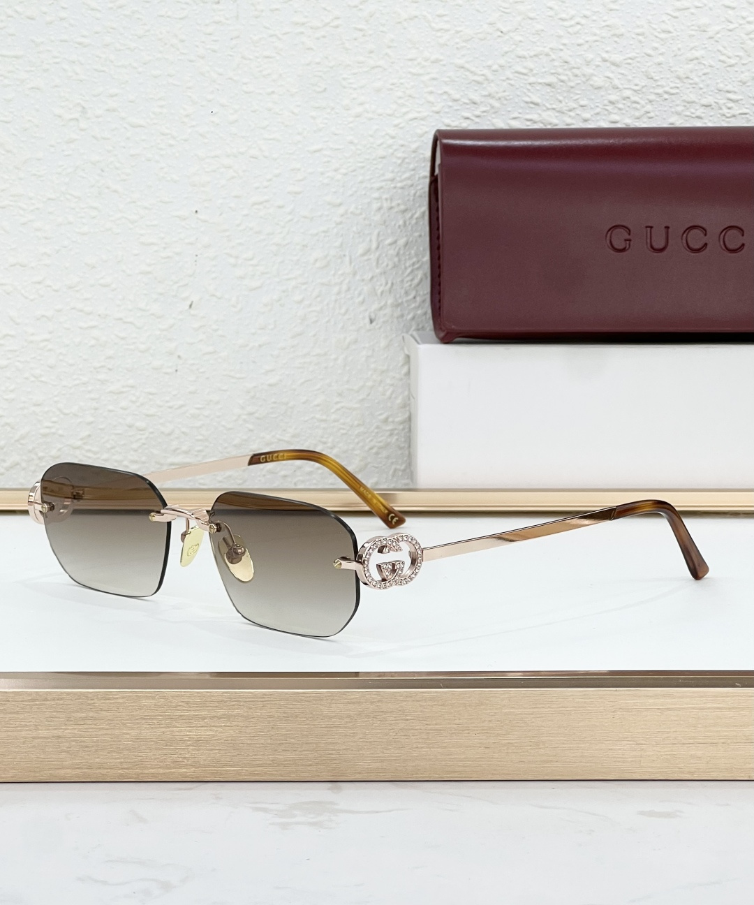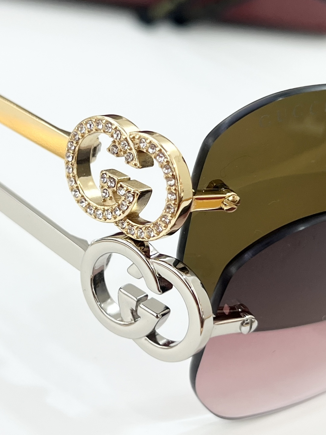 这款太阳眼镜是AAAAA 1:1 质量 (非常棒). 使用了和原版一模一样的材料. 商标部分也保持了和古奇/Gucci一样. 图片拍摄是实物太阳眼镜拍摄, 您所收到的实物保证和我们图片一模一样.