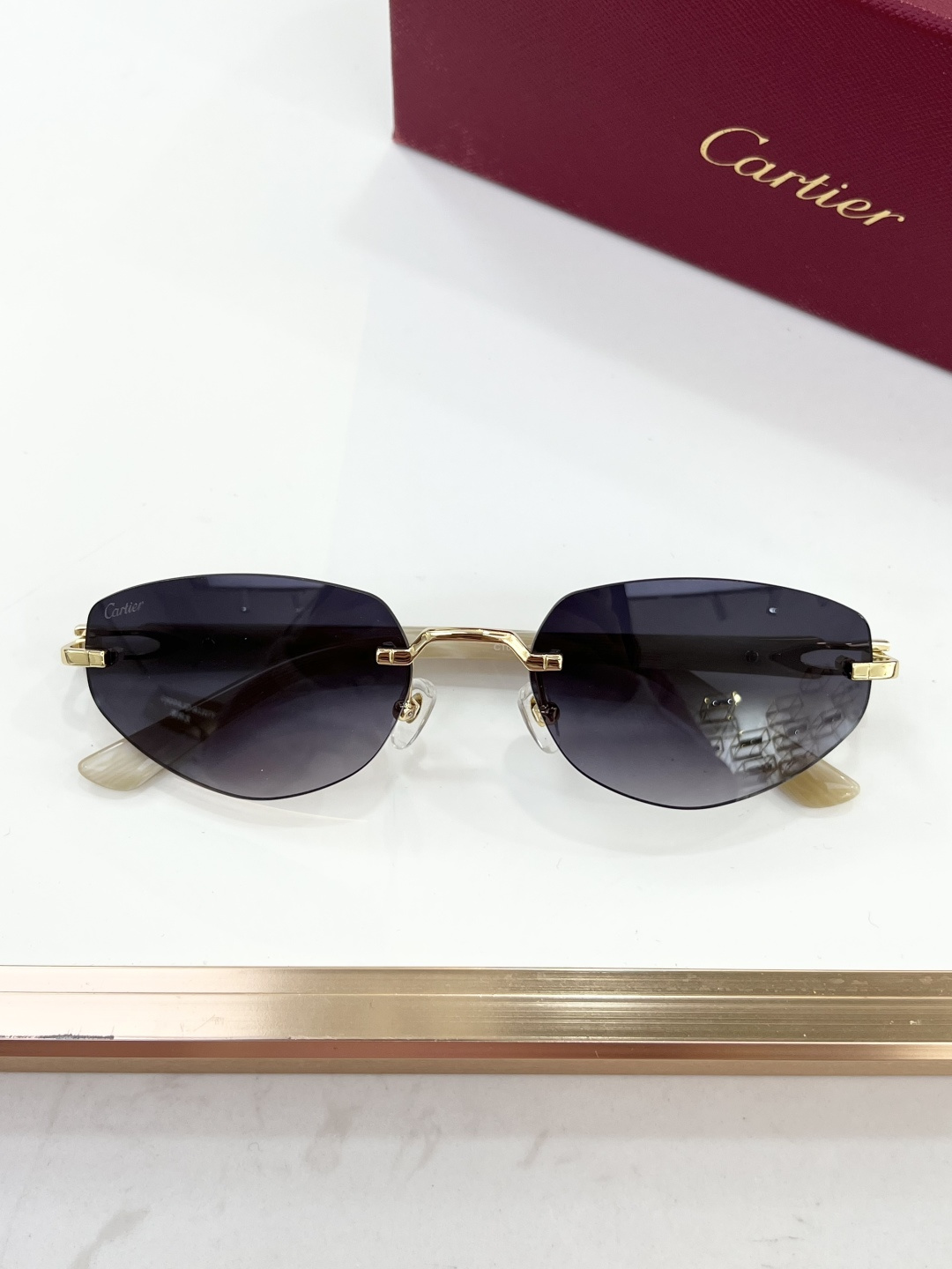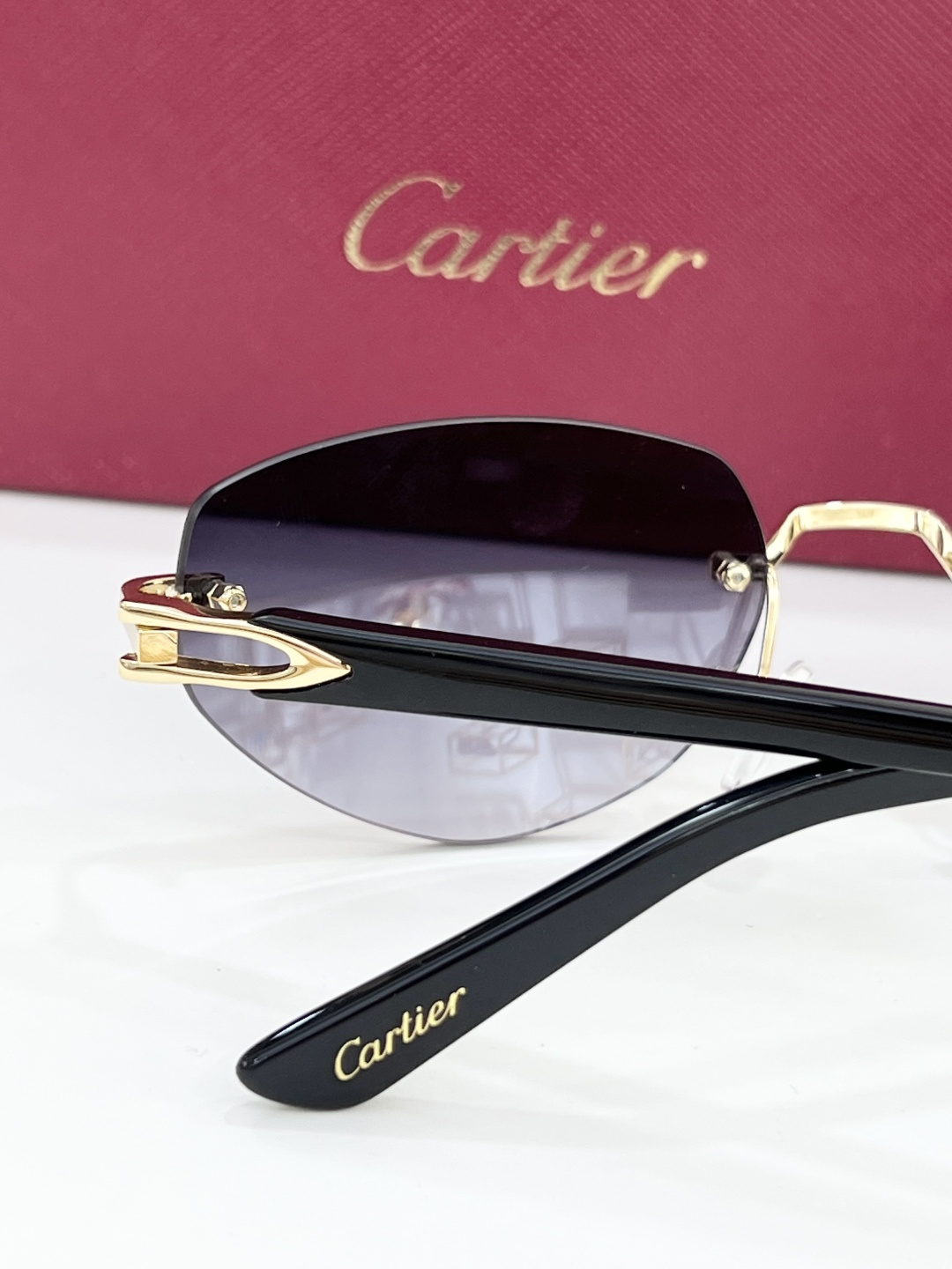 这款太阳眼镜是AAAAA 1:1 质量 (非常棒). 使用了和原版一模一样的材料. 商标部分也保持了和卡地亚/Cartier一样. 图片拍摄是实物太阳眼镜拍摄, 您所收到的实物保证和我们图片一模一样.
