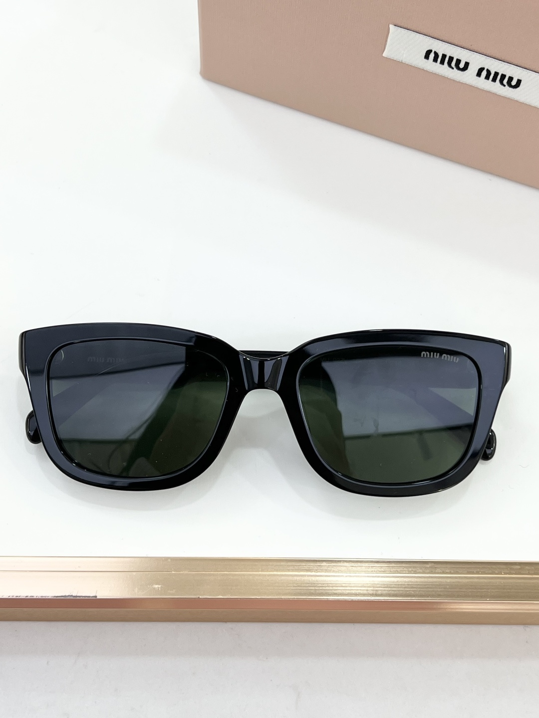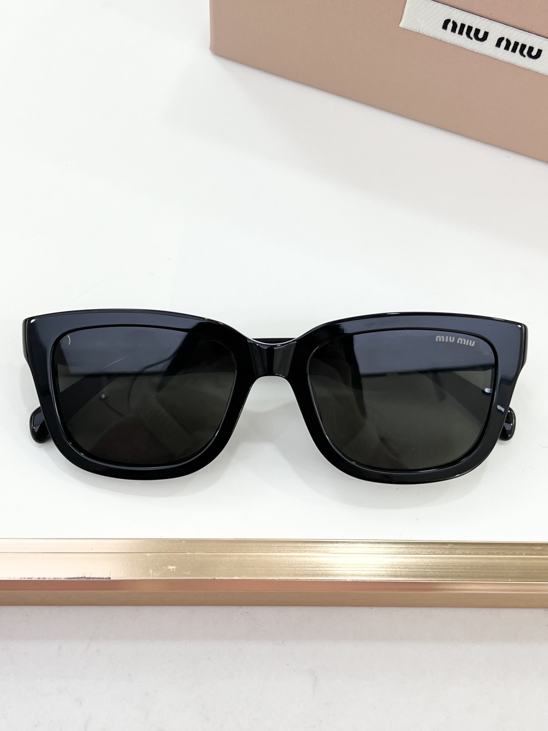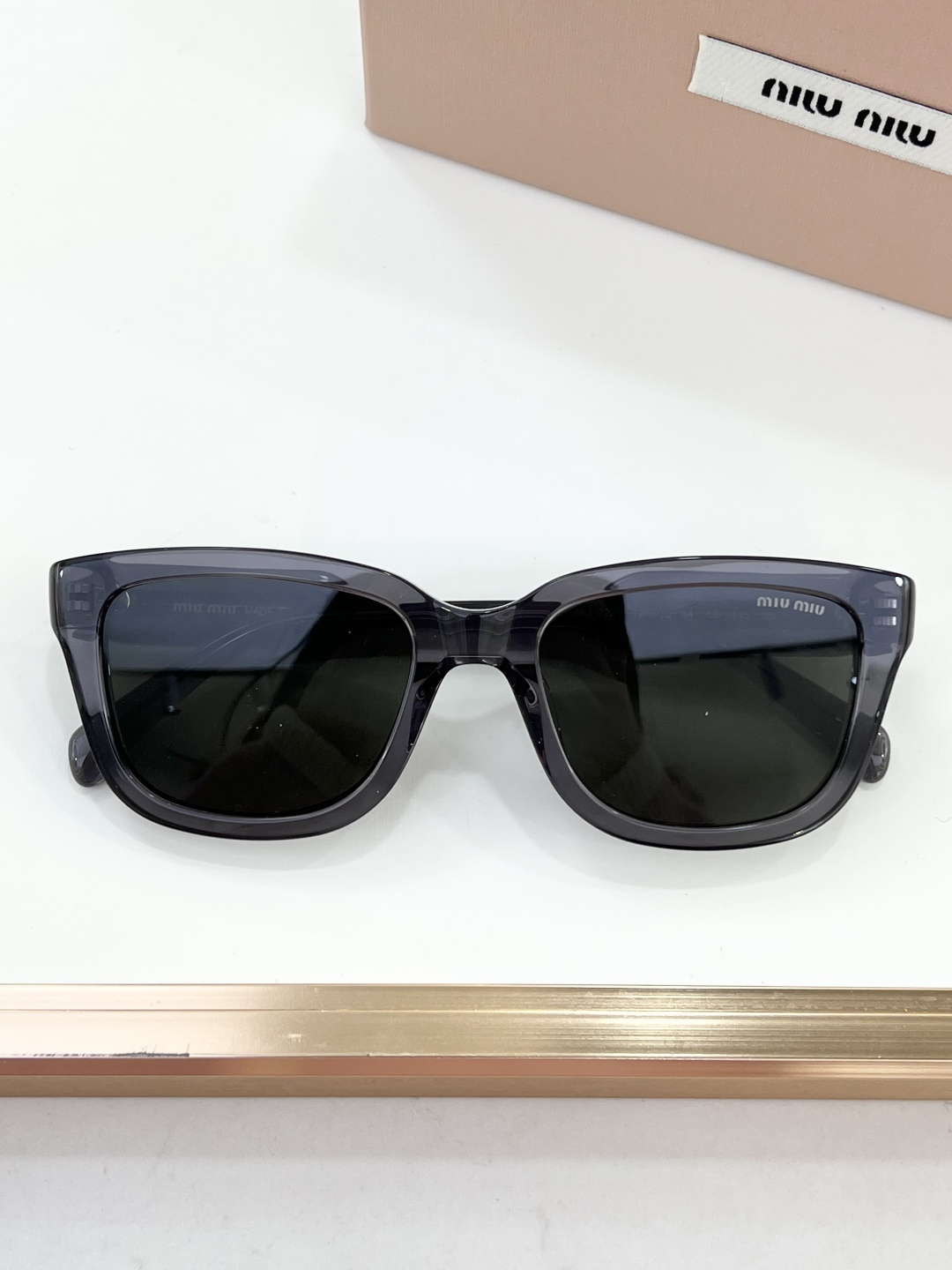 这款太阳眼镜是AAAAA 1:1 质量 (非常棒). 使用了和原版一模一样的材料. 商标部分也保持了和缪缪/Miu Miu一样. 图片拍摄是实物太阳眼镜拍摄, 您所收到的实物保证和我们图片一模一样.