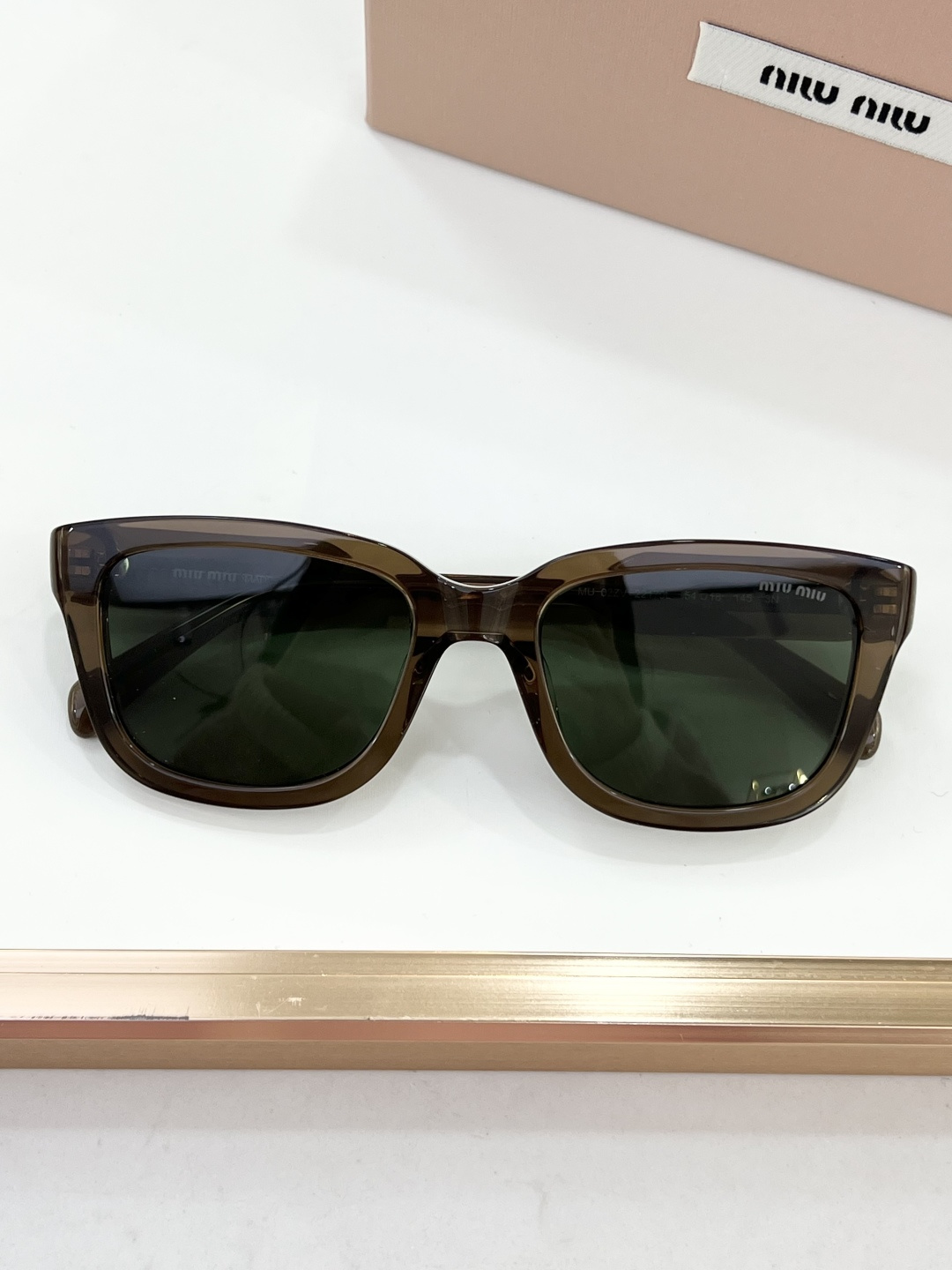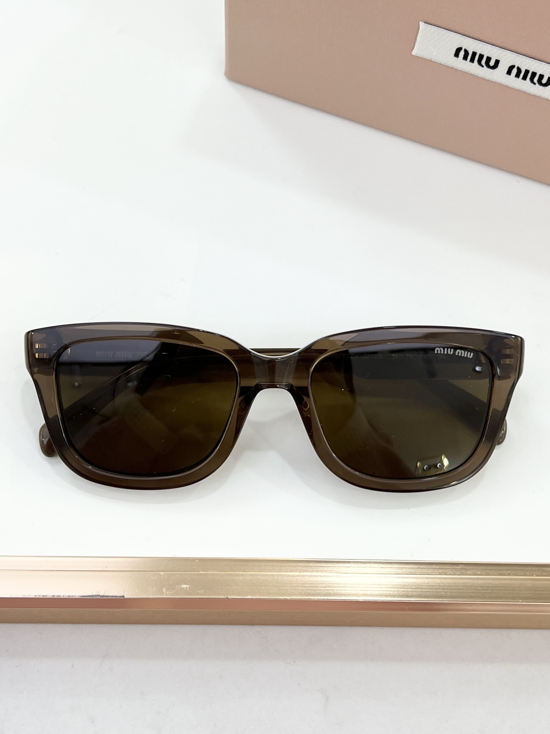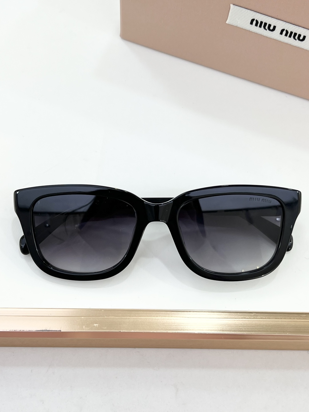 这款太阳眼镜是AAAAA 1:1 质量 (非常棒). 使用了和原版一模一样的材料. 商标部分也保持了和缪缪/Miu Miu一样. 图片拍摄是实物太阳眼镜拍摄, 您所收到的实物保证和我们图片一模一样.