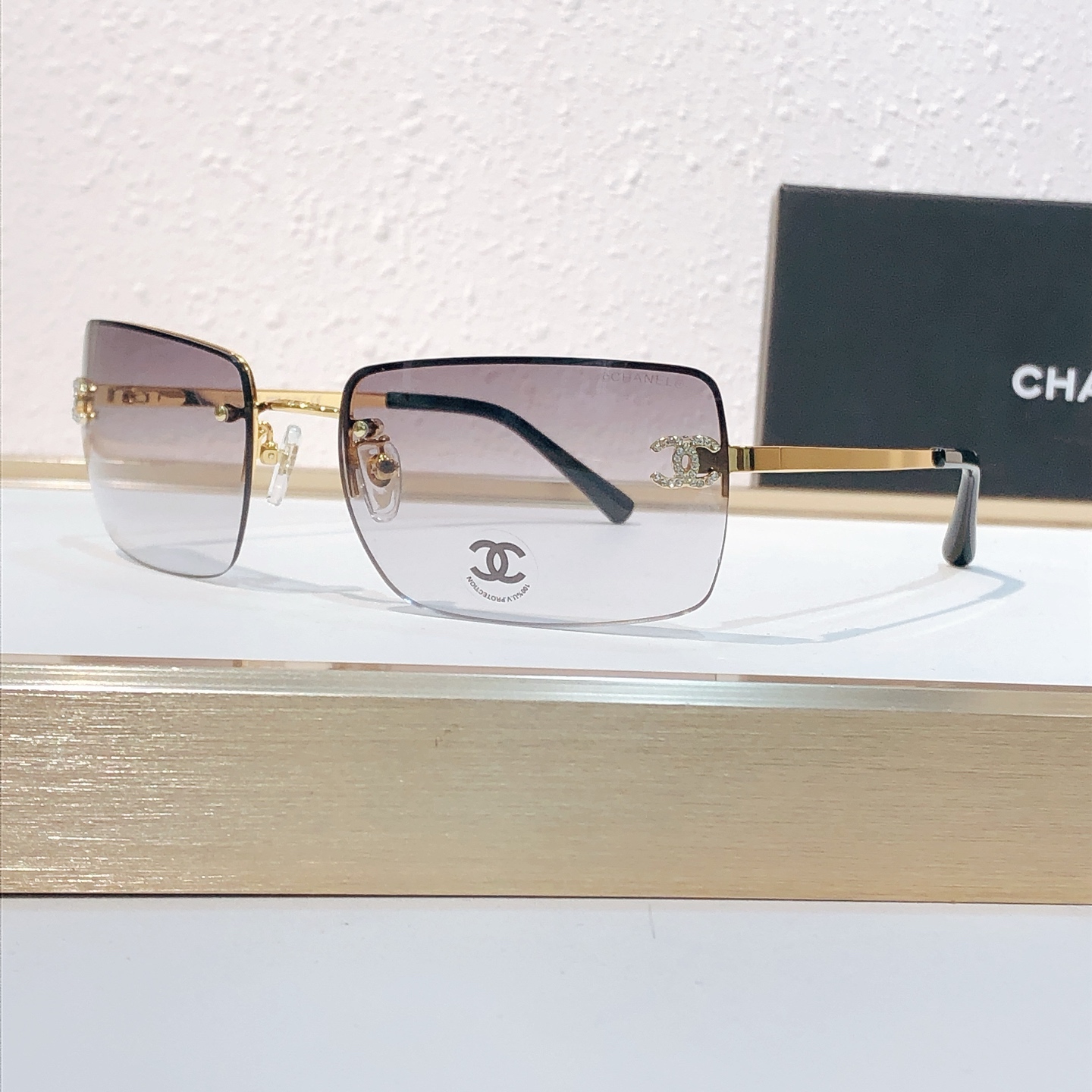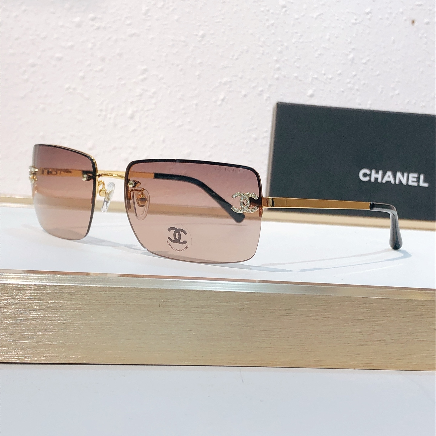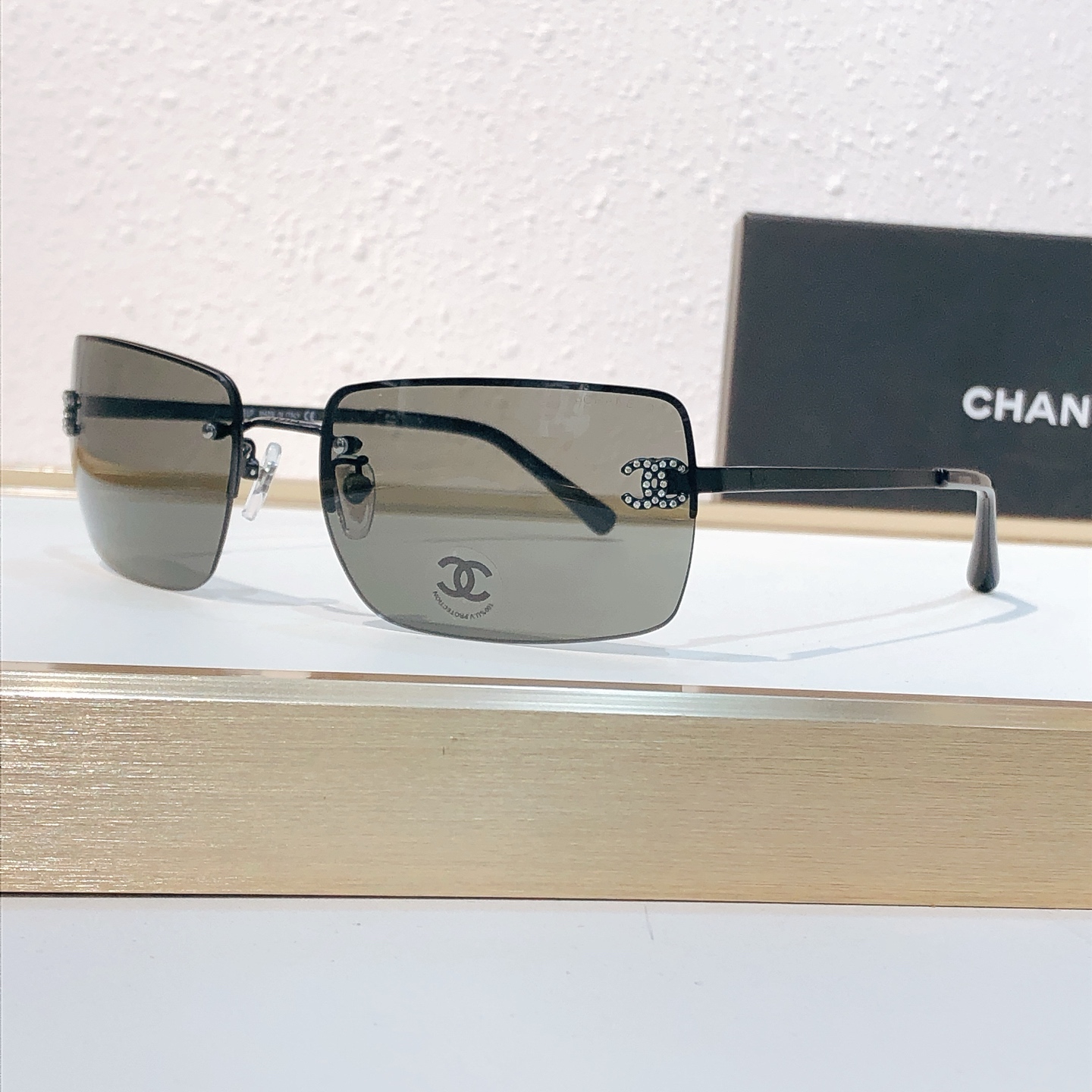 这款太阳眼镜是AAAAA 1:1 质量 (非常棒). 使用了和原版一模一样的材料. 商标部分也保持了和香奈儿/Chanel一样. 图片拍摄是实物太阳眼镜拍摄, 您所收到的实物保证和我们图片一模一样.