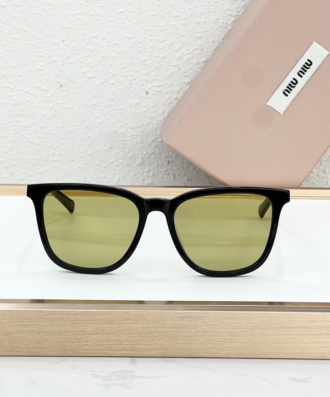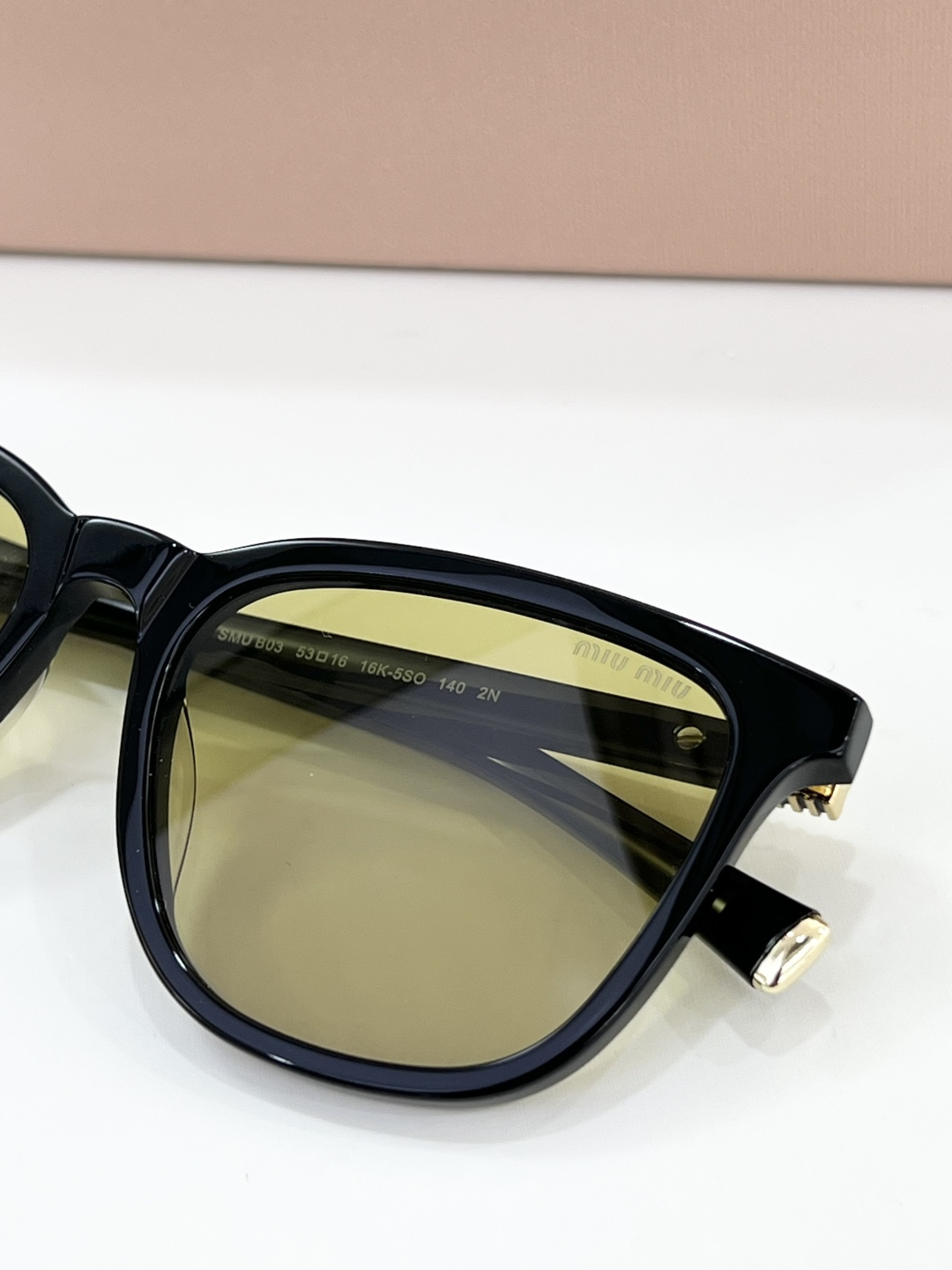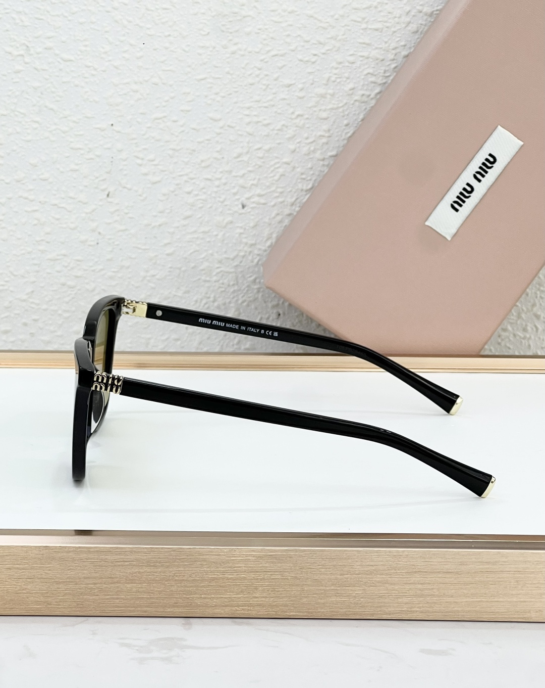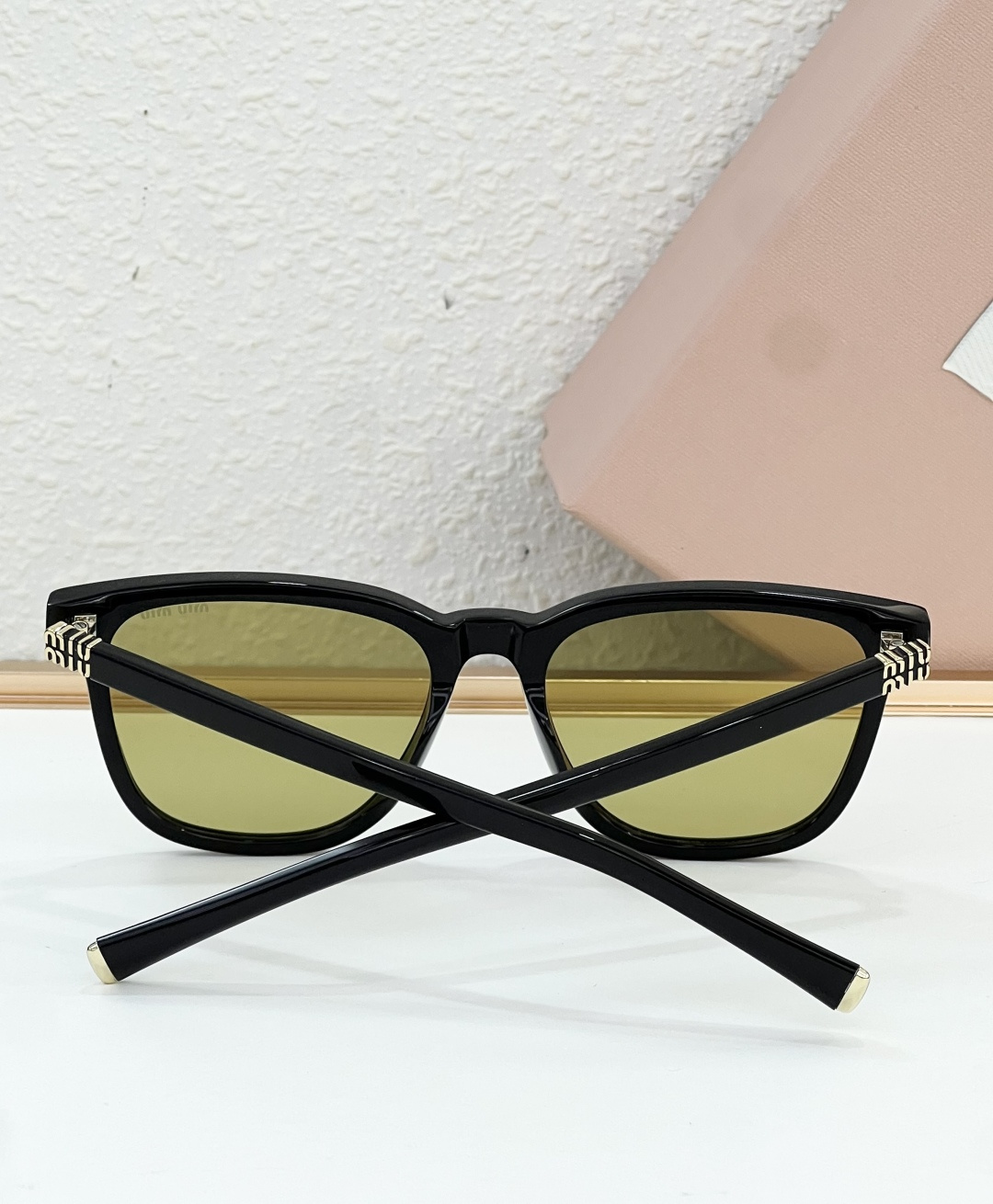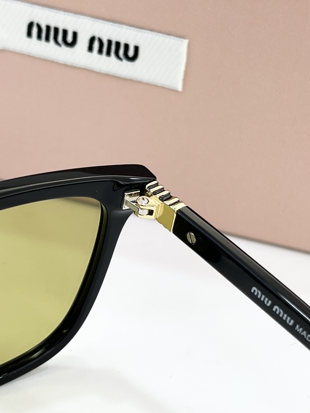 这款太阳眼镜是AAAAA 1:1 质量 (非常棒). 使用了和原版一模一样的材料. 商标部分也保持了和缪缪/Miu Miu一样. 图片拍摄是实物太阳眼镜拍摄, 您所收到的实物保证和我们图片一模一样.
