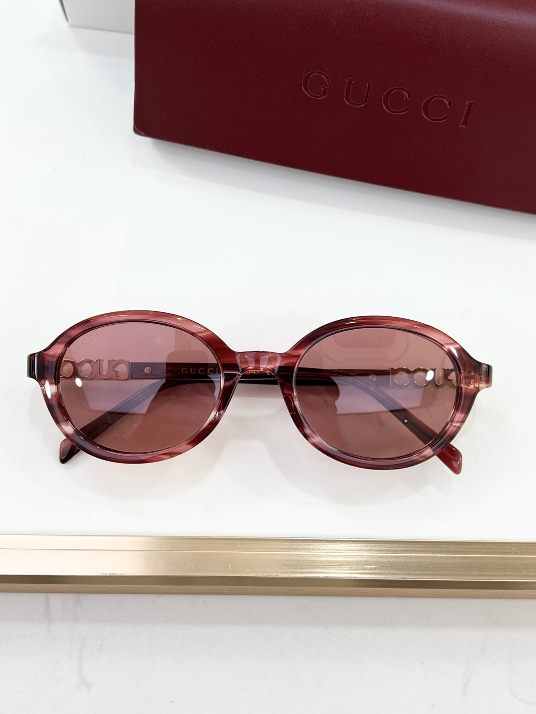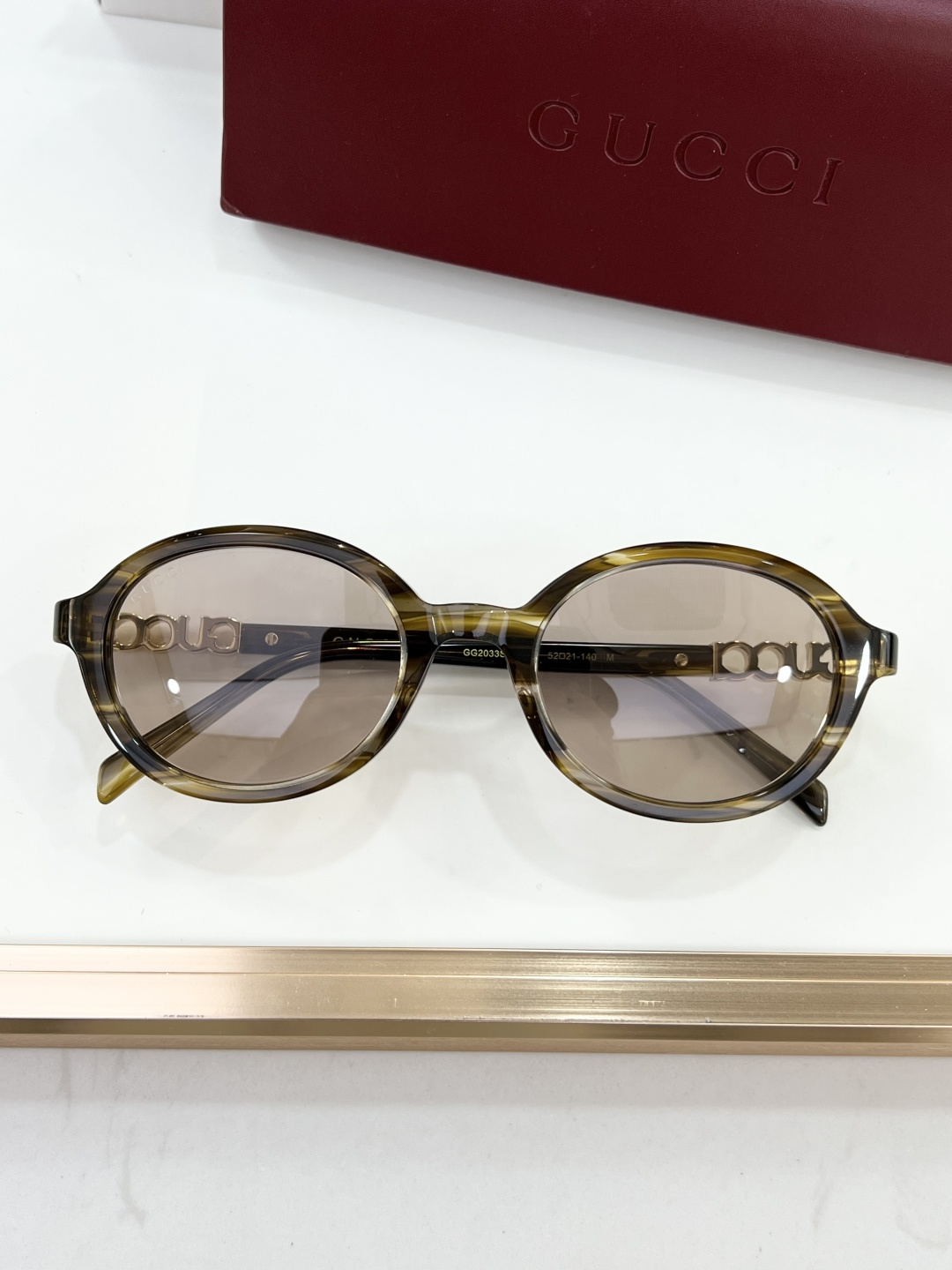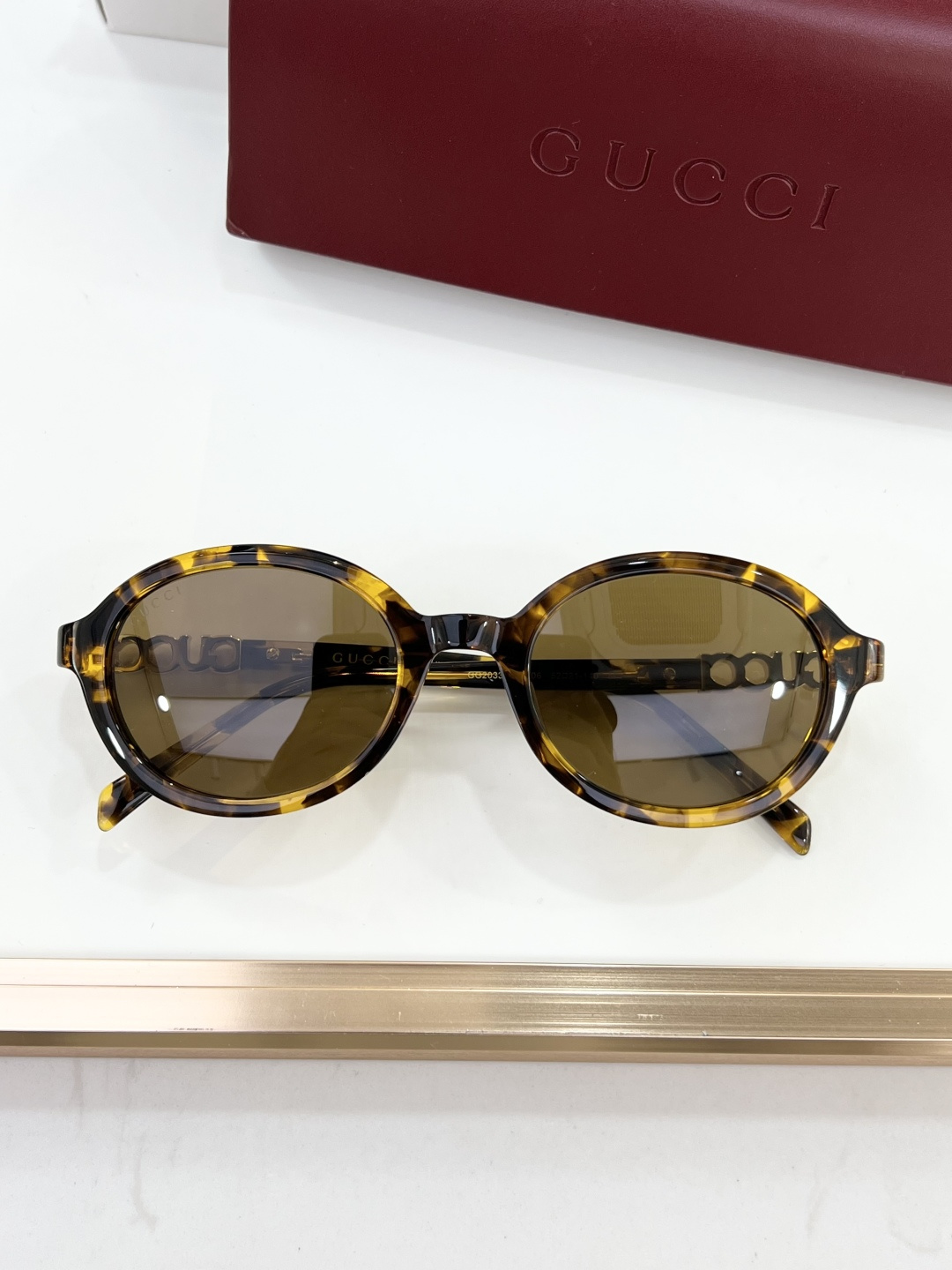 这款太阳眼镜是AAAAA 1:1 质量 (非常棒). 使用了和原版一模一样的材料. 商标部分也保持了和古奇/Gucci一样. 图片拍摄是实物太阳眼镜拍摄, 您所收到的实物保证和我们图片一模一样.
