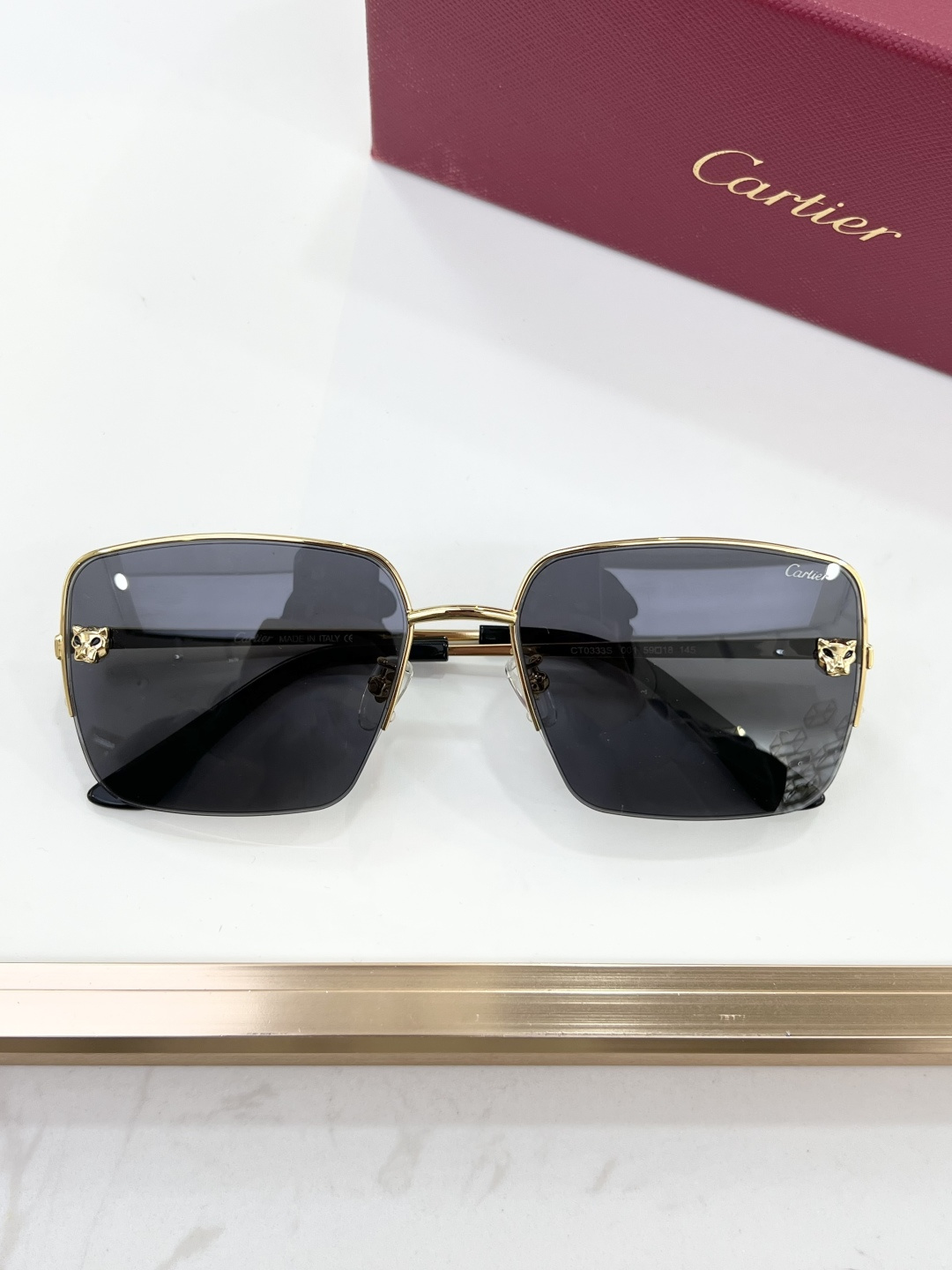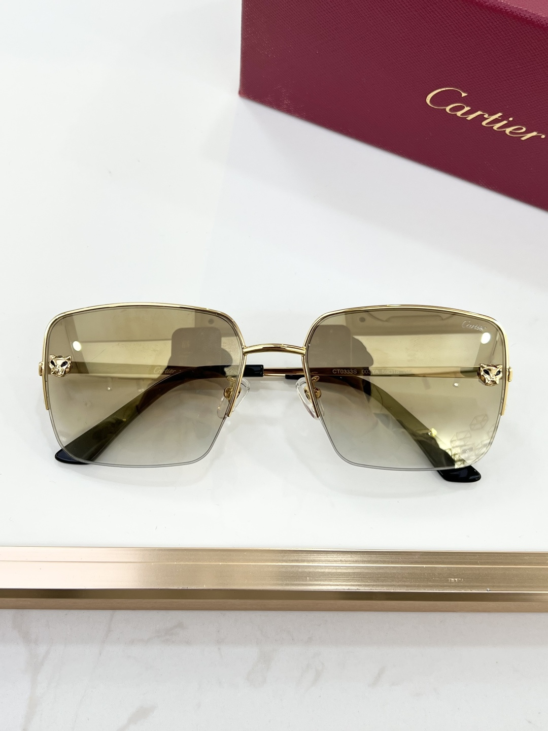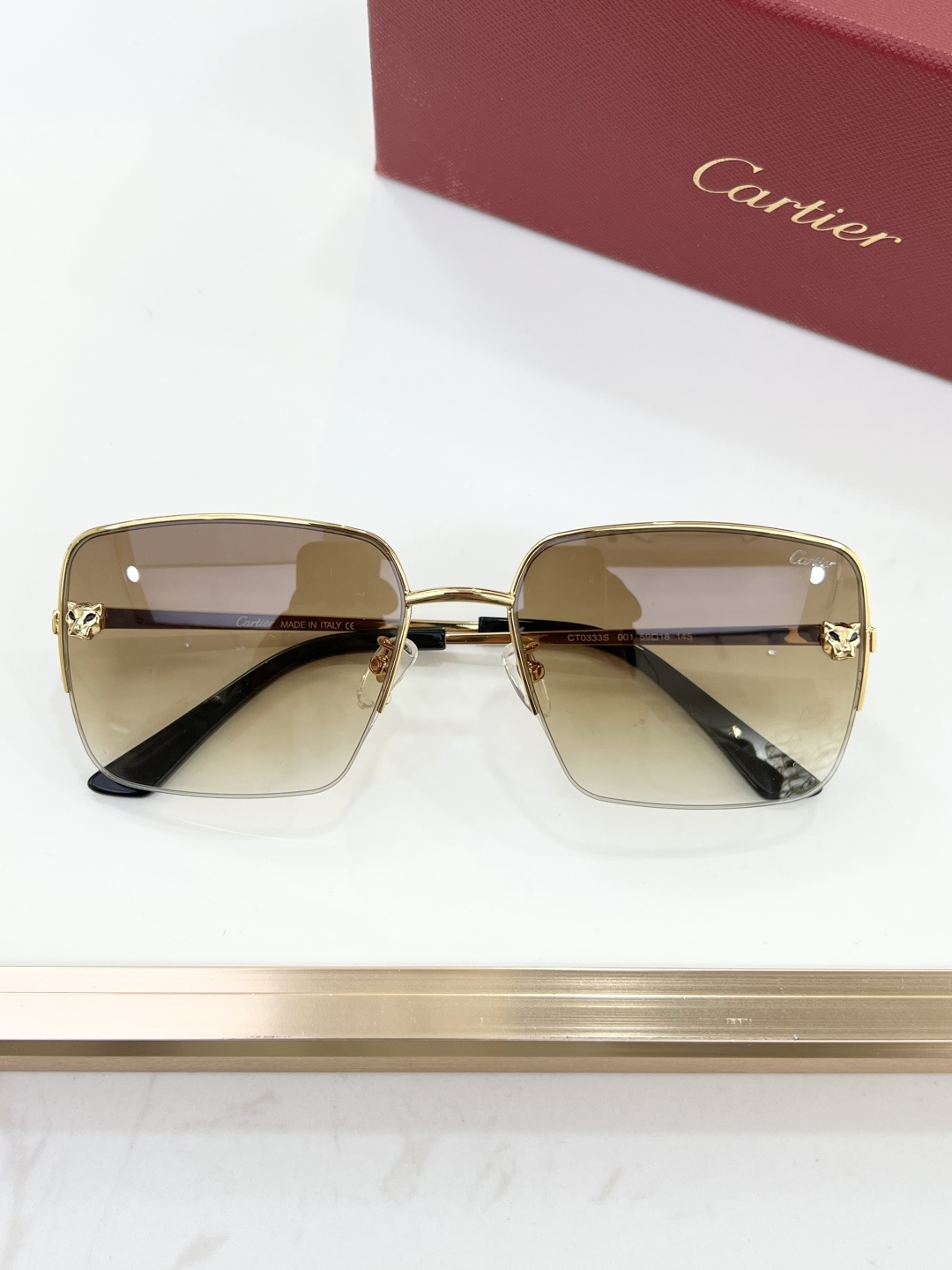 这款太阳眼镜是AAAAA 1:1 质量 (非常棒). 使用了和原版一模一样的材料. 商标部分也保持了和卡地亚/Cartier一样. 图片拍摄是实物太阳眼镜拍摄, 您所收到的实物保证和我们图片一模一样.