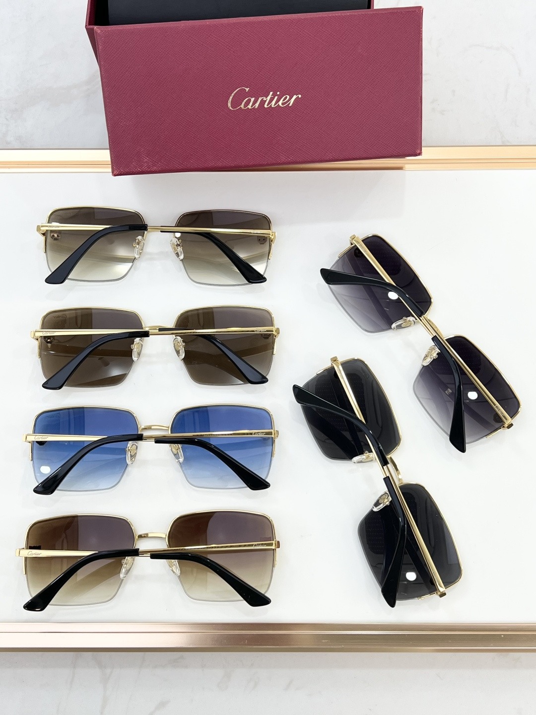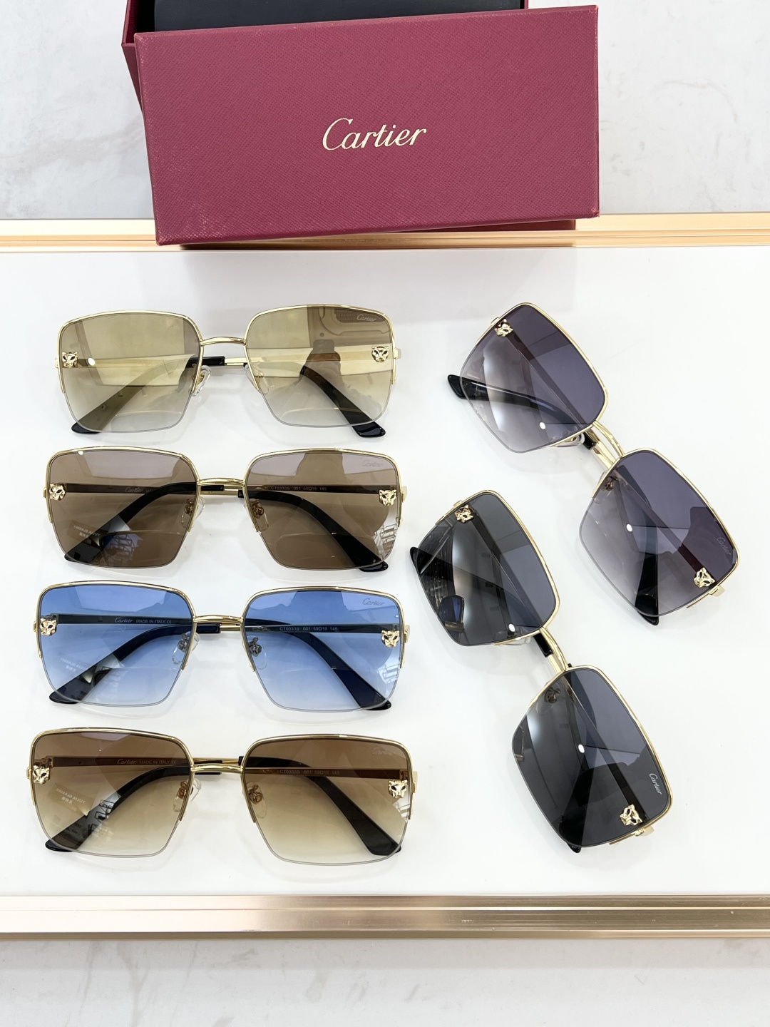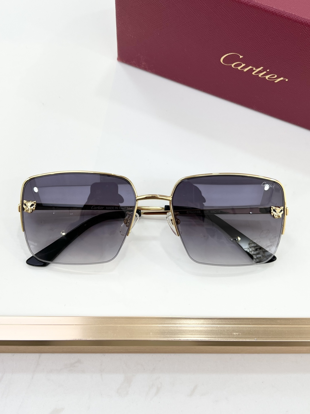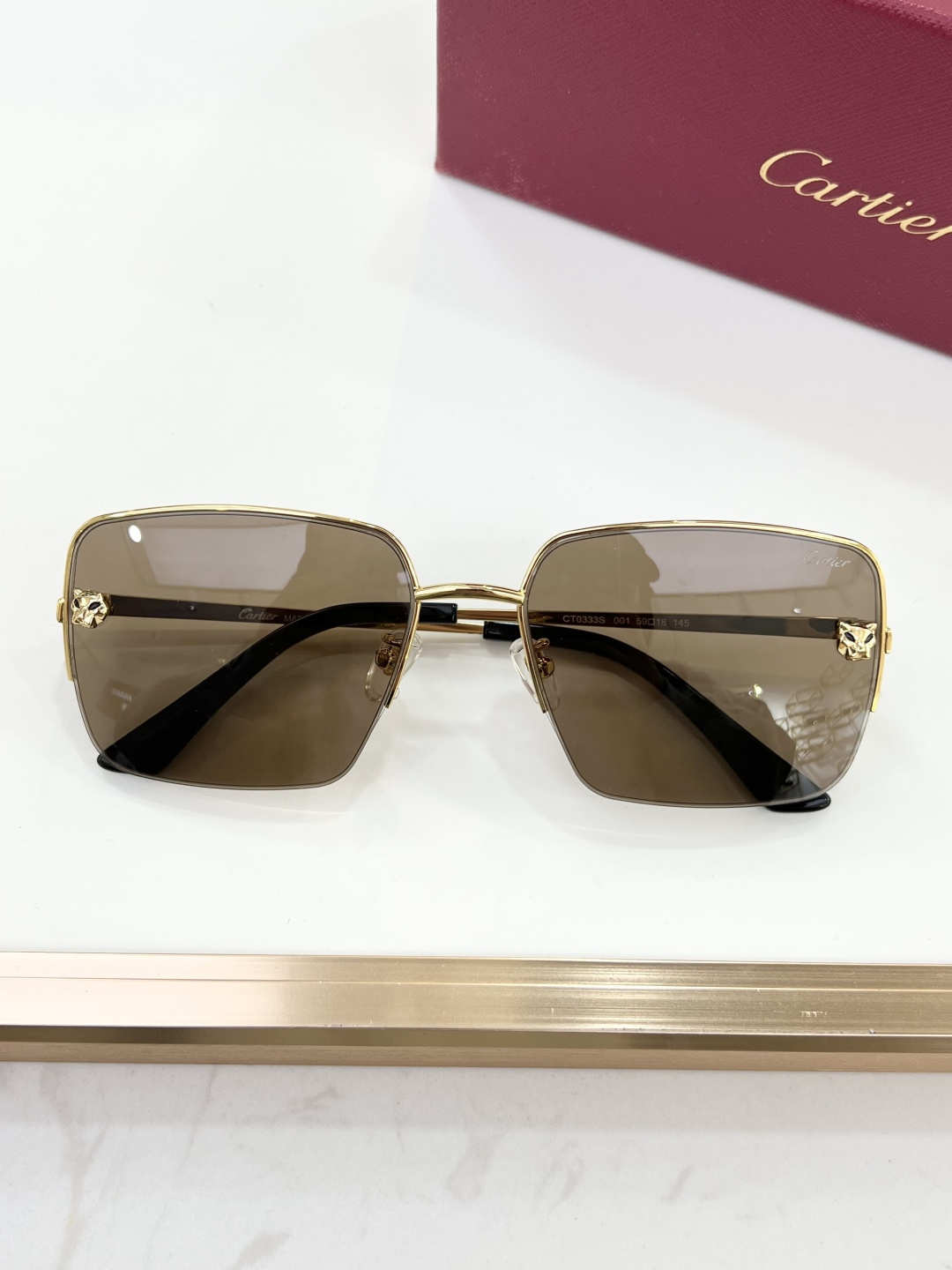 这款太阳眼镜是AAAAA 1:1 质量 (非常棒). 使用了和原版一模一样的材料. 商标部分也保持了和卡地亚/Cartier一样. 图片拍摄是实物太阳眼镜拍摄, 您所收到的实物保证和我们图片一模一样.