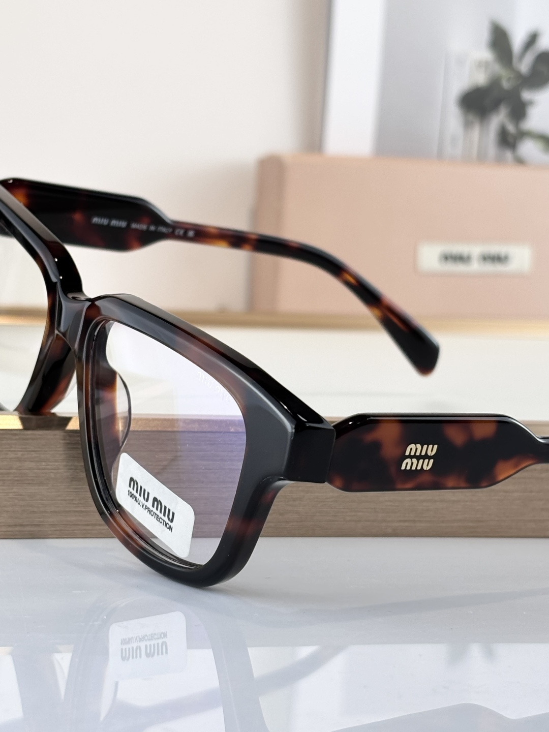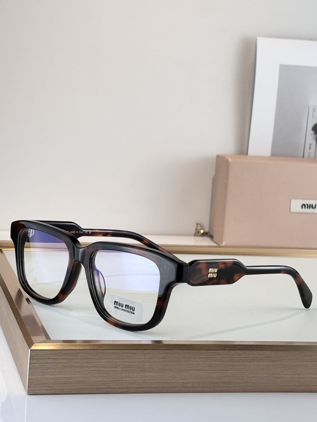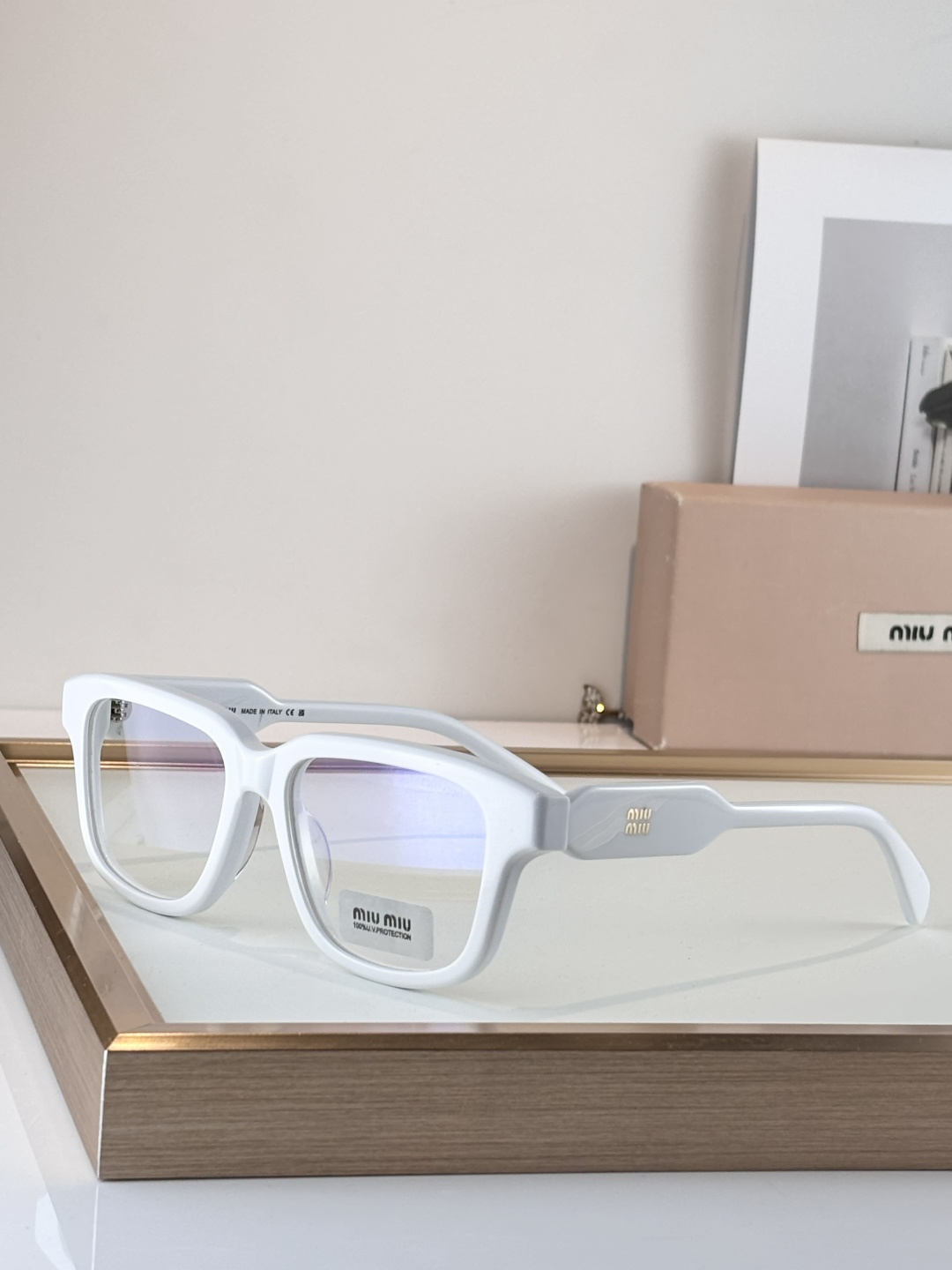 这款太阳眼镜是AAAAA 1:1 质量 (非常棒). 使用了和原版一模一样的材料. 商标部分也保持了和缪缪/Miu Miu一样. 图片拍摄是实物太阳眼镜拍摄, 您所收到的实物保证和我们图片一模一样.