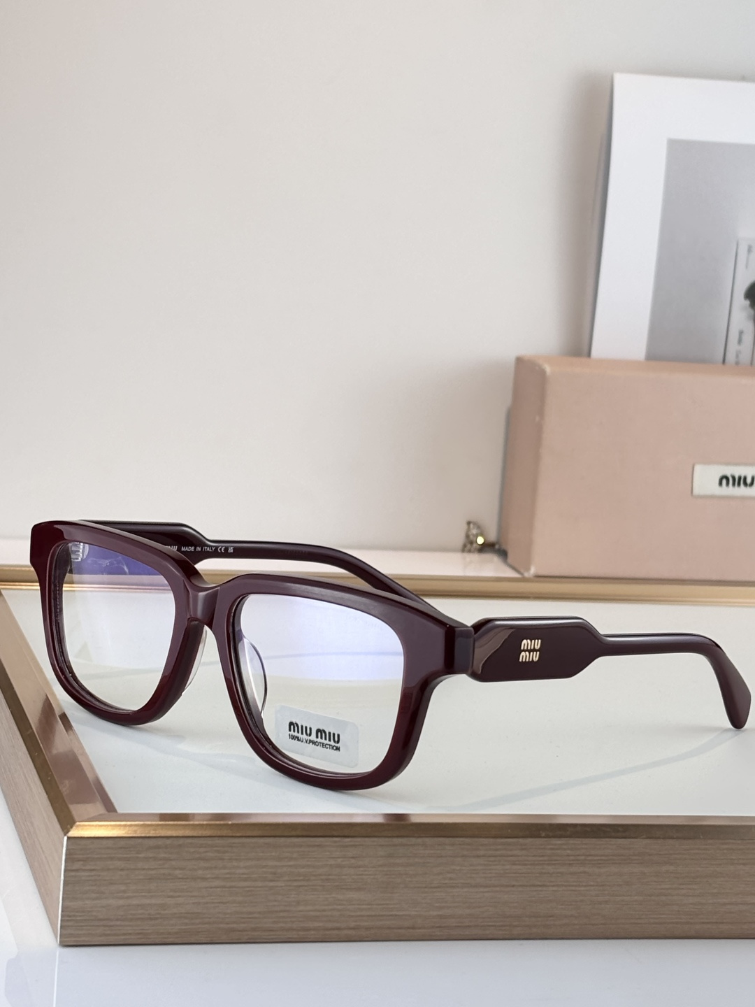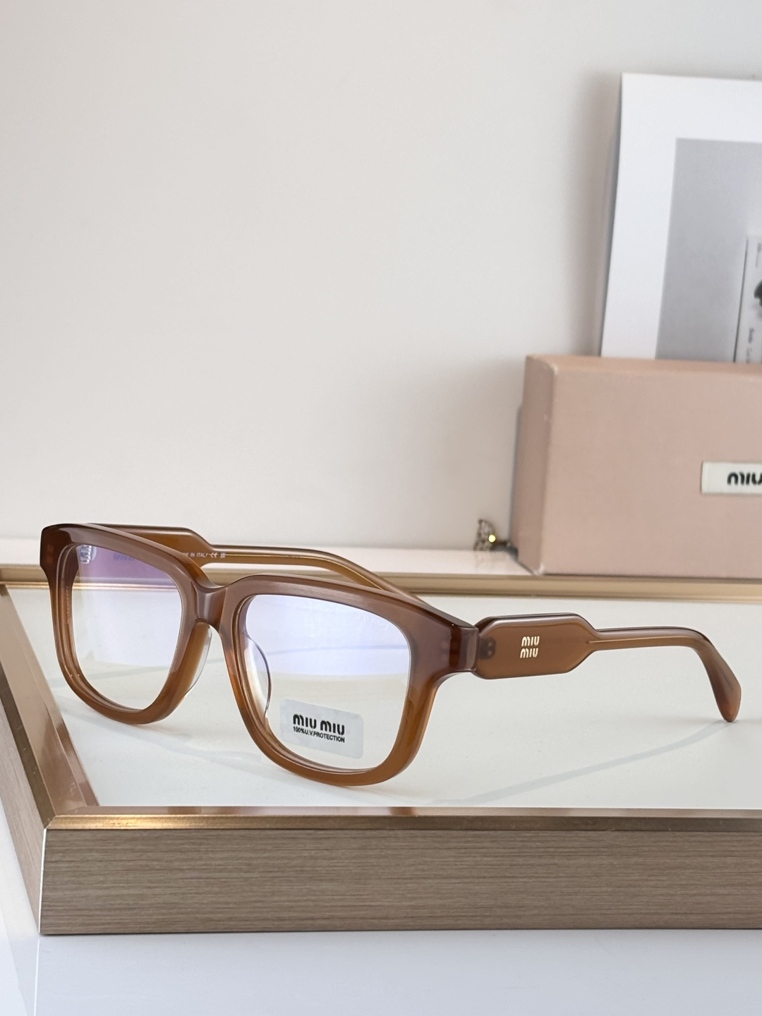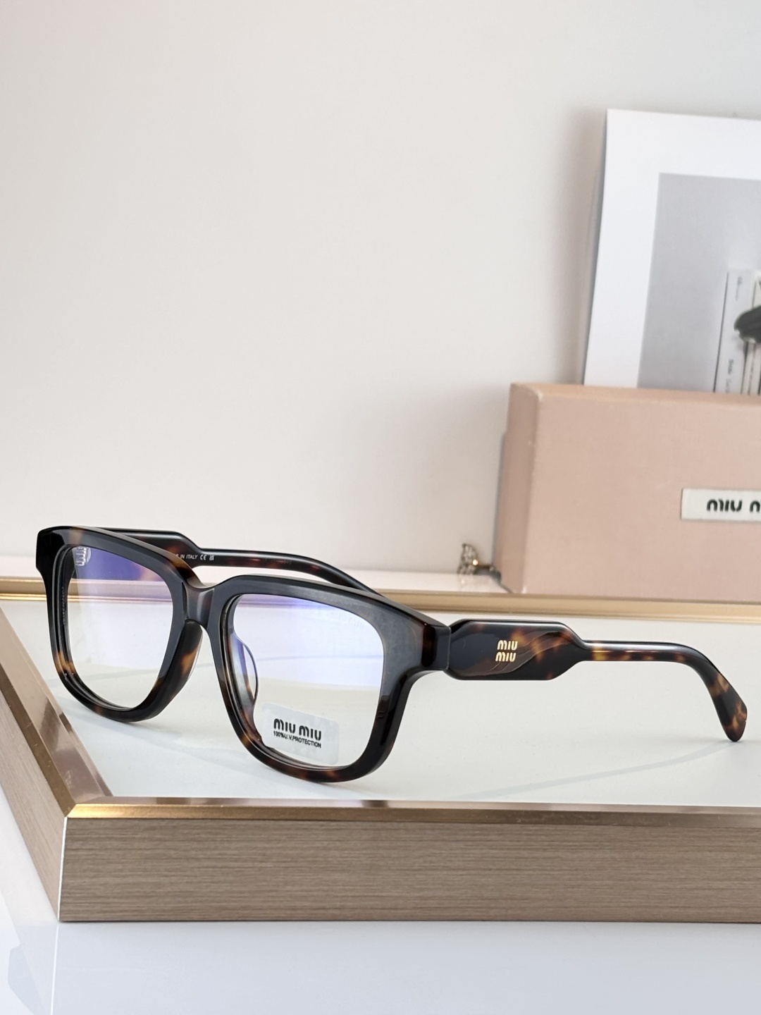这款太阳眼镜是AAAAA 1:1 质量 (非常棒). 使用了和原版一模一样的材料. 商标部分也保持了和缪缪/Miu Miu一样. 图片拍摄是实物太阳眼镜拍摄, 您所收到的实物保证和我们图片一模一样.
