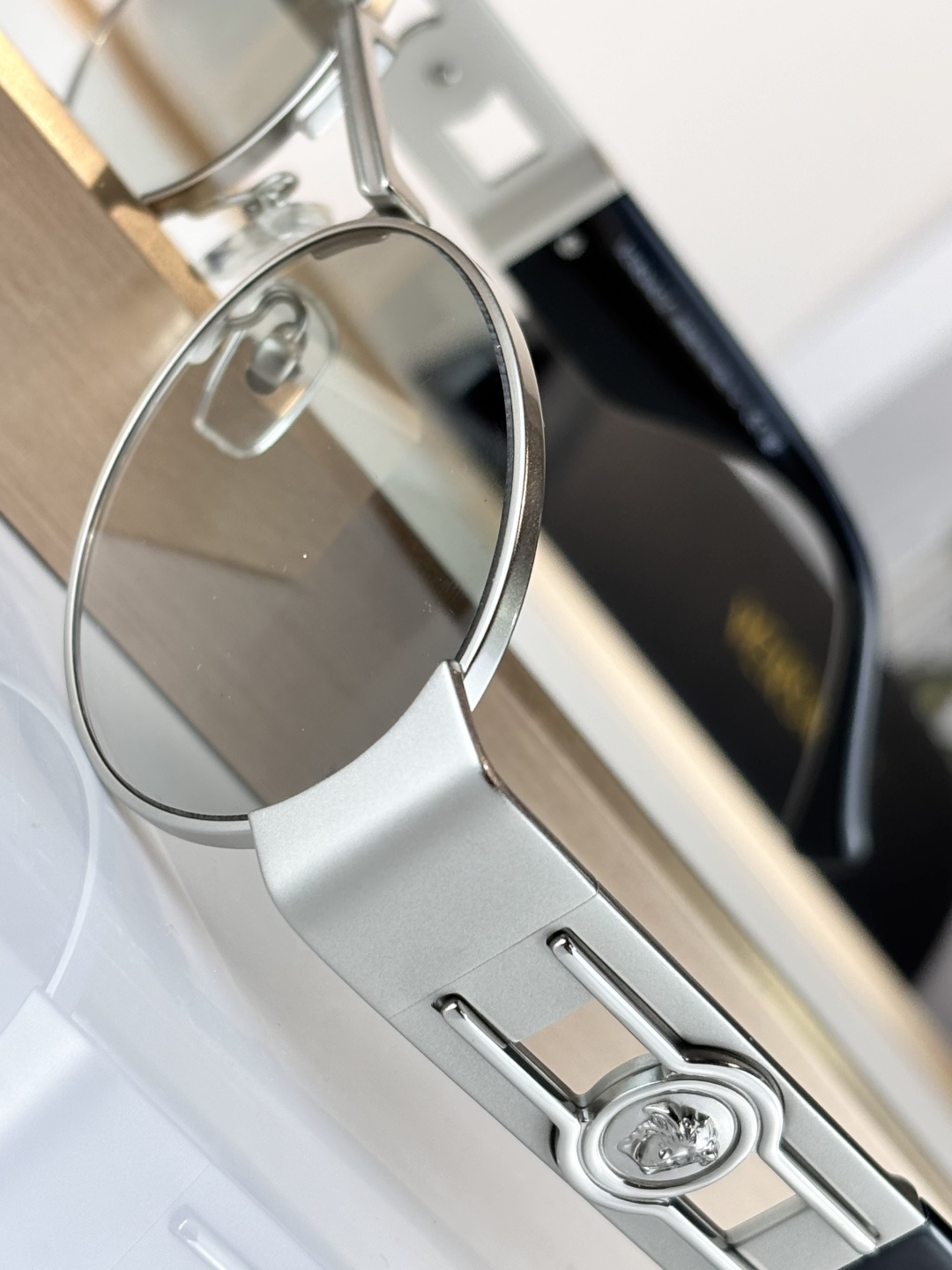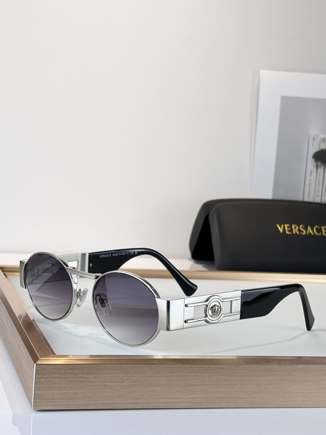 这款太阳眼镜是AAAAA 1:1 质量 (非常棒). 使用了和原版一模一样的材料. 商标部分也保持了和范思哲/Versace一样. 图片拍摄是实物太阳眼镜拍摄, 您所收到的实物保证和我们图片一模一样.