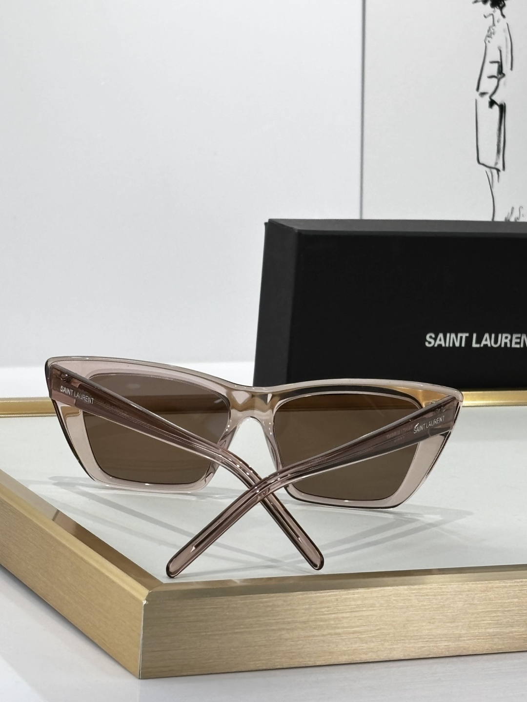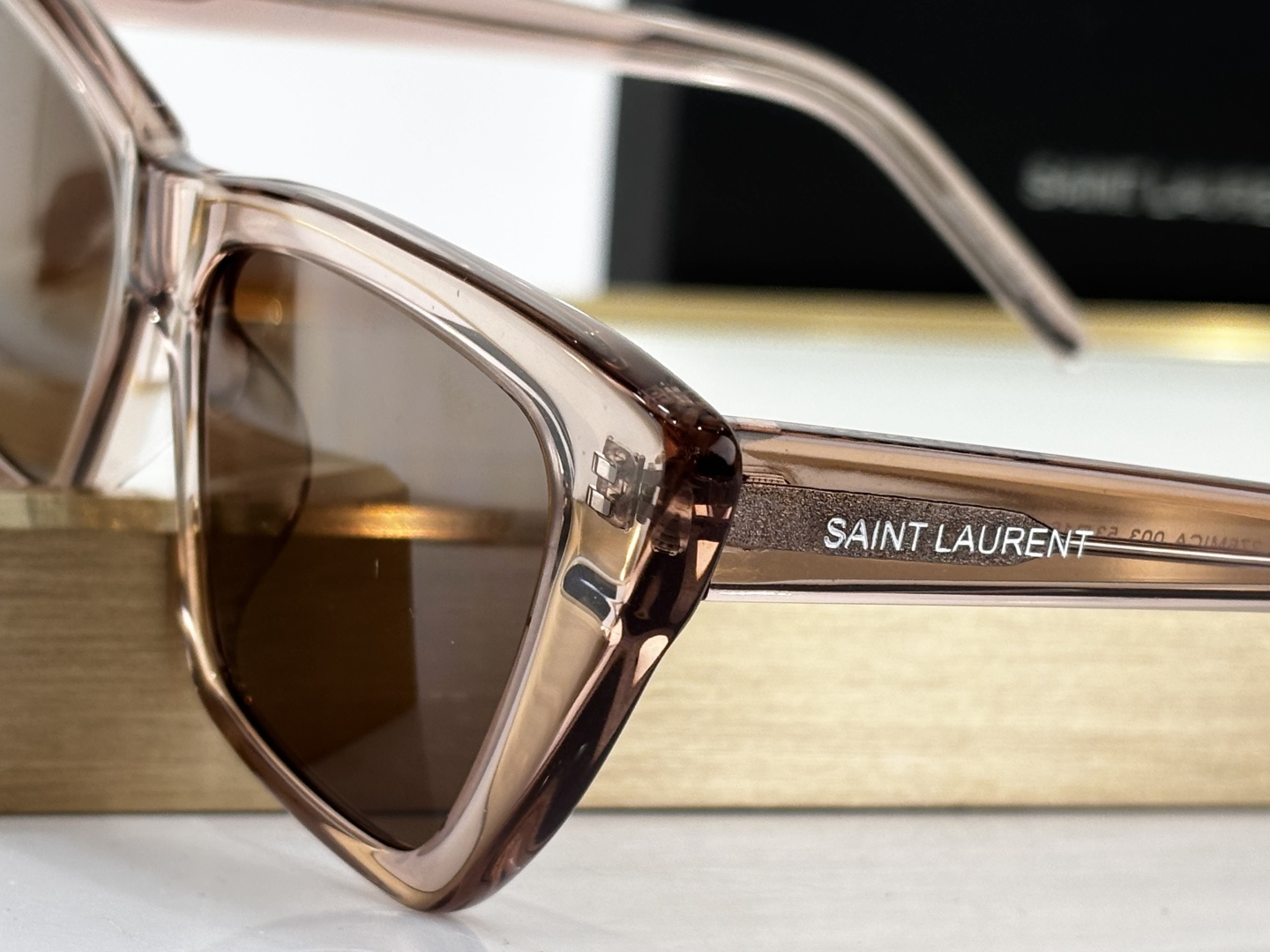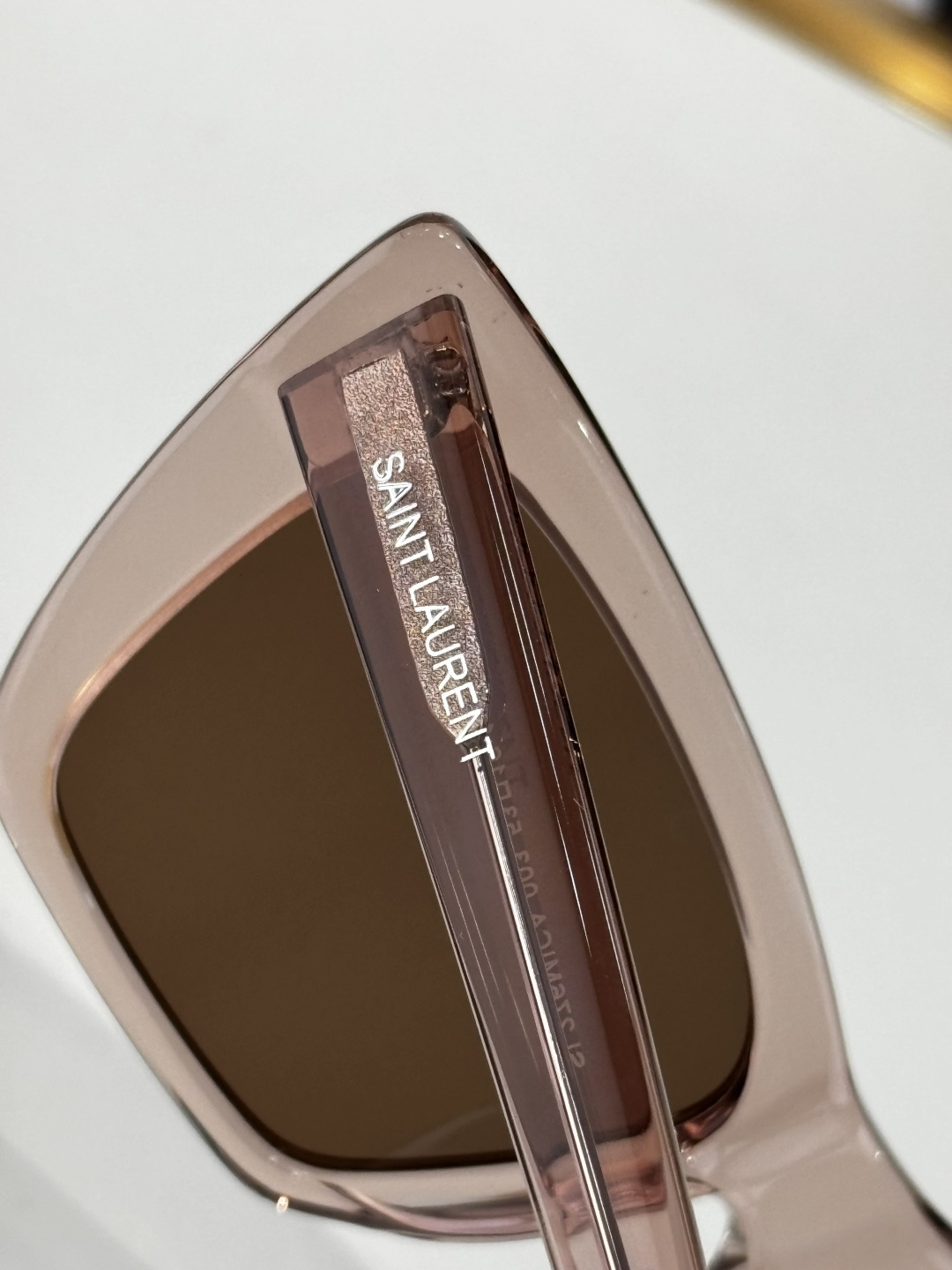 这款太阳眼镜是AAAAA 1:1 质量 (非常棒). 使用了和原版一模一样的材料. 商标部分也保持了和圣罗兰/Saint Laurent一样. 图片拍摄是实物太阳眼镜拍摄, 您所收到的实物保证和我们图片一模一样.