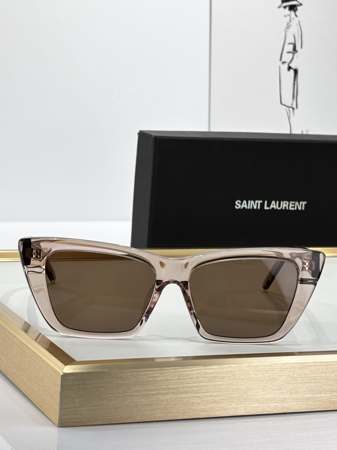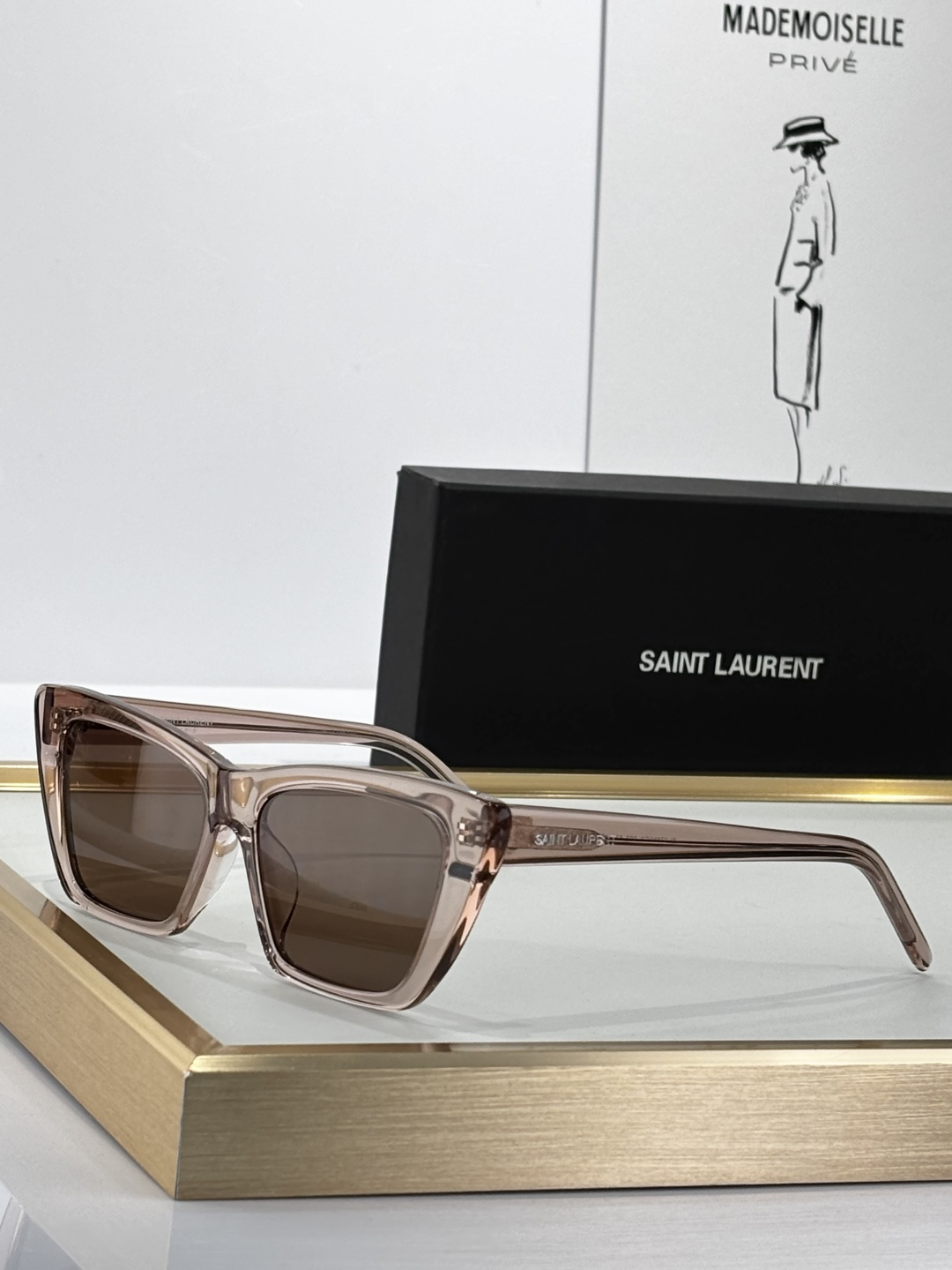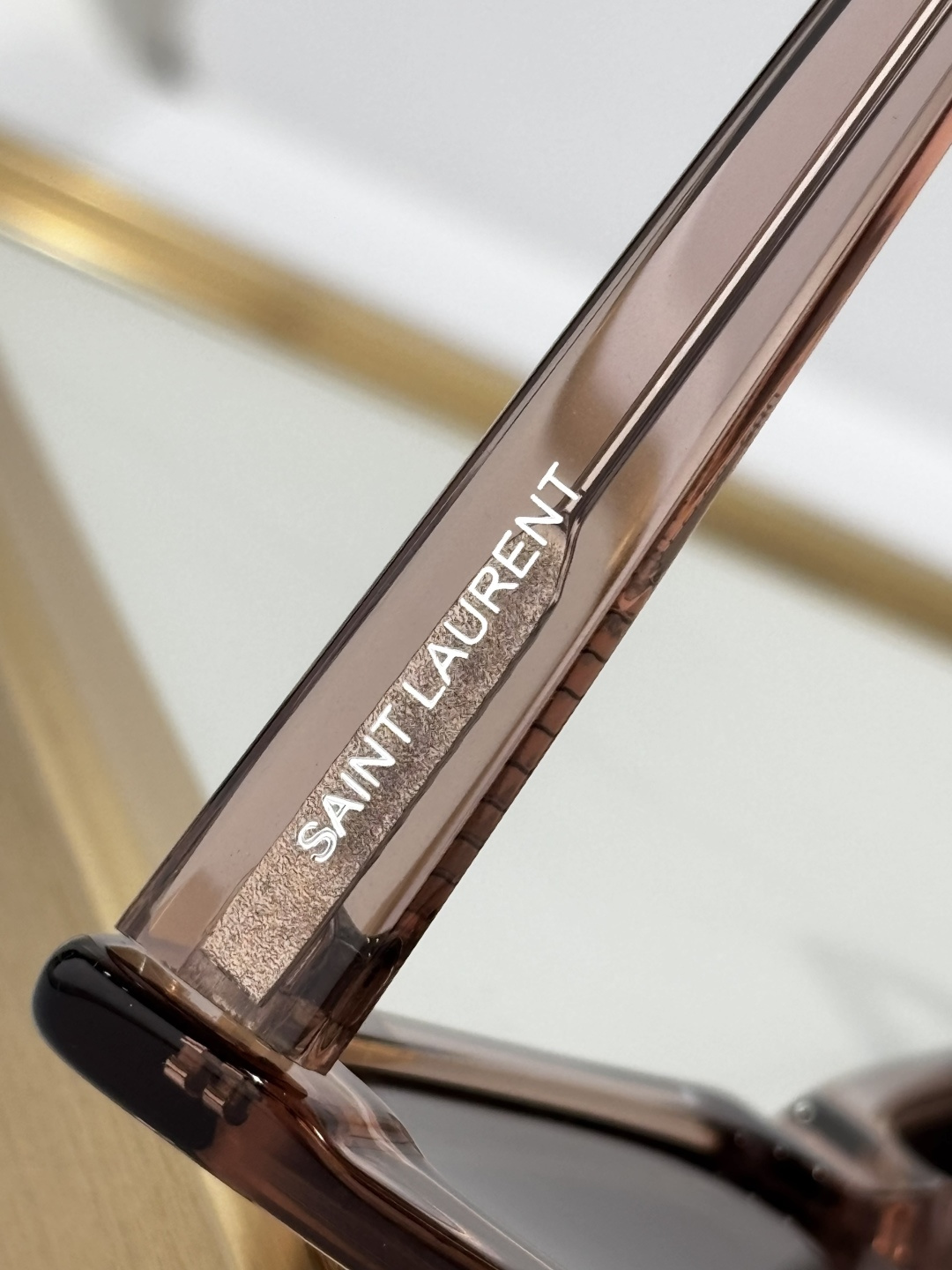 这款太阳眼镜是AAAAA 1:1 质量 (非常棒). 使用了和原版一模一样的材料. 商标部分也保持了和圣罗兰/Saint Laurent一样. 图片拍摄是实物太阳眼镜拍摄, 您所收到的实物保证和我们图片一模一样.