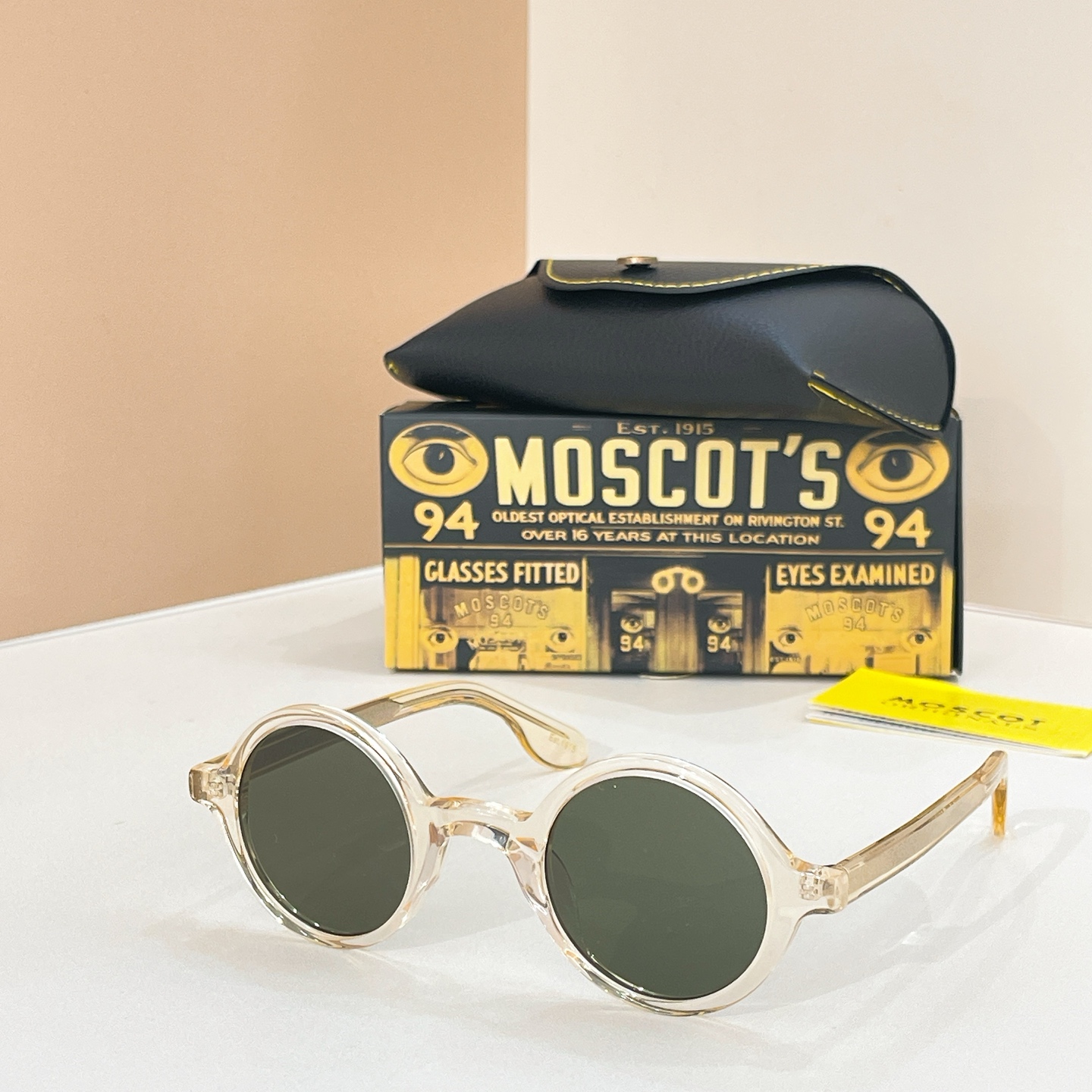 这款太阳眼镜是AAAAA 1:1 质量 (非常棒). 使用了和原版一模一样的材料. 商标部分也保持了和MOSCOT一样. 图片拍摄是实物太阳眼镜拍摄, 您所收到的实物保证和我们图片一模一样.