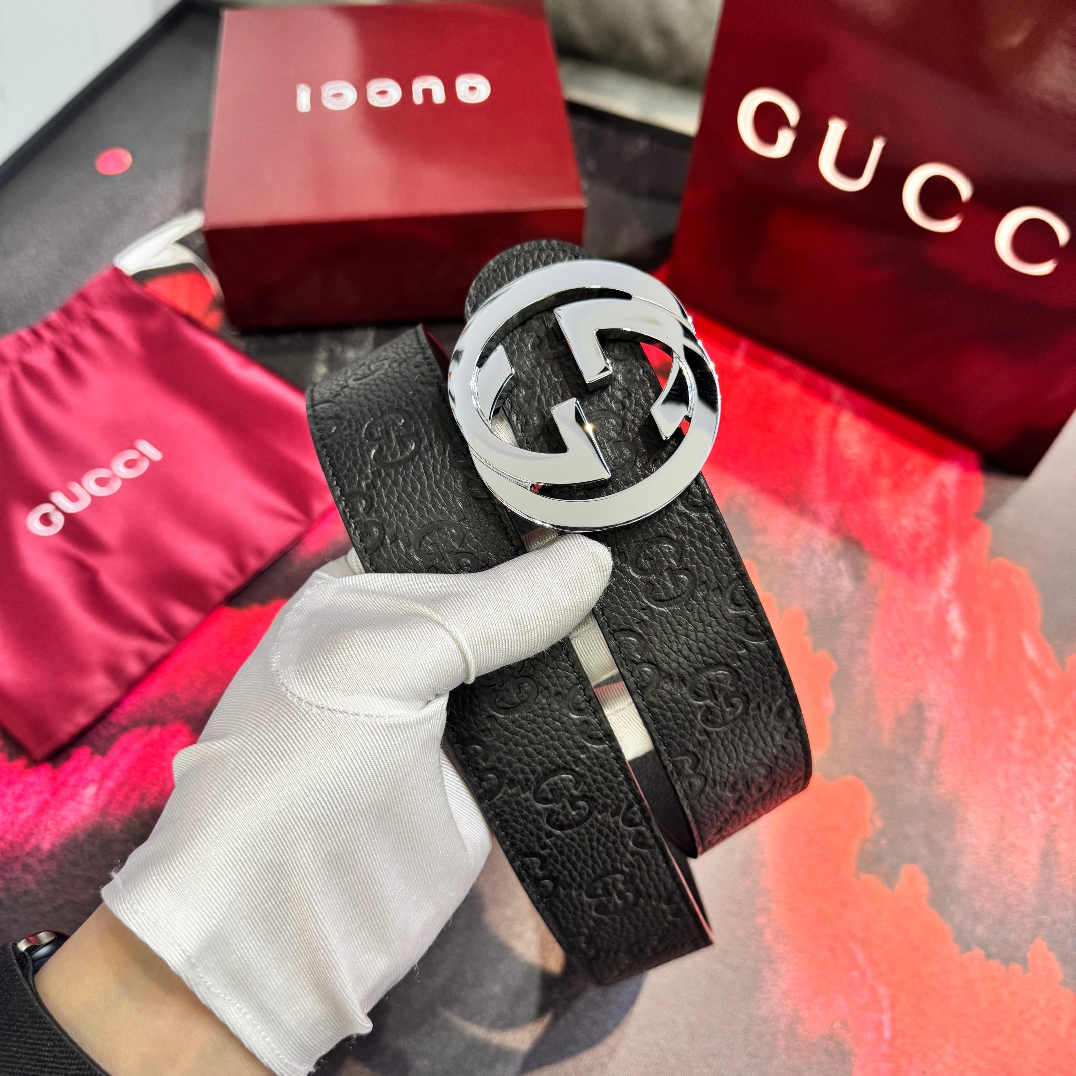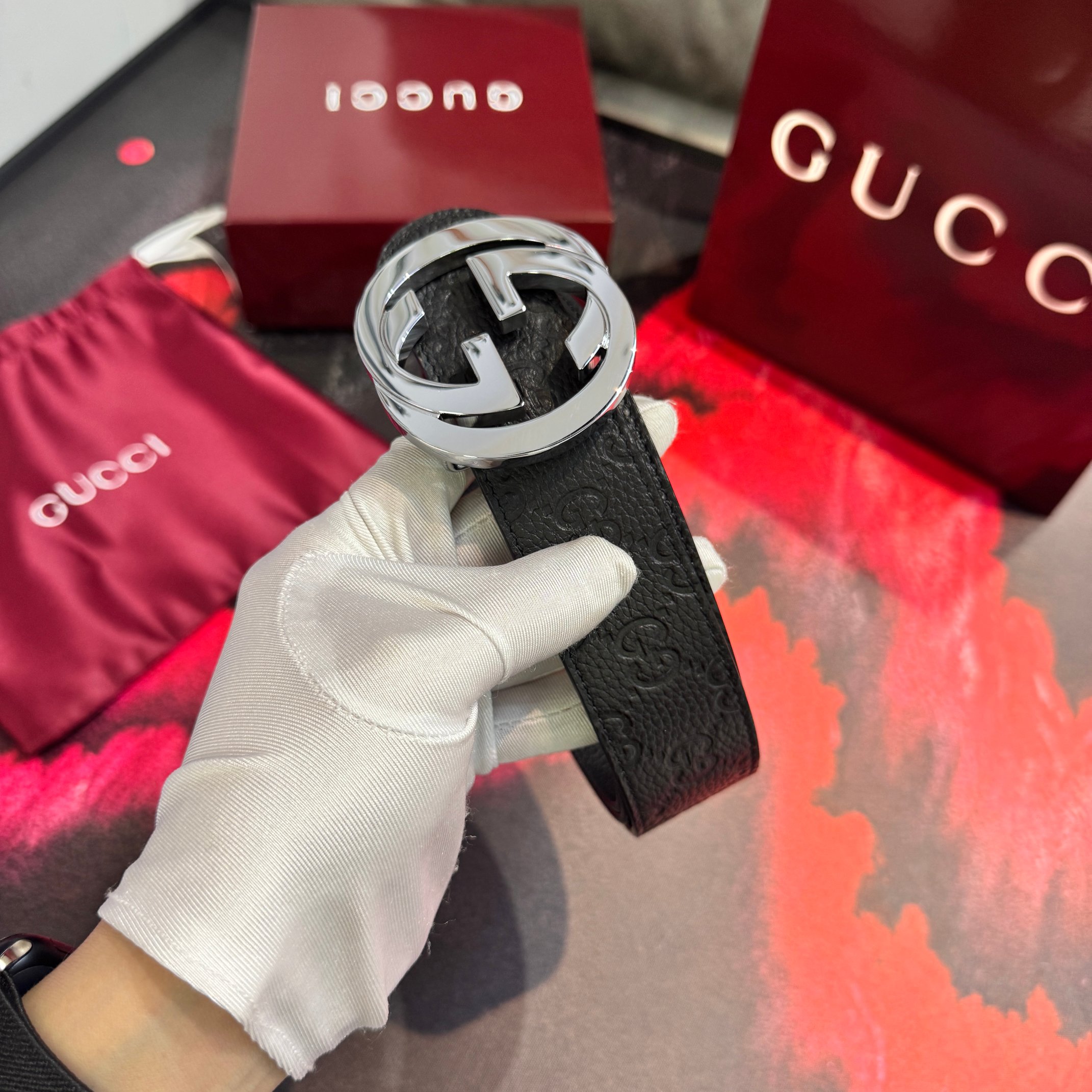 这款皮带是AAAAA 1:1 质量 (非常棒). 使用了和原版一模一样的材料. 商标部分也保持了和古奇/Gucci一样. 图片拍摄是实物皮带拍摄, 您所收到的实物保证和我们图片一模一样.