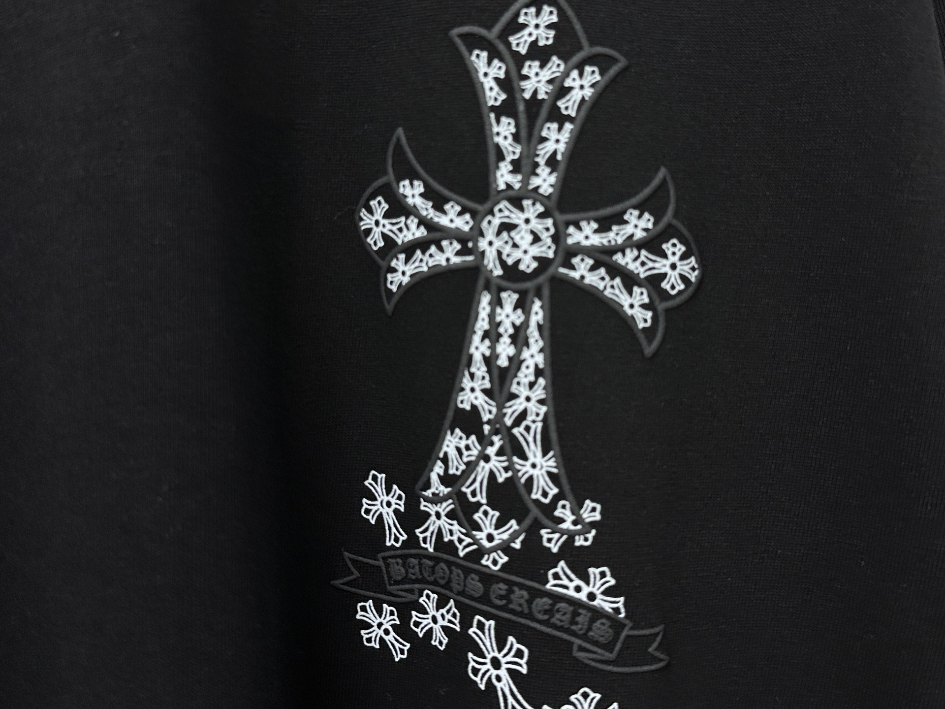 这款衣服是AAAAA 1:1 质量 (非常棒). 使用了和原版一模一样的材料. 商标部分也保持了和克罗心/Chrome Hearts一样. 图片拍摄是实物衣服拍摄, 您所收到的实物保证和我们图片一模一样.