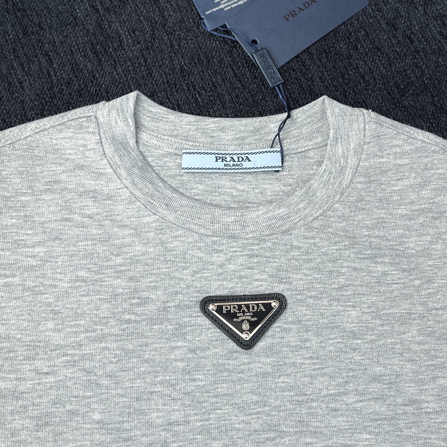 这款衣服是AAAAA 1:1 质量 (非常棒). 使用了和原版一模一样的材料. 商标部分也保持了和普拉达/Prada一样. 图片拍摄是实物衣服拍摄, 您所收到的实物保证和我们图片一模一样.