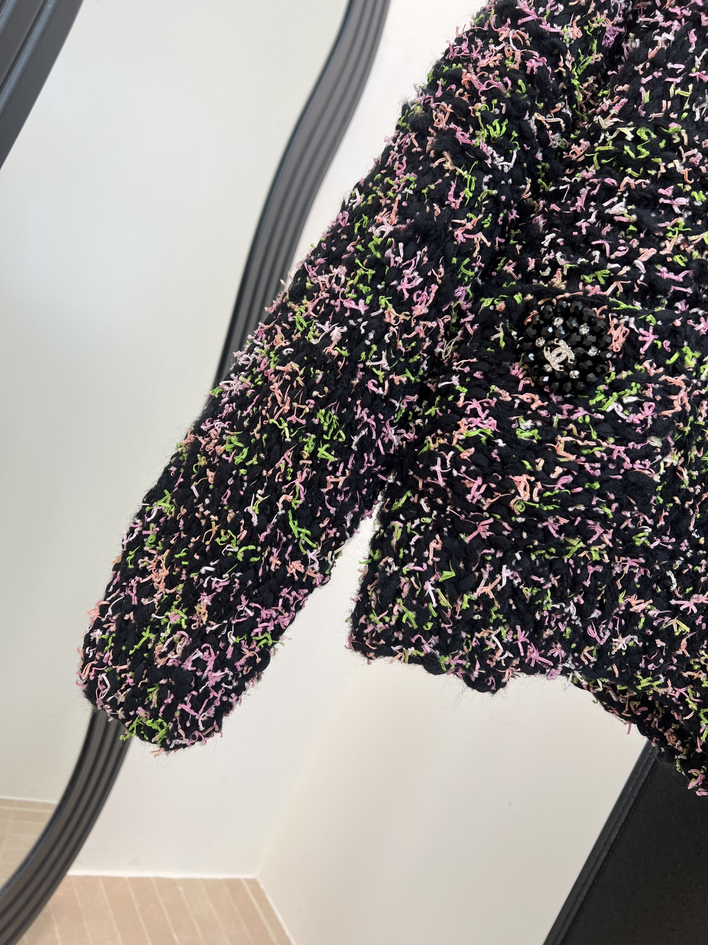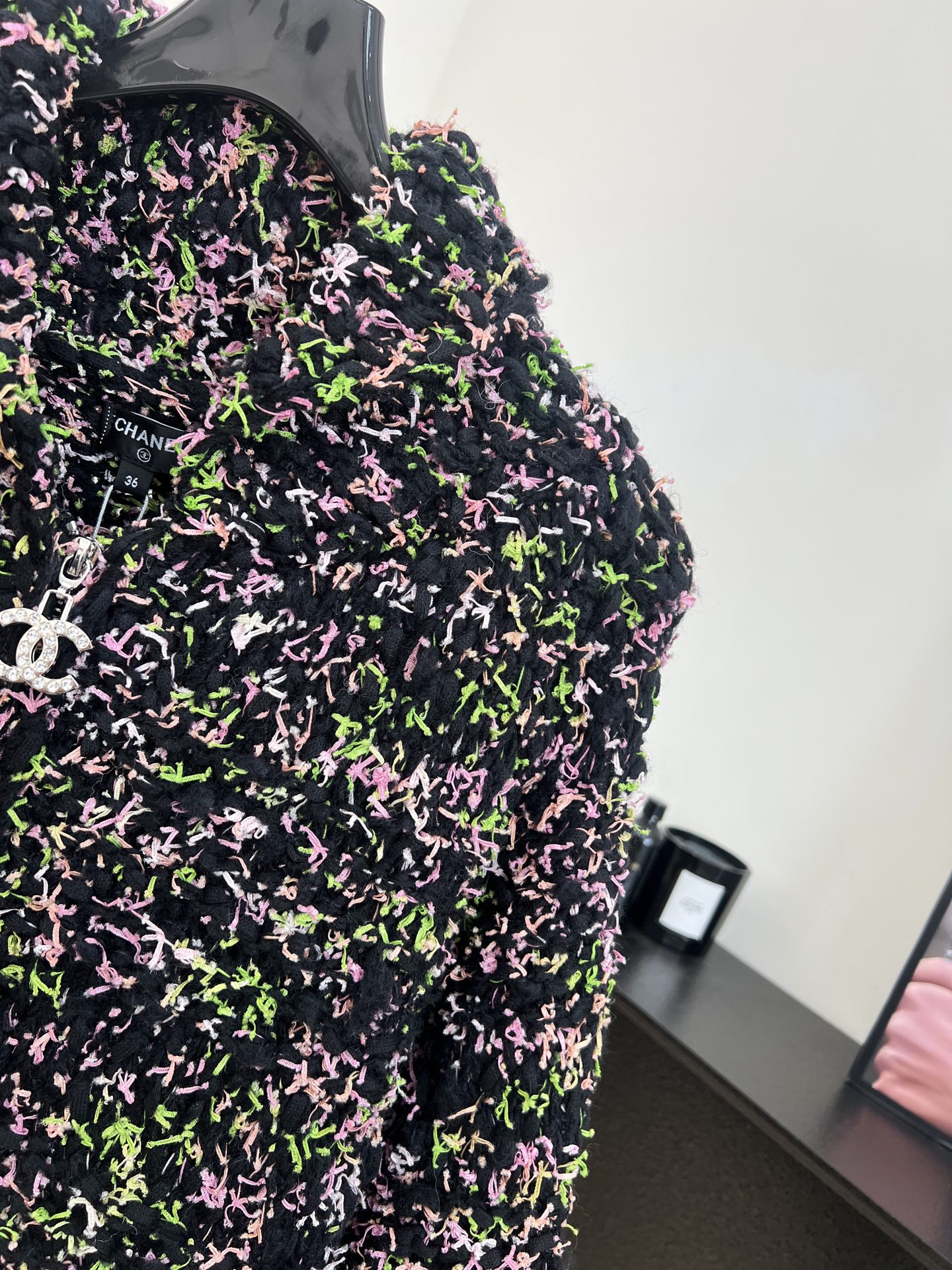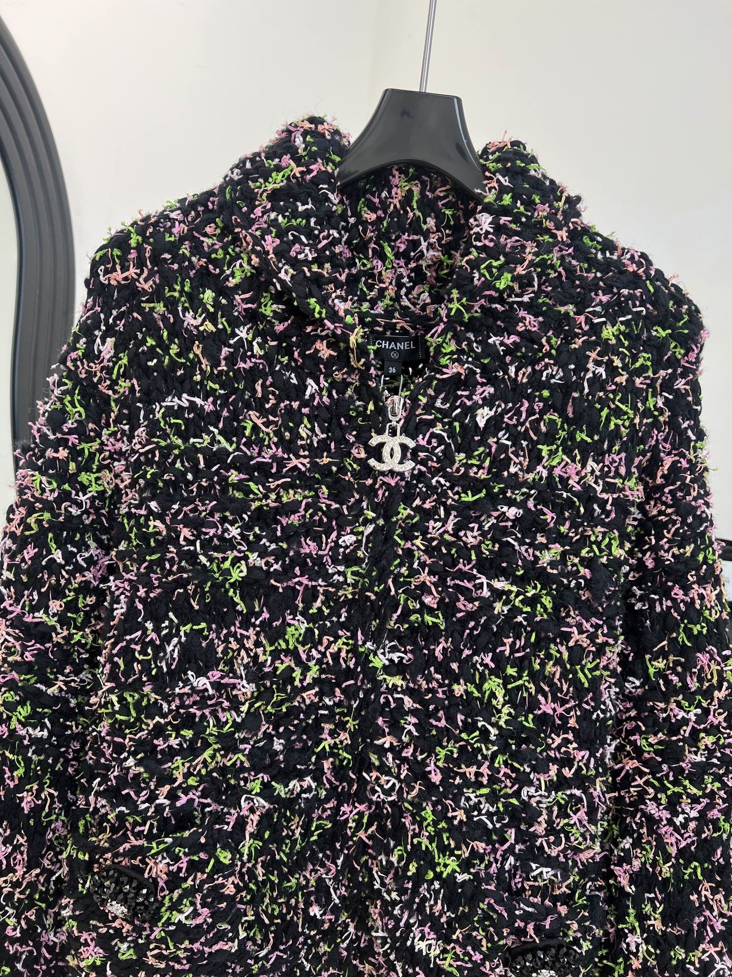 这款衣服是AAAAA 1:1 质量 (非常棒). 使用了和原版一模一样的材料. 商标部分也保持了和香奈儿/Chanel一样. 图片拍摄是实物衣服拍摄, 您所收到的实物保证和我们图片一模一样.