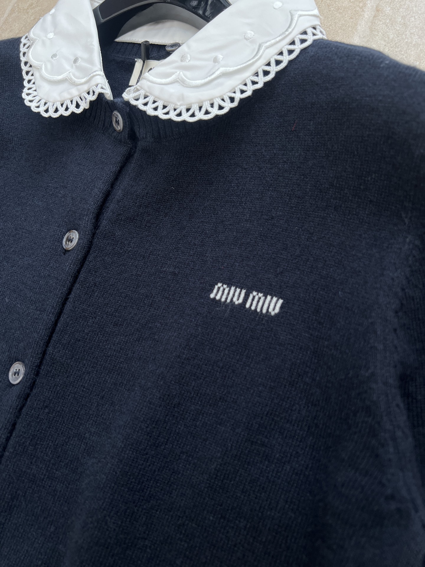 这款衣服是AAAAA 1:1 质量 (非常棒). 使用了和原版一模一样的材料. 商标部分也保持了和缪缪/Miu Miu一样. 图片拍摄是实物衣服拍摄, 您所收到的实物保证和我们图片一模一样.