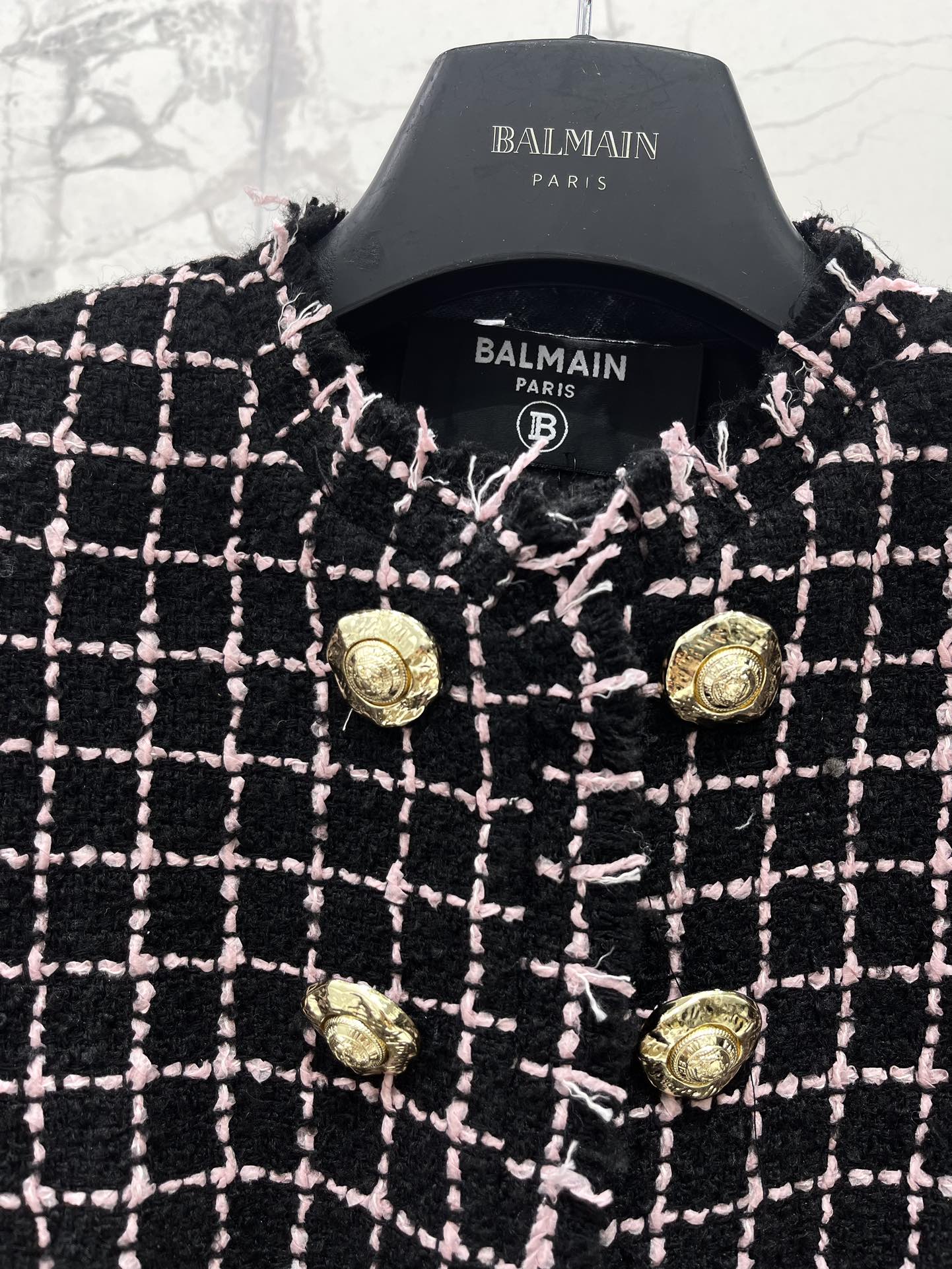 这款衣服是AAAAA 1:1 质量 (非常棒). 使用了和原版一模一样的材料. 商标部分也保持了和巴尔曼/Balmain一样. 图片拍摄是实物衣服拍摄, 您所收到的实物保证和我们图片一模一样.