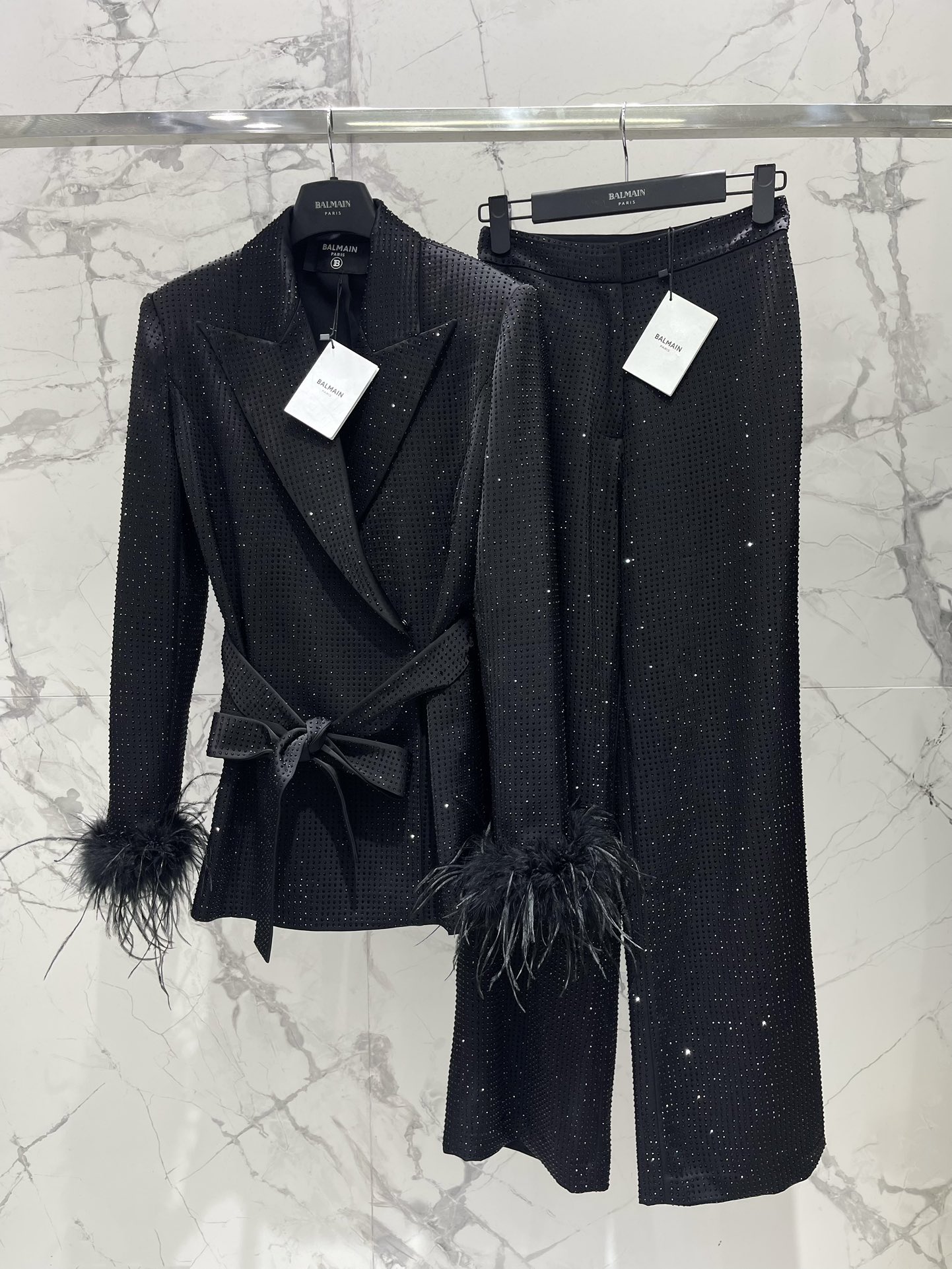 这款衣服是AAAAA 1:1 质量 (非常棒). 使用了和原版一模一样的材料. 商标部分也保持了和巴尔曼/Balmain一样. 图片拍摄是实物衣服拍摄, 您所收到的实物保证和我们图片一模一样.