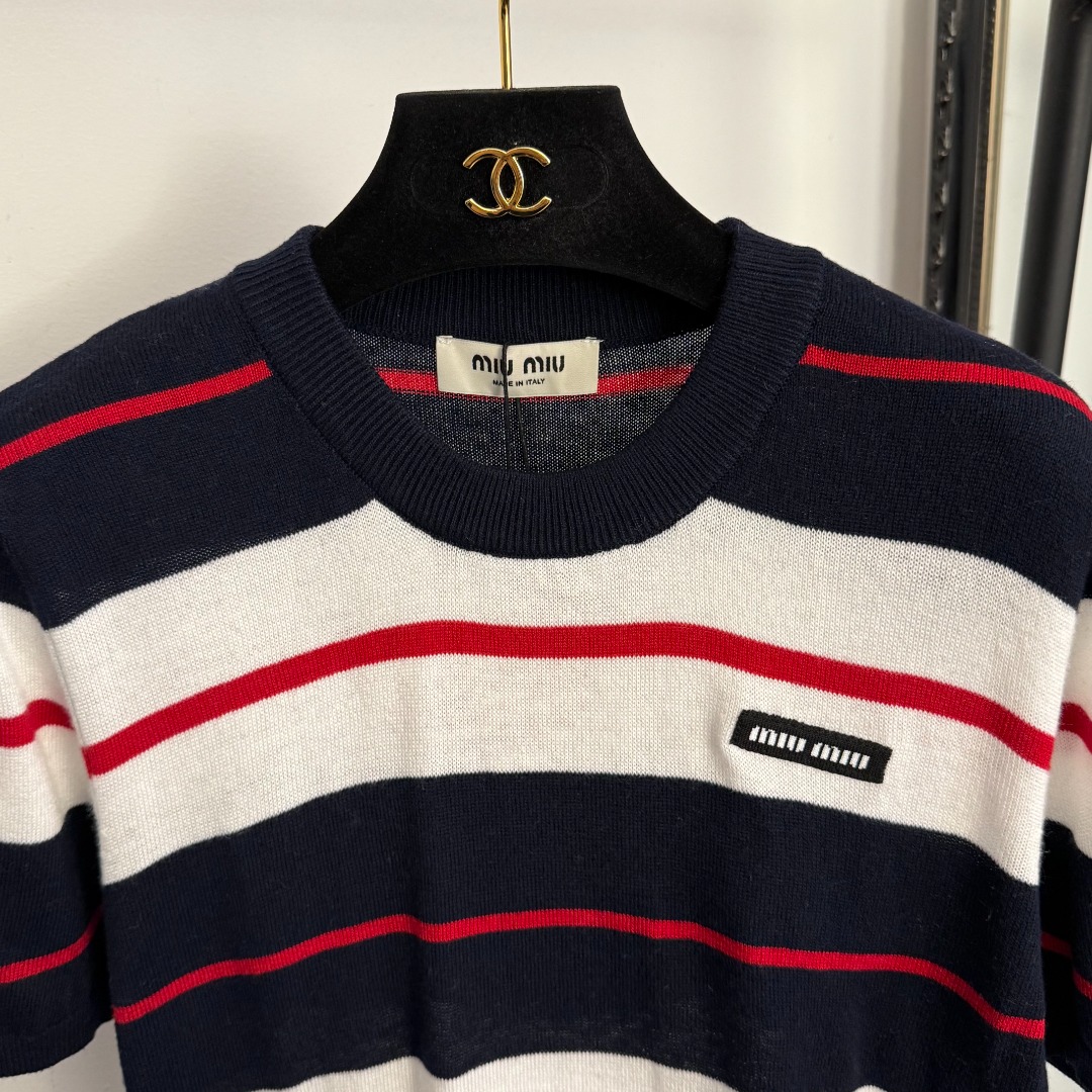 这款衣服是AAAAA 1:1 质量 (非常棒). 使用了和原版一模一样的材料. 商标部分也保持了和缪缪/Miu Miu一样. 图片拍摄是实物衣服拍摄, 您所收到的实物保证和我们图片一模一样.