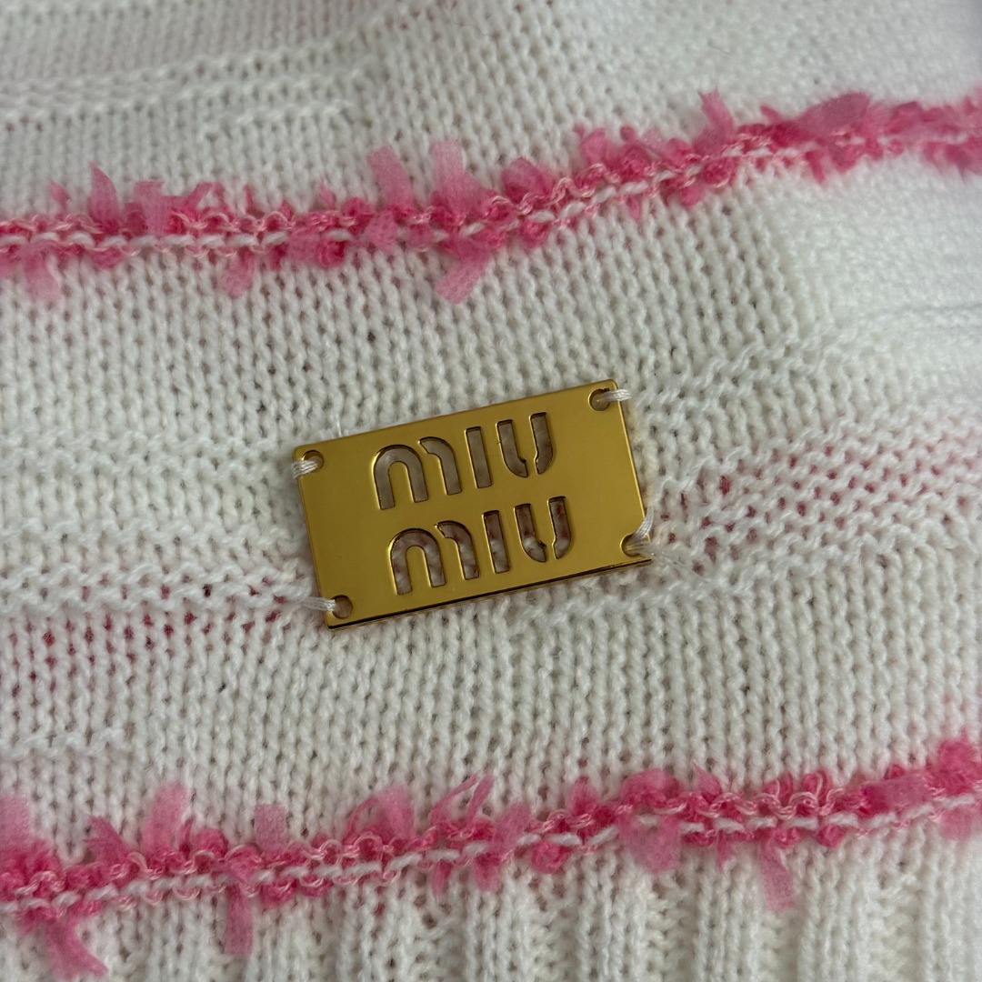 这款衣服是AAAAA 1:1 质量 (非常棒). 使用了和原版一模一样的材料. 商标部分也保持了和缪缪/Miu Miu一样. 图片拍摄是实物衣服拍摄, 您所收到的实物保证和我们图片一模一样.