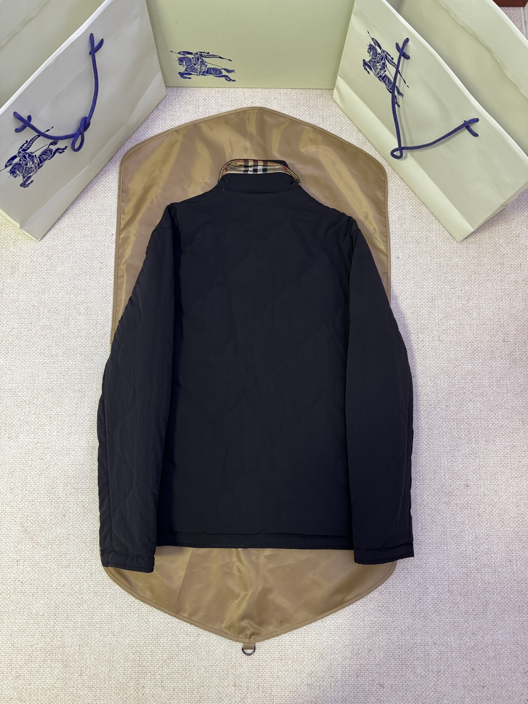 这款衣服是AAAAA 1:1 质量 (非常棒). 使用了和原版一模一样的材料. 商标部分也保持了和巴宝莉/Burberry一样. 图片拍摄是实物衣服拍摄, 您所收到的实物保证和我们图片一模一样.