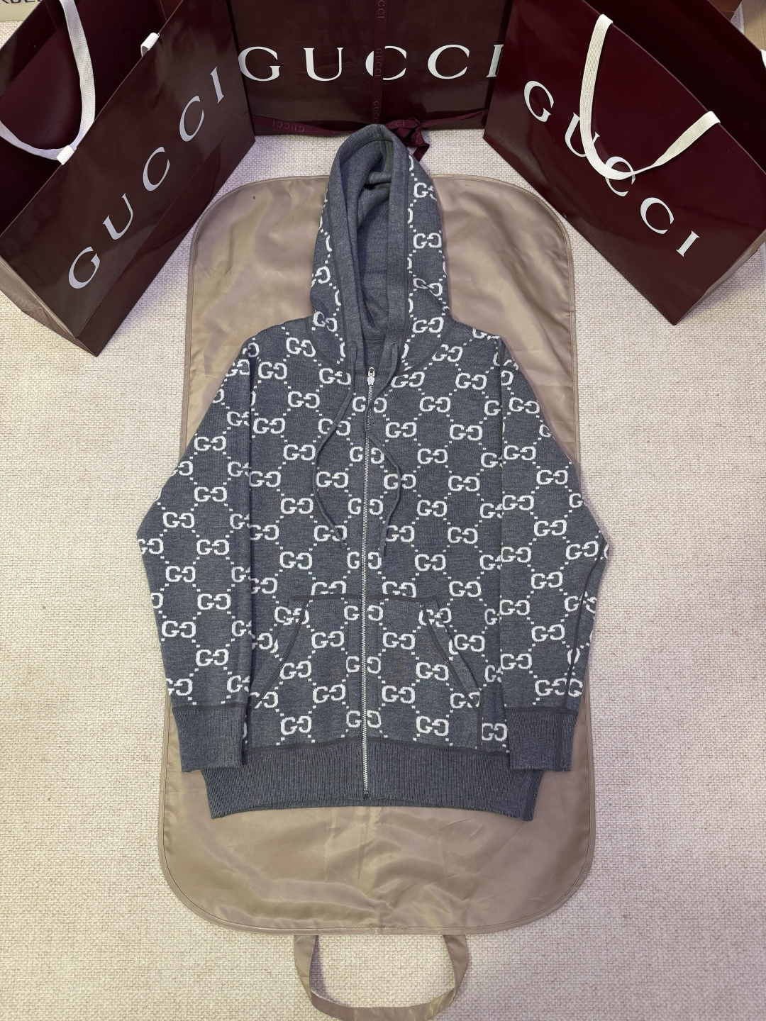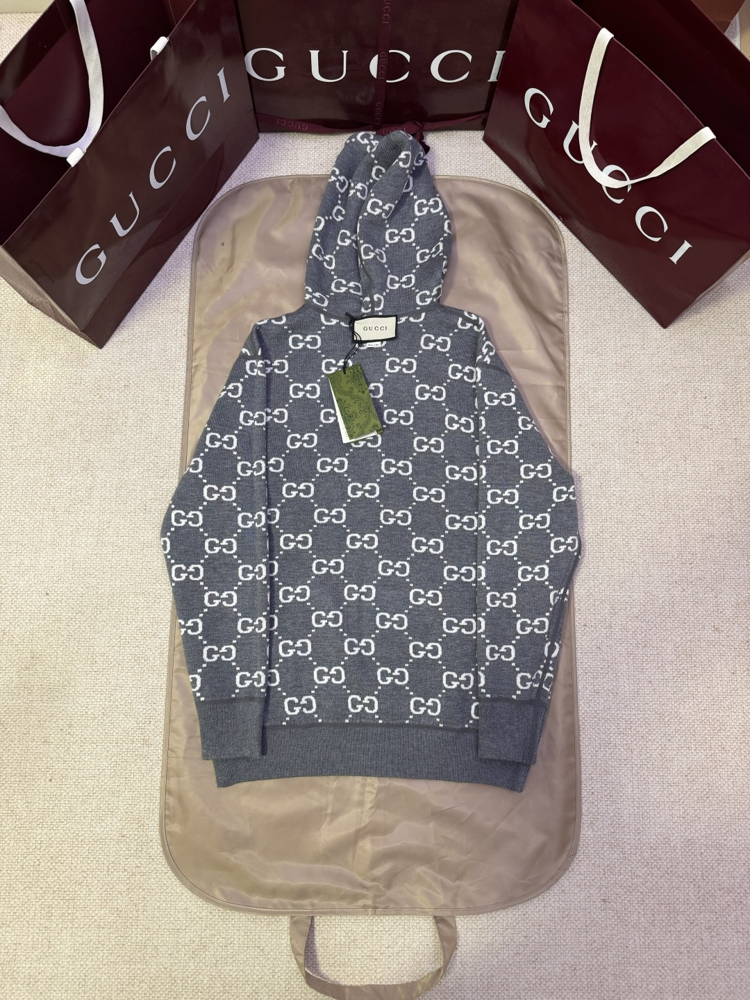 这款衣服是AAAAA 1:1 质量 (非常棒). 使用了和原版一模一样的材料. 商标部分也保持了和古奇/Gucci一样. 图片拍摄是实物衣服拍摄, 您所收到的实物保证和我们图片一模一样.