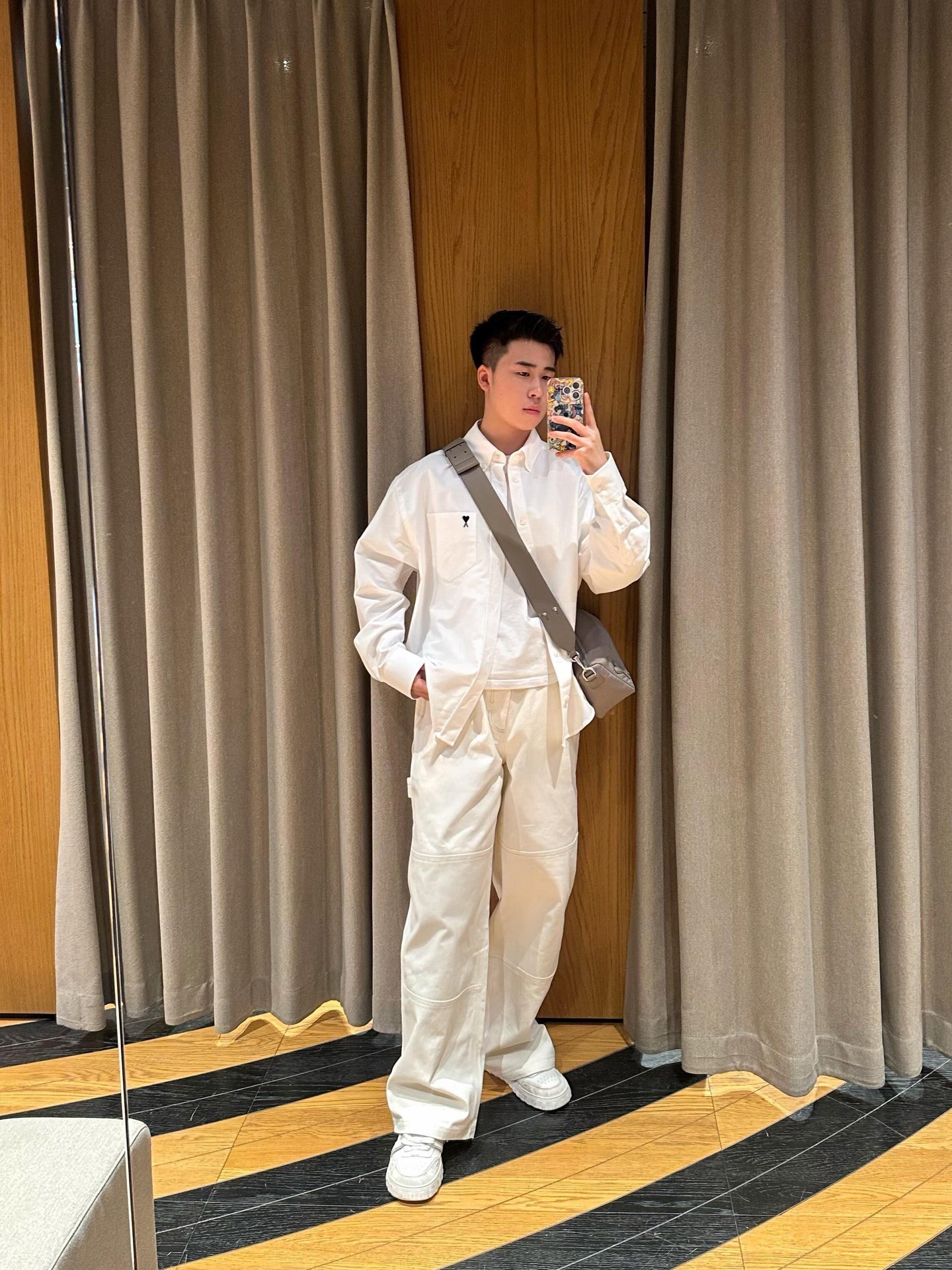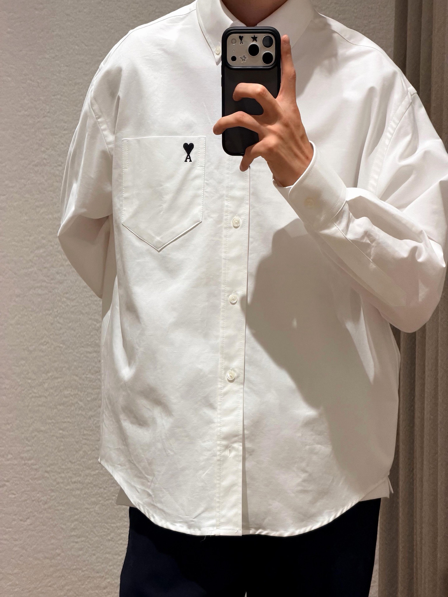 这款衣服是AAAAA 1:1 质量 (非常棒). 使用了和原版一模一样的材料. 商标部分也保持了和Ami一样. 图片拍摄是实物衣服拍摄, 您所收到的实物保证和我们图片一模一样.
