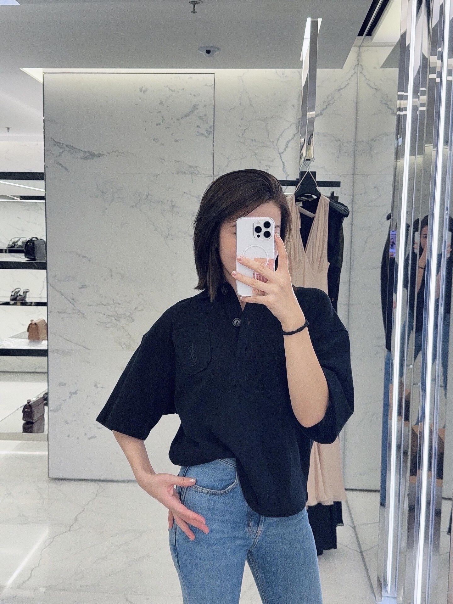 这款衣服是AAAAA 1:1 质量 (非常棒). 使用了和原版一模一样的材料. 商标部分也保持了和圣罗兰/Saint Laurent一样. 图片拍摄是实物衣服拍摄, 您所收到的实物保证和我们图片一模一样.