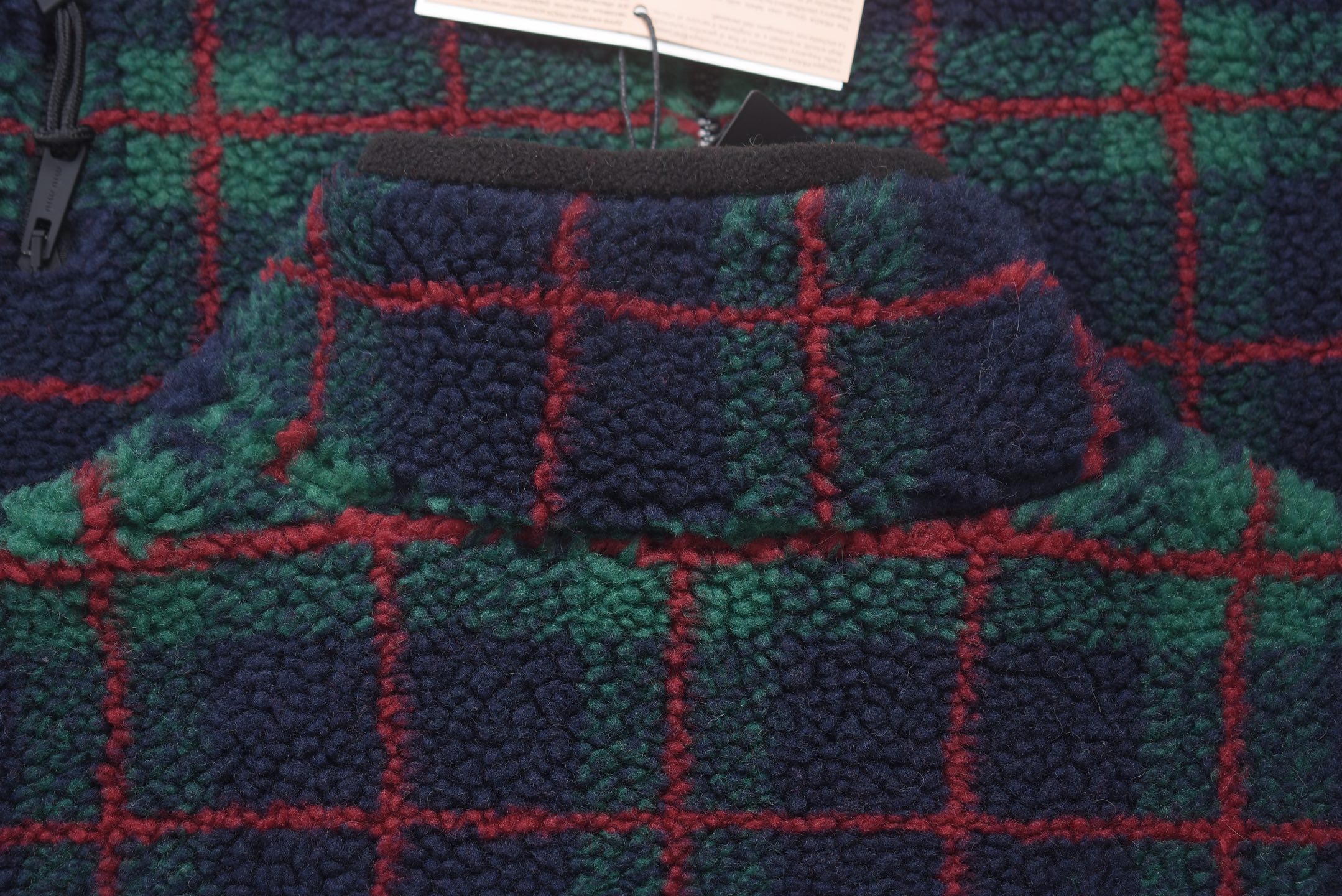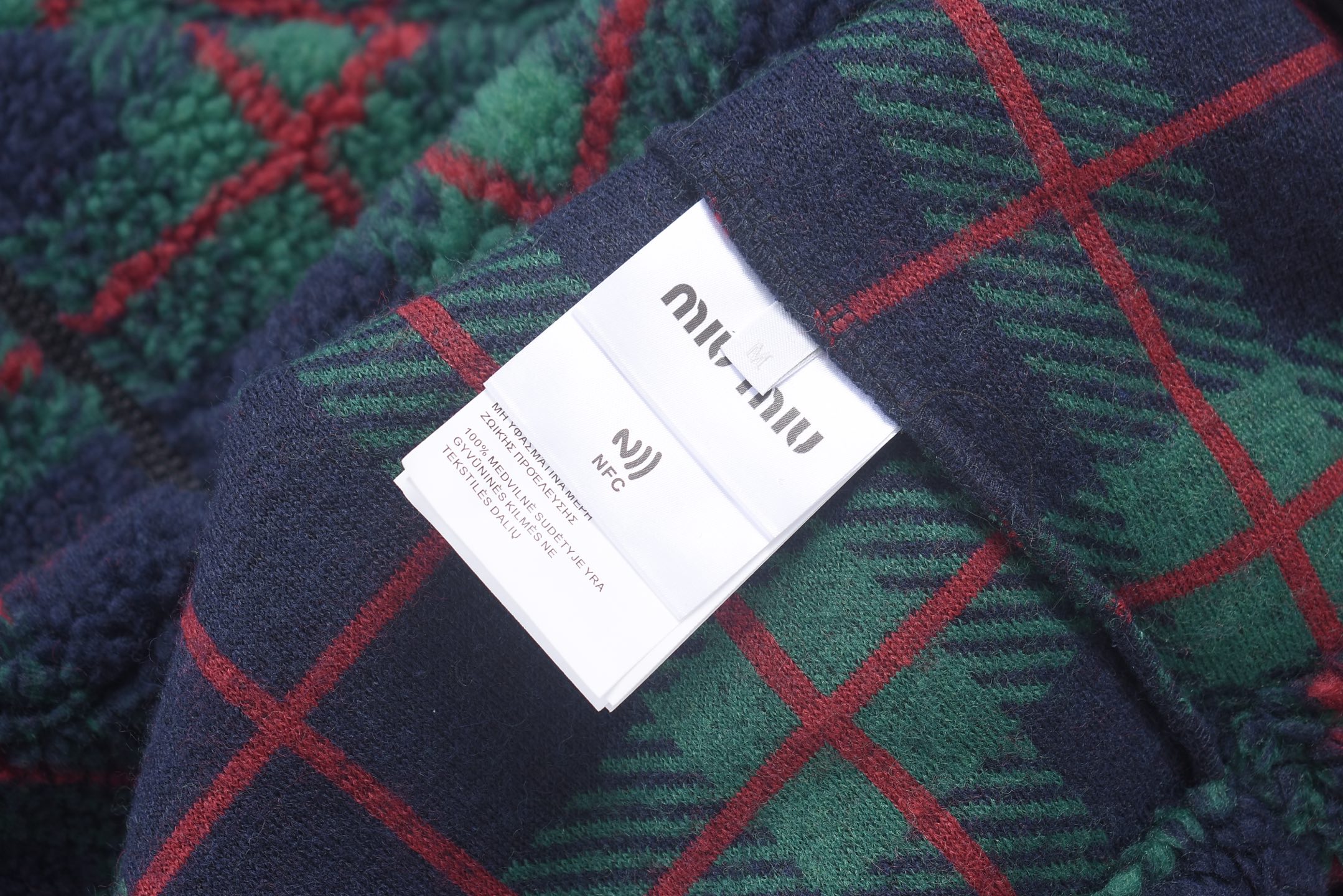 这款衣服是AAAAA 1:1 质量 (非常棒). 使用了和原版一模一样的材料. 商标部分也保持了和缪缪/Miu Miu一样. 图片拍摄是实物衣服拍摄, 您所收到的实物保证和我们图片一模一样.