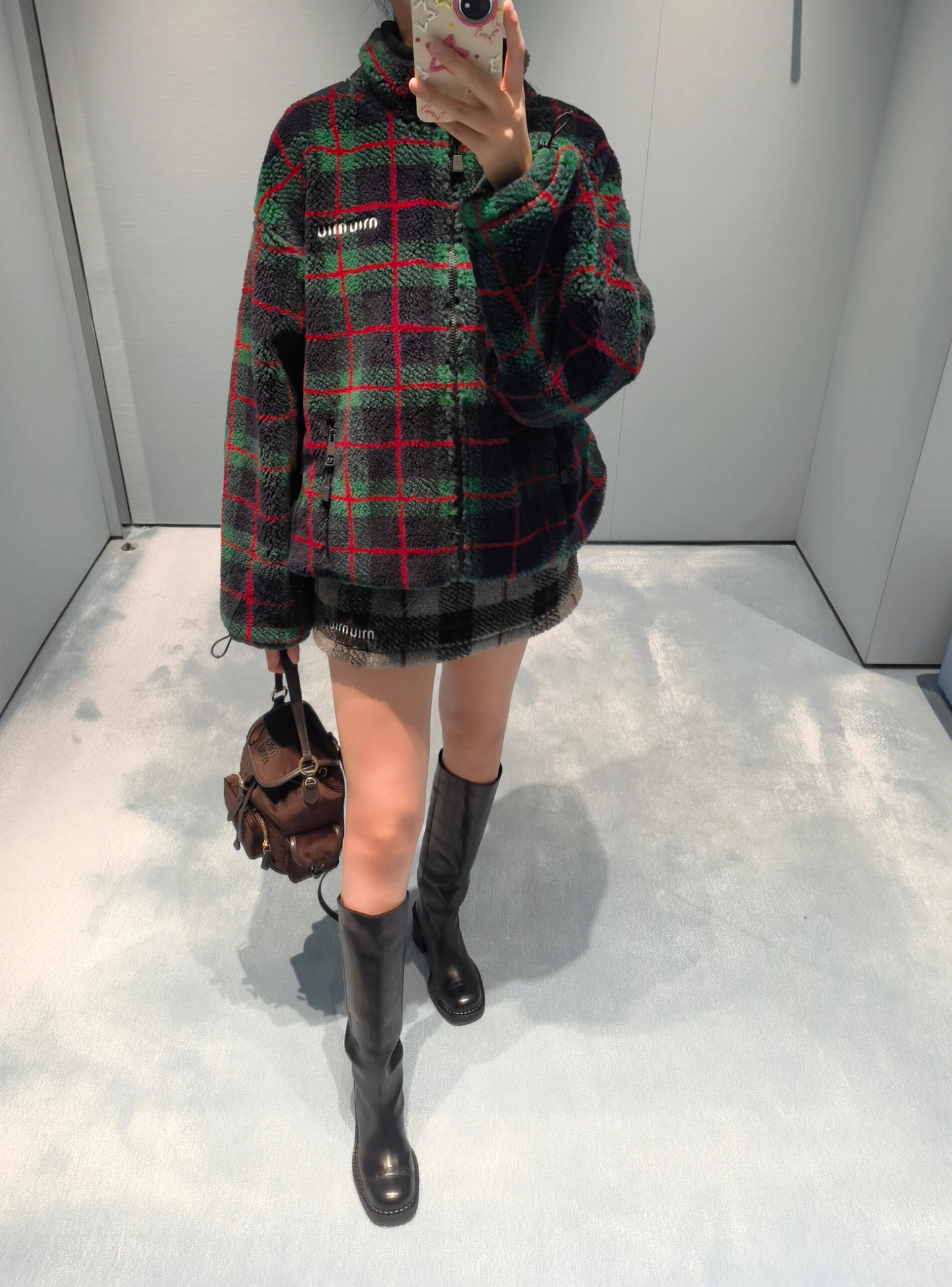这款衣服是AAAAA 1:1 质量 (非常棒). 使用了和原版一模一样的材料. 商标部分也保持了和缪缪/Miu Miu一样. 图片拍摄是实物衣服拍摄, 您所收到的实物保证和我们图片一模一样.