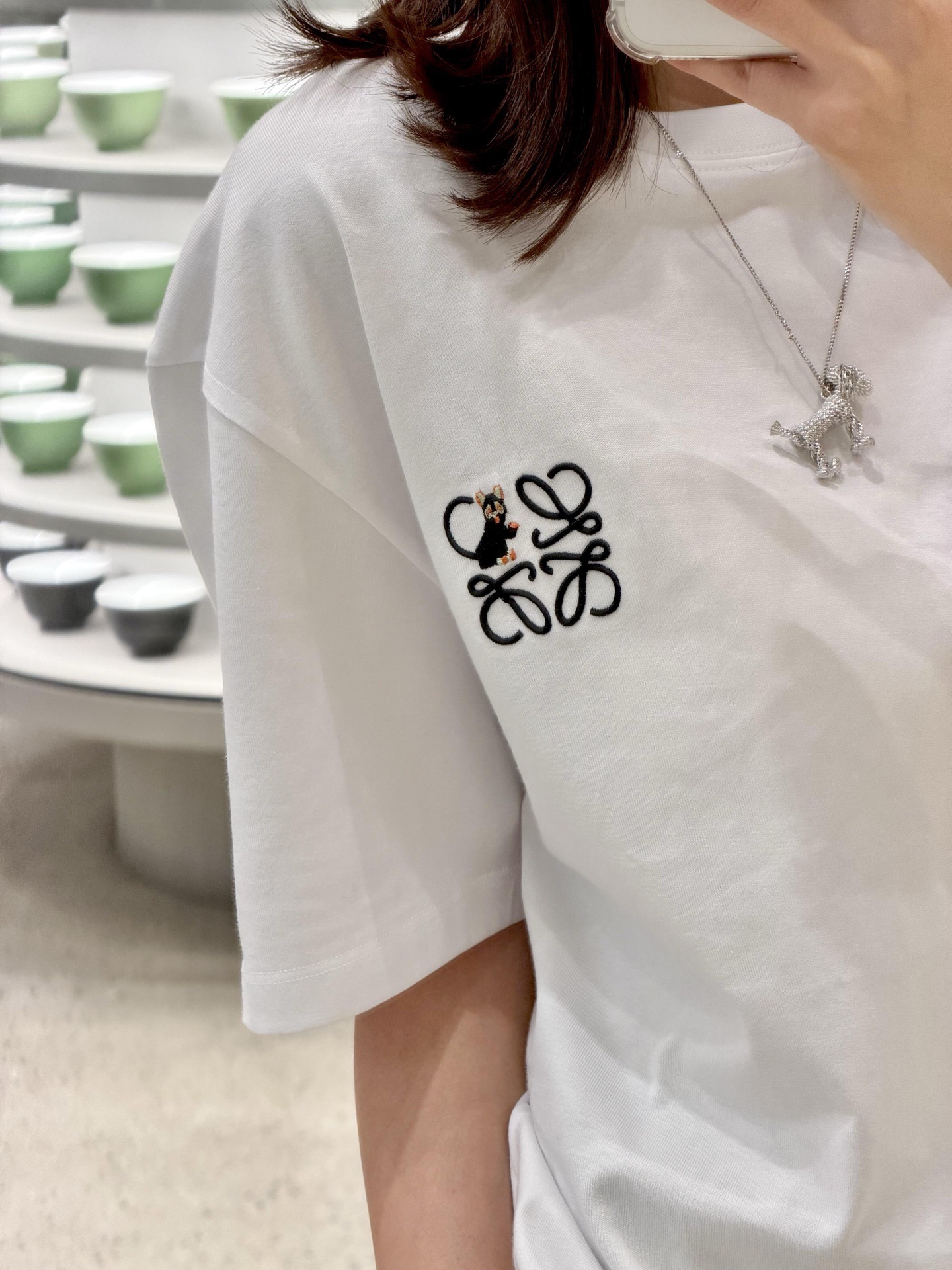 这款衣服是AAAAA 1:1 质量 (非常棒). 使用了和原版一模一样的材料. 商标部分也保持了和罗意威/Loewe一样. 图片拍摄是实物衣服拍摄, 您所收到的实物保证和我们图片一模一样.