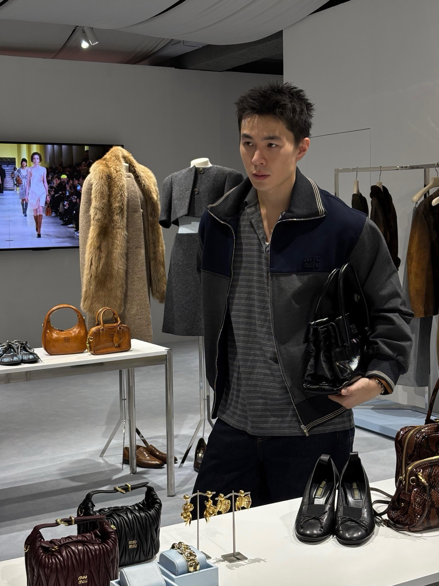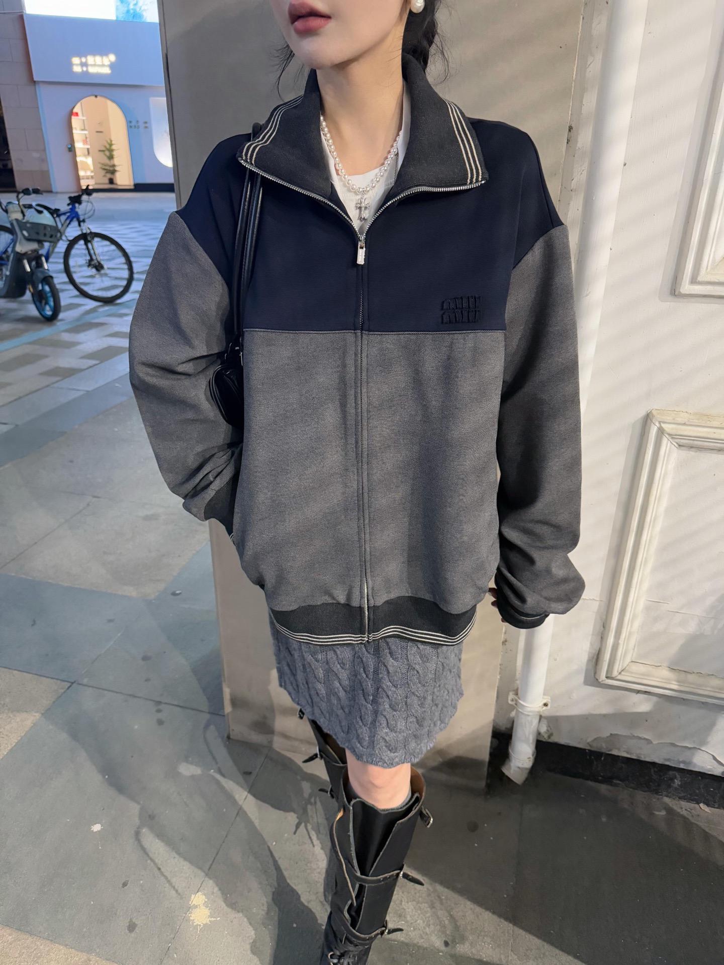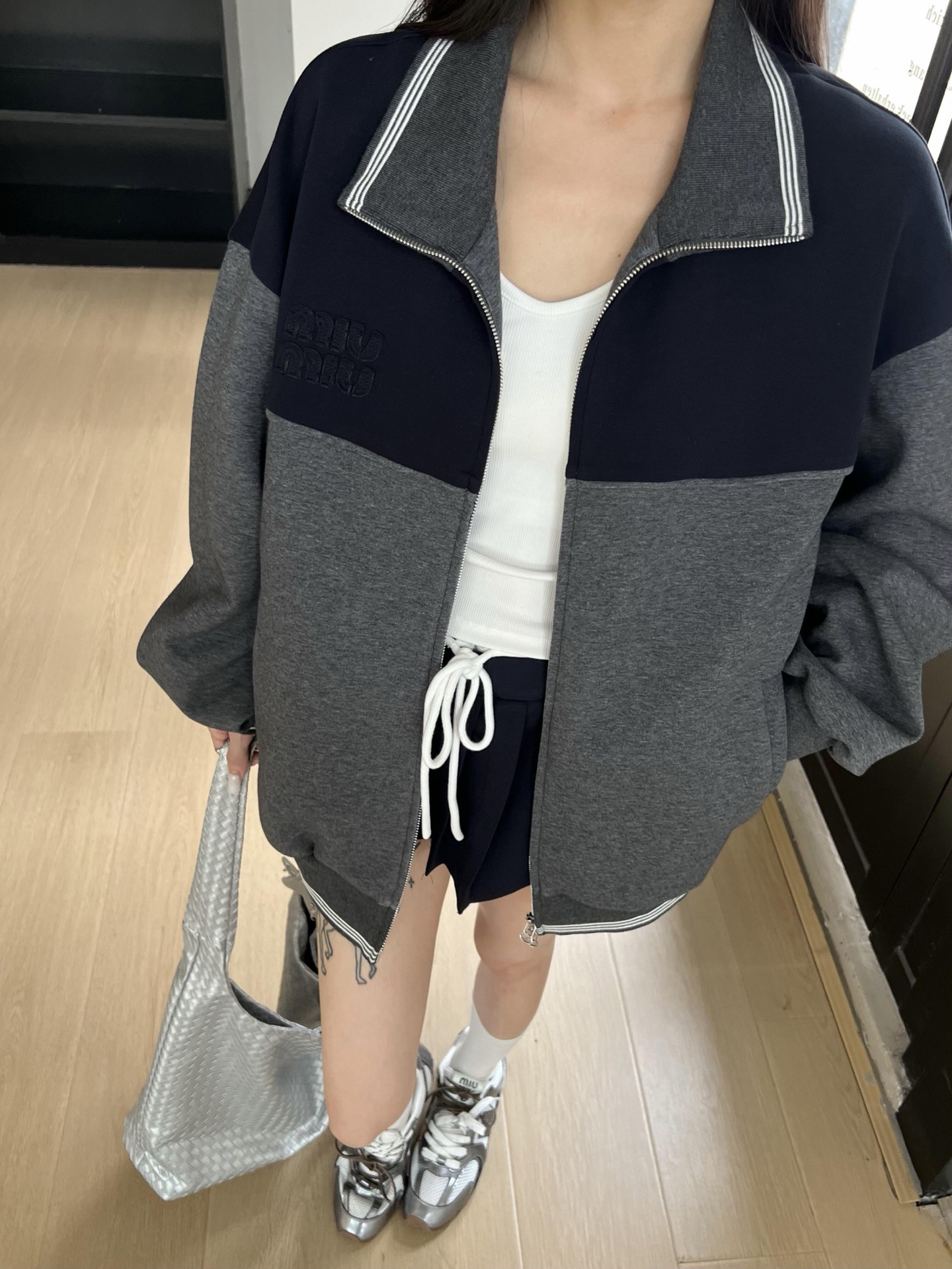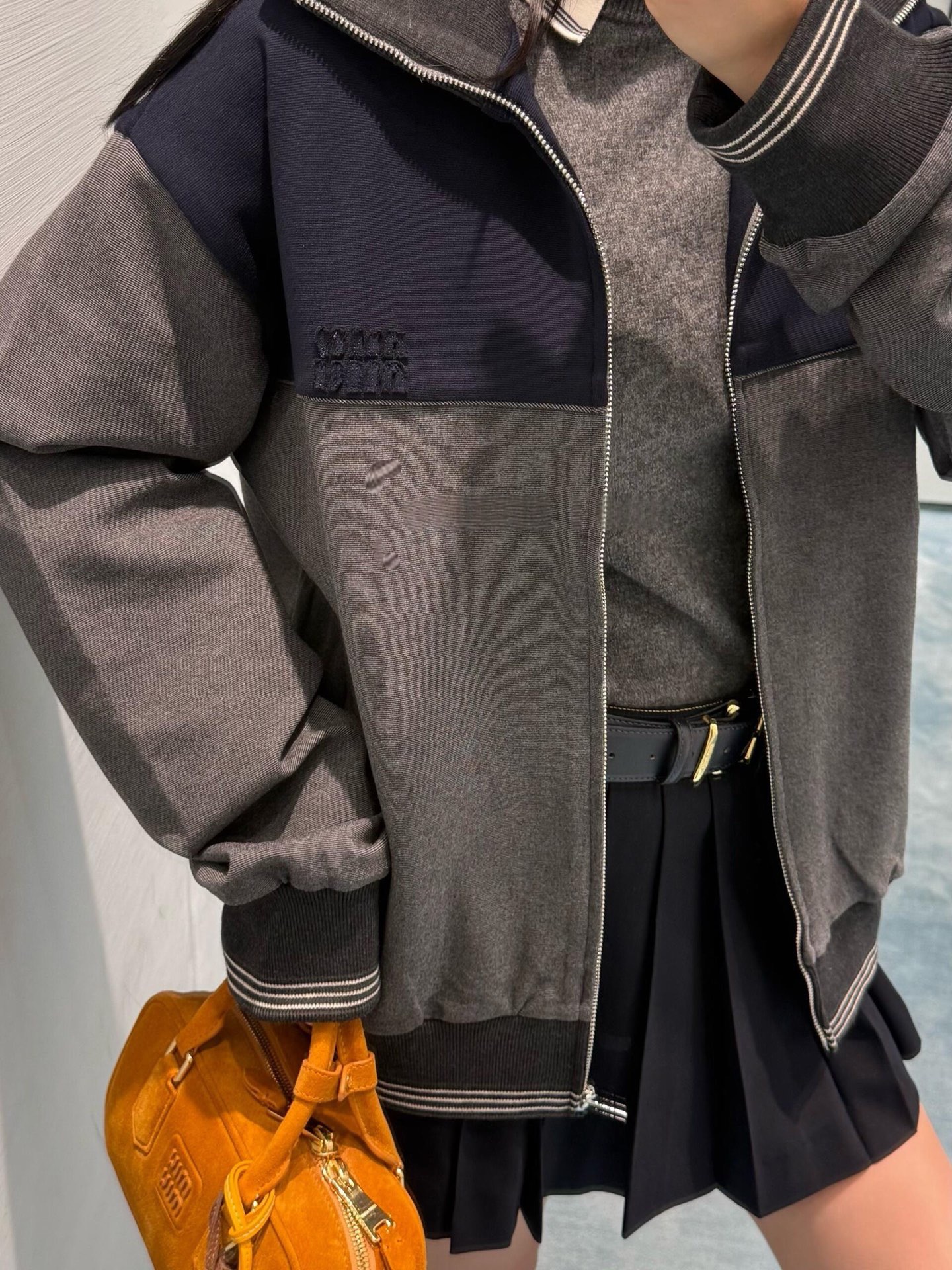 这款衣服是AAAAA 1:1 质量 (非常棒). 使用了和原版一模一样的材料. 商标部分也保持了和缪缪/Miu Miu一样. 图片拍摄是实物衣服拍摄, 您所收到的实物保证和我们图片一模一样.
