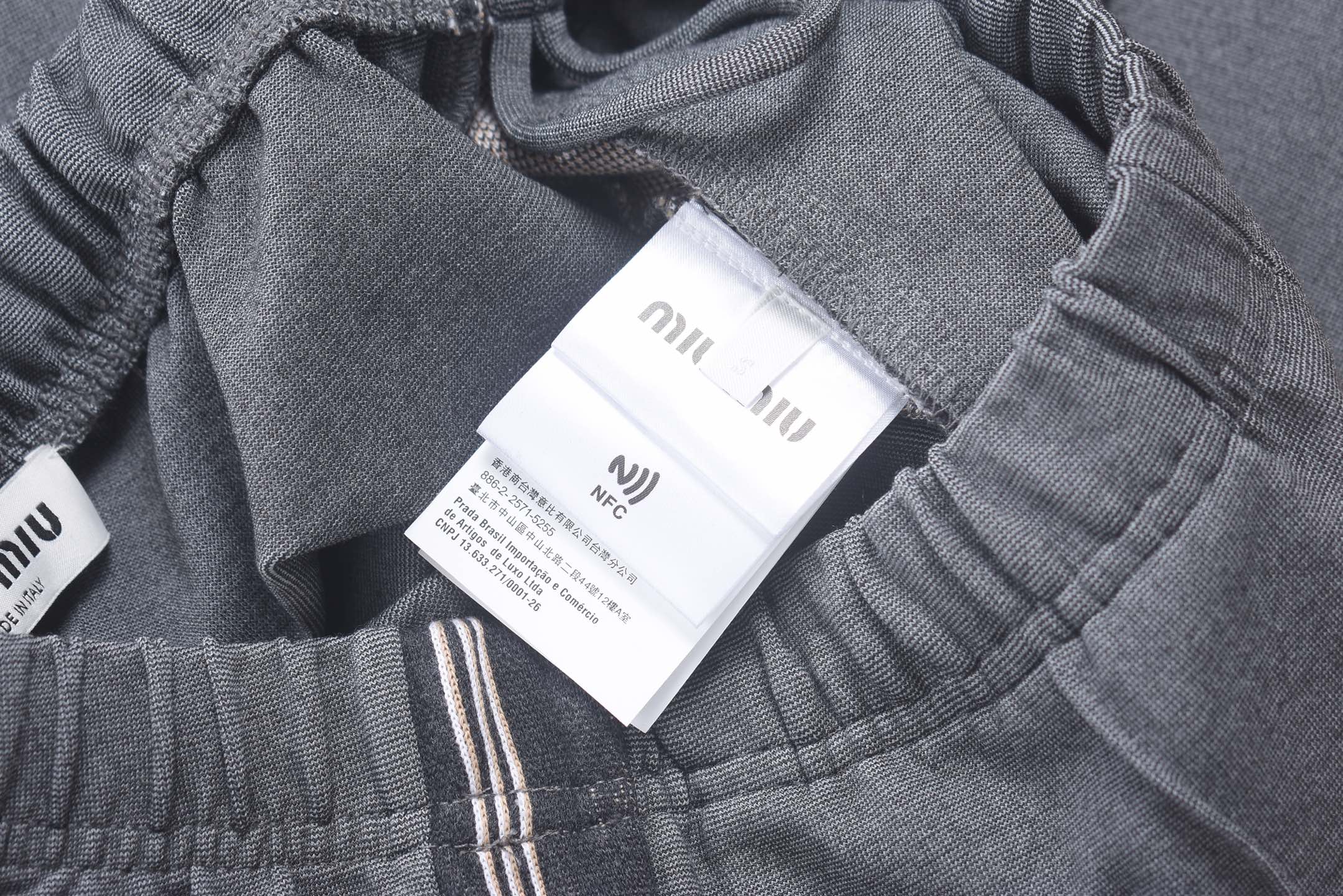 这款衣服是AAAAA 1:1 质量 (非常棒). 使用了和原版一模一样的材料. 商标部分也保持了和缪缪/Miu Miu一样. 图片拍摄是实物衣服拍摄, 您所收到的实物保证和我们图片一模一样.