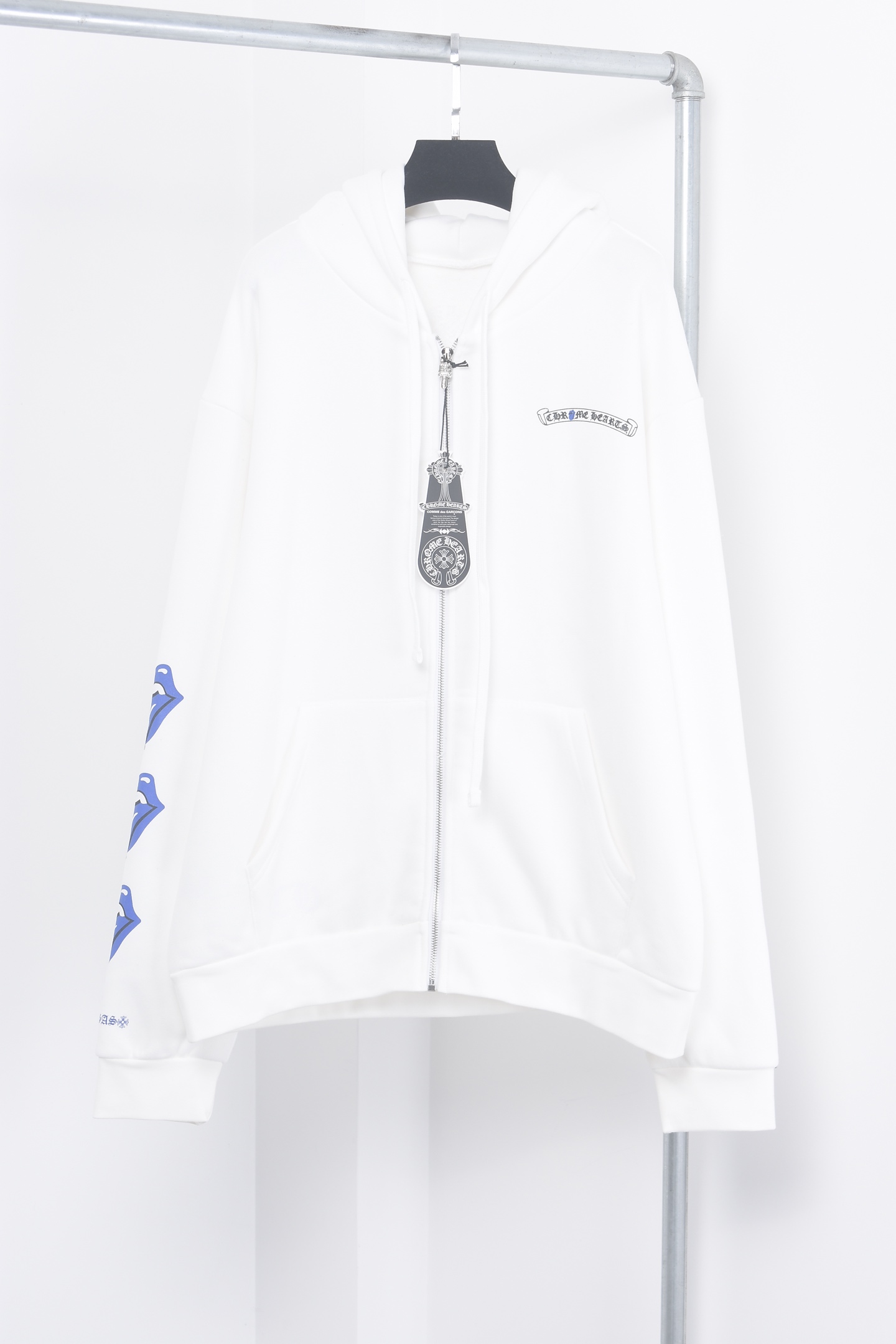 这款衣服是AAAAA 1:1 质量 (非常棒). 使用了和原版一模一样的材料. 商标部分也保持了和克罗心/Chrome Hearts一样. 图片拍摄是实物衣服拍摄, 您所收到的实物保证和我们图片一模一样.