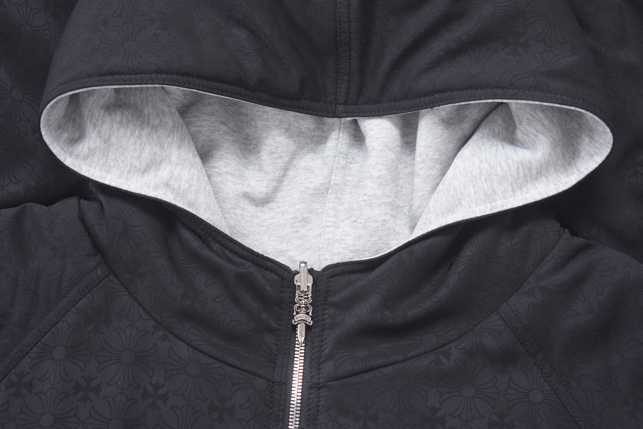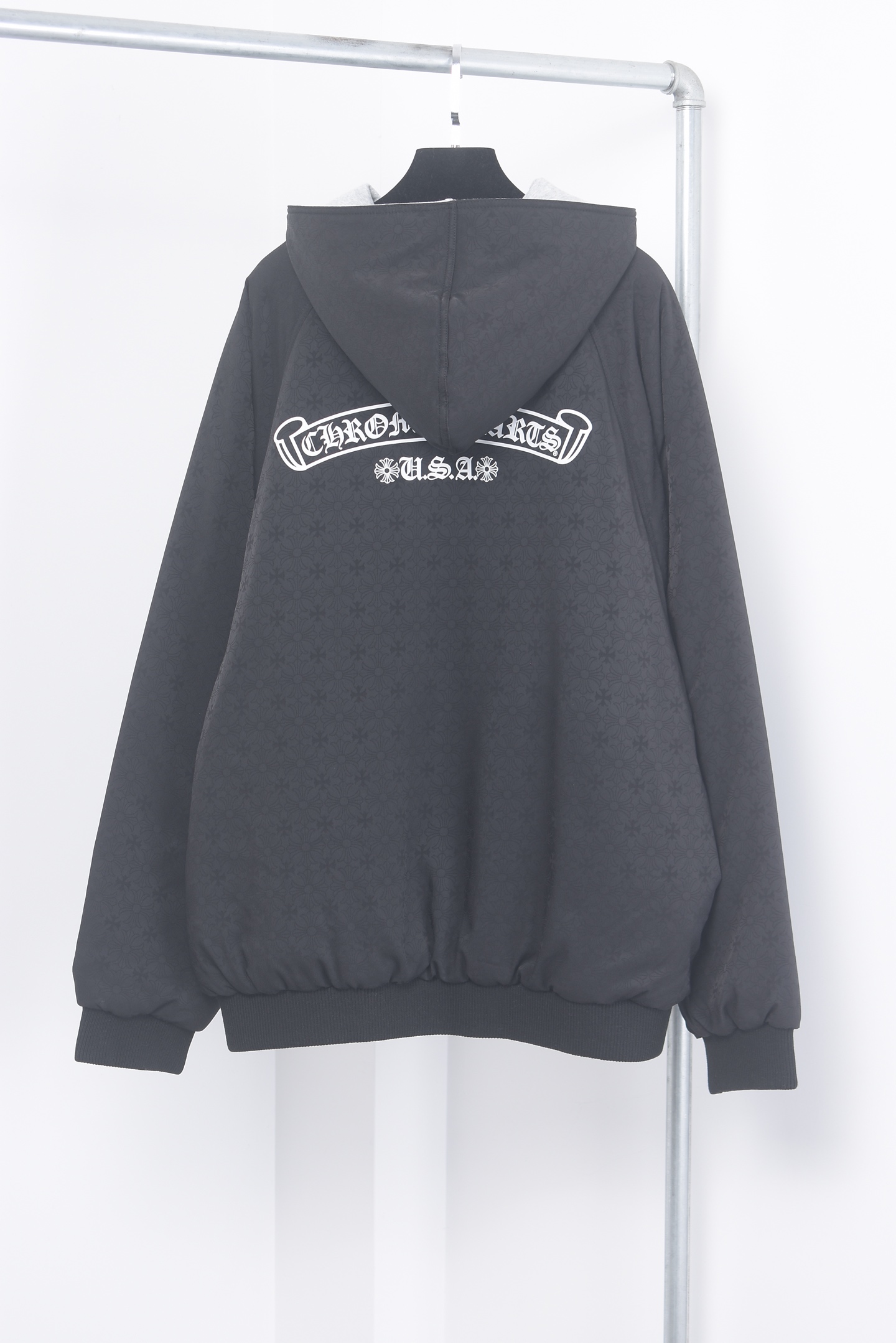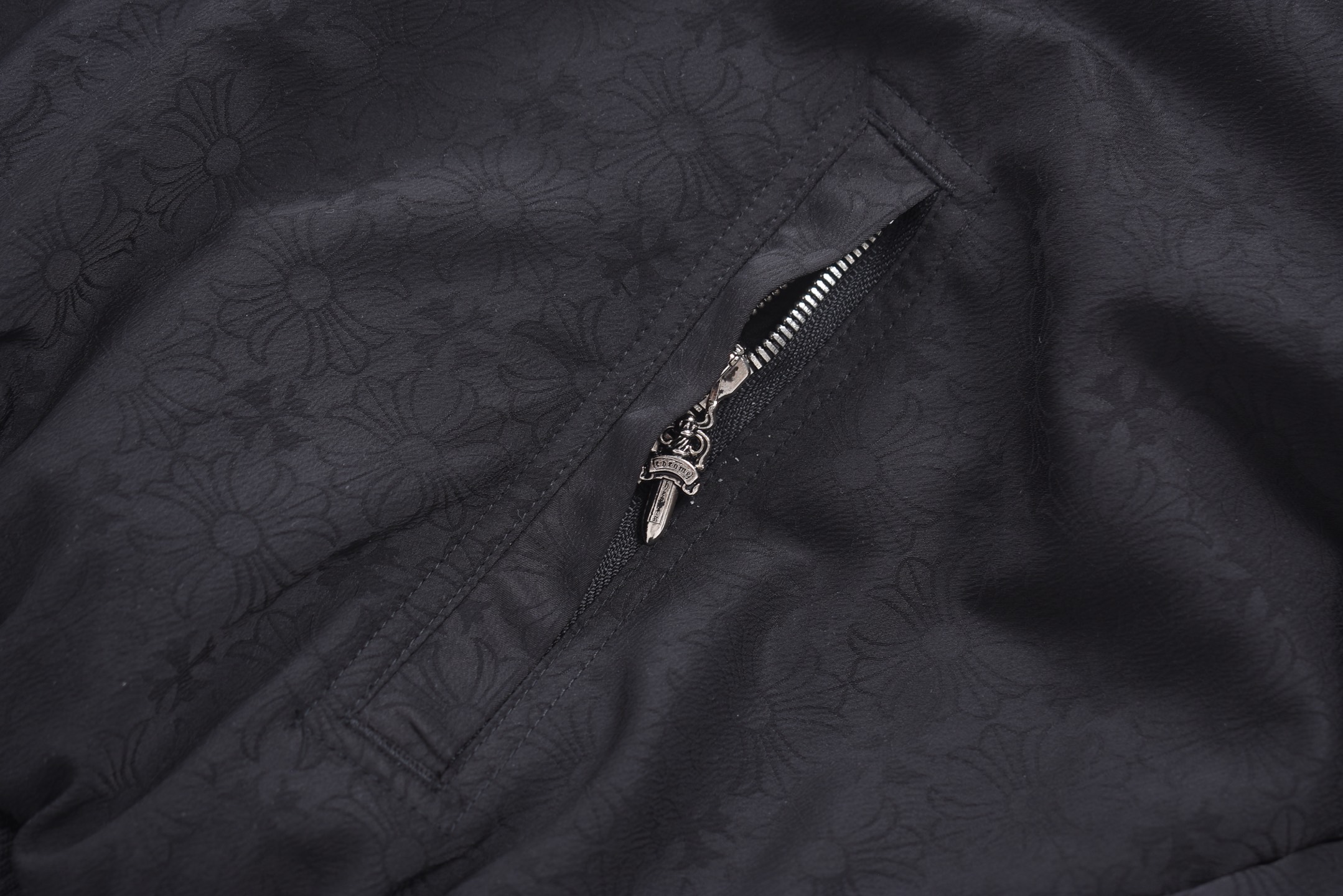 这款衣服是AAAAA 1:1 质量 (非常棒). 使用了和原版一模一样的材料. 商标部分也保持了和克罗心/Chrome Hearts一样. 图片拍摄是实物衣服拍摄, 您所收到的实物保证和我们图片一模一样.