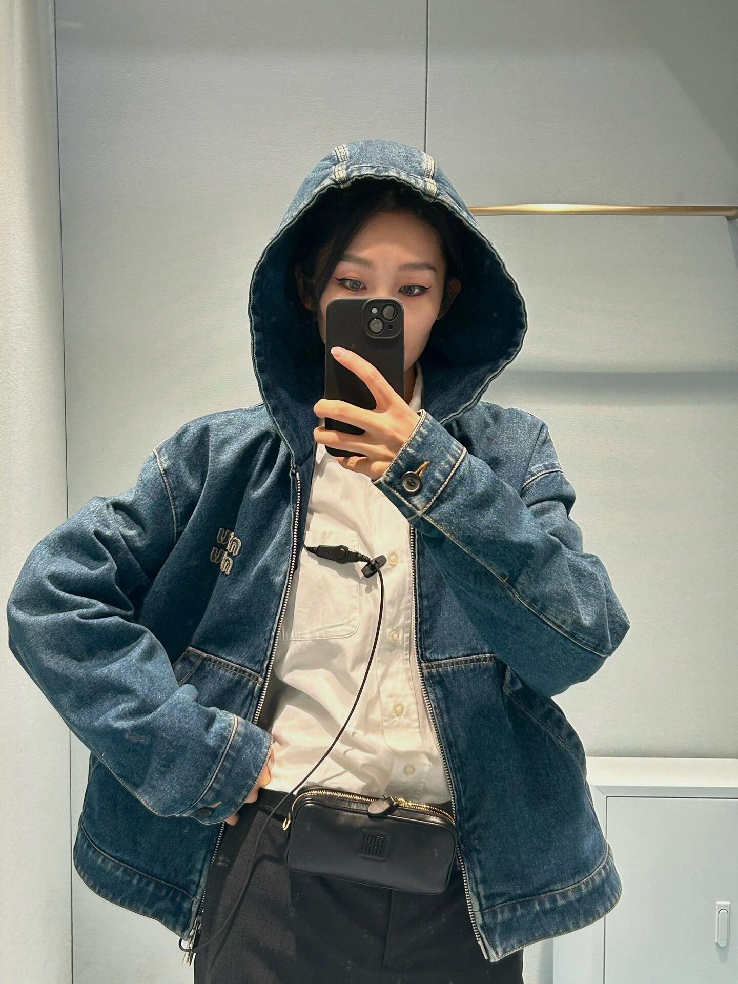 这款衣服是AAAAA 1:1 质量 (非常棒). 使用了和原版一模一样的材料. 商标部分也保持了和缪缪/Miu Miu一样. 图片拍摄是实物衣服拍摄, 您所收到的实物保证和我们图片一模一样.