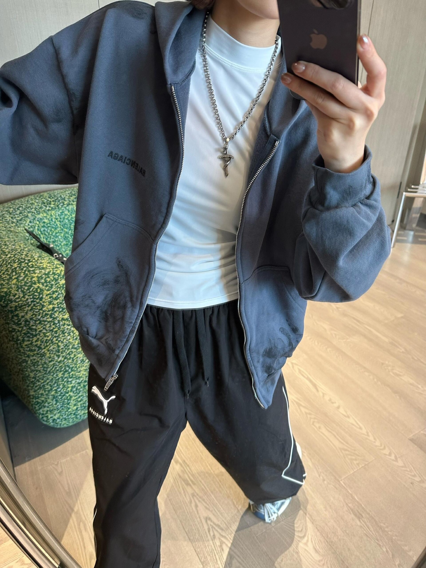 这款衣服是AAAAA 1:1 质量 (非常棒). 使用了和原版一模一样的材料. 商标部分也保持了和巴黎世家/Balenciaga一样. 图片拍摄是实物衣服拍摄, 您所收到的实物保证和我们图片一模一样.