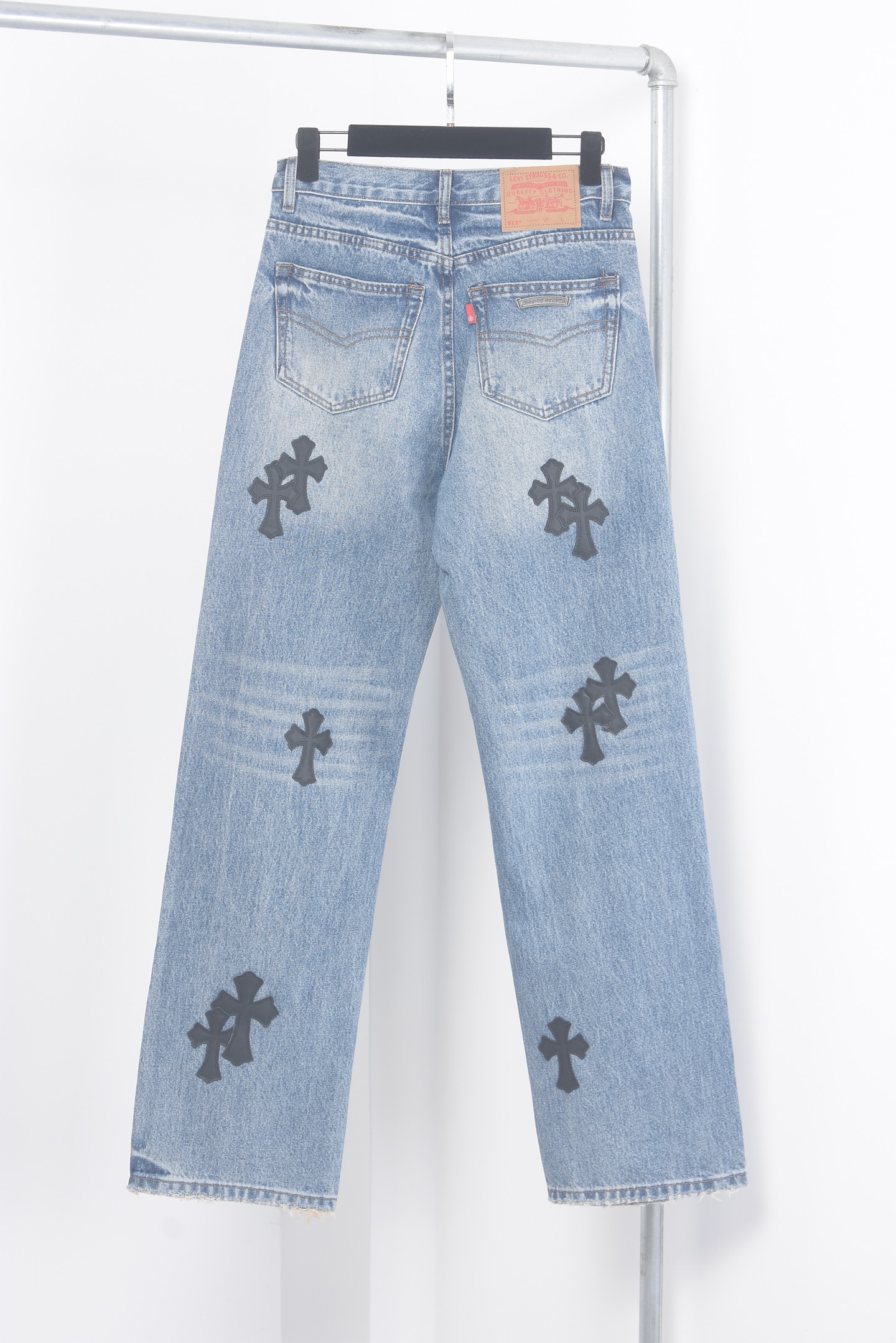 这款衣服是AAAAA 1:1 质量 (非常棒). 使用了和原版一模一样的材料. 商标部分也保持了和克罗心/Chrome Hearts一样. 图片拍摄是实物衣服拍摄, 您所收到的实物保证和我们图片一模一样.
