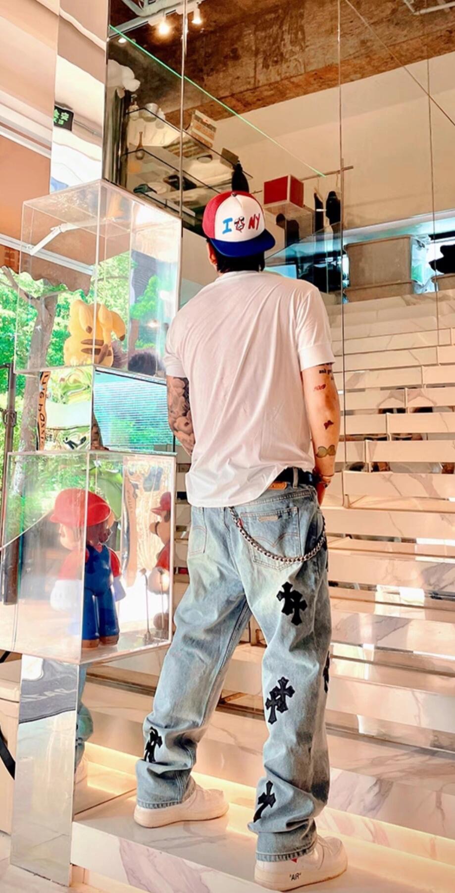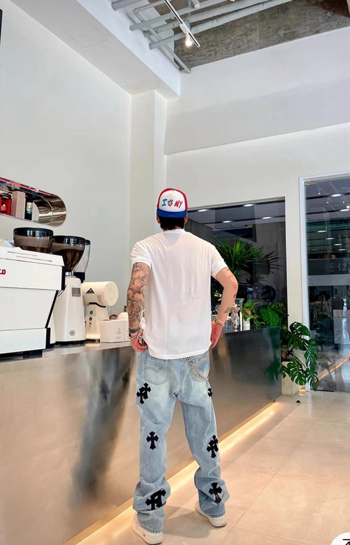 这款衣服是AAAAA 1:1 质量 (非常棒). 使用了和原版一模一样的材料. 商标部分也保持了和克罗心/Chrome Hearts一样. 图片拍摄是实物衣服拍摄, 您所收到的实物保证和我们图片一模一样.