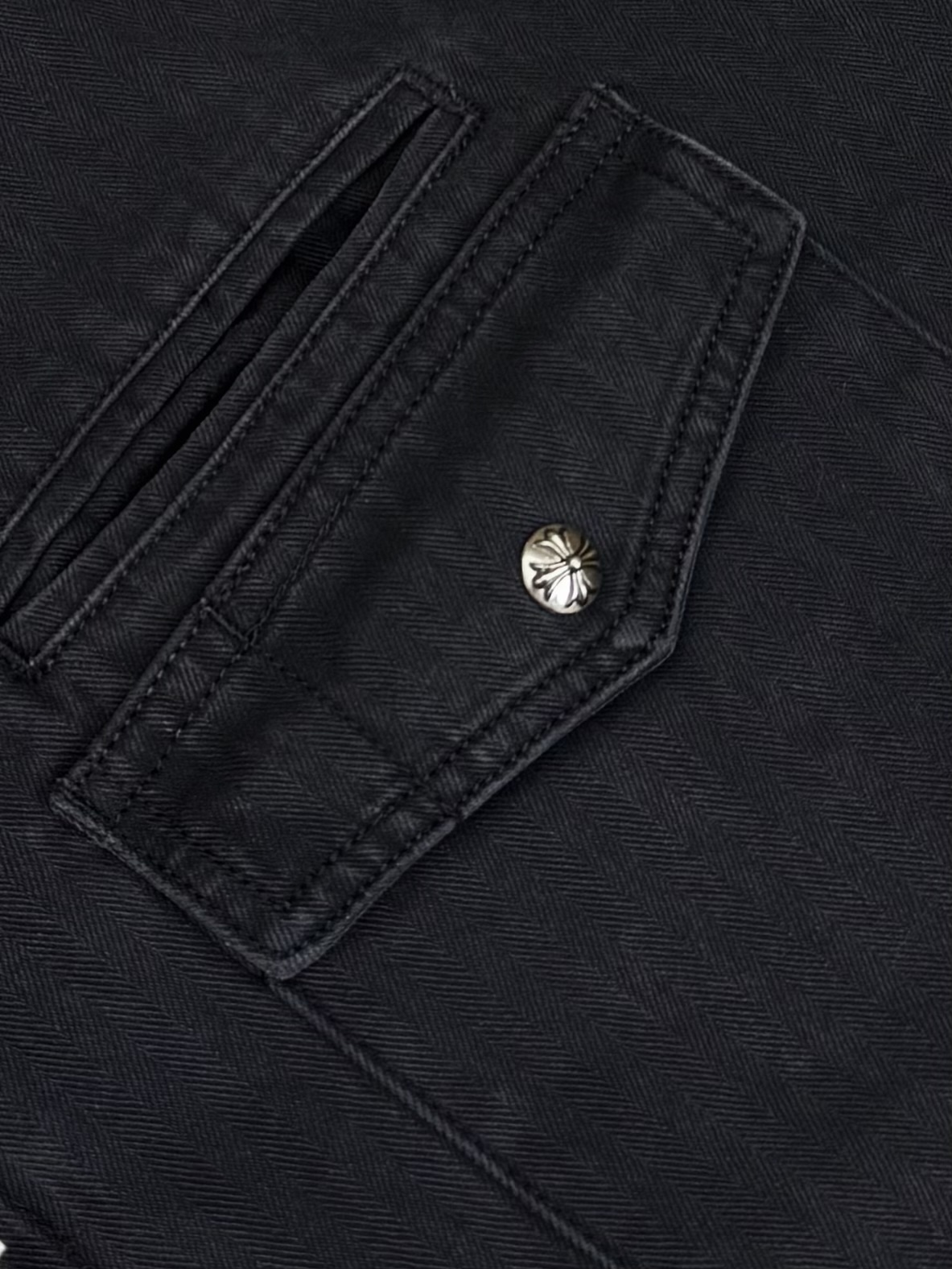 这款衣服是AAAAA 1:1 质量 (非常棒). 使用了和原版一模一样的材料. 商标部分也保持了和克罗心/Chrome Hearts一样. 图片拍摄是实物衣服拍摄, 您所收到的实物保证和我们图片一模一样.