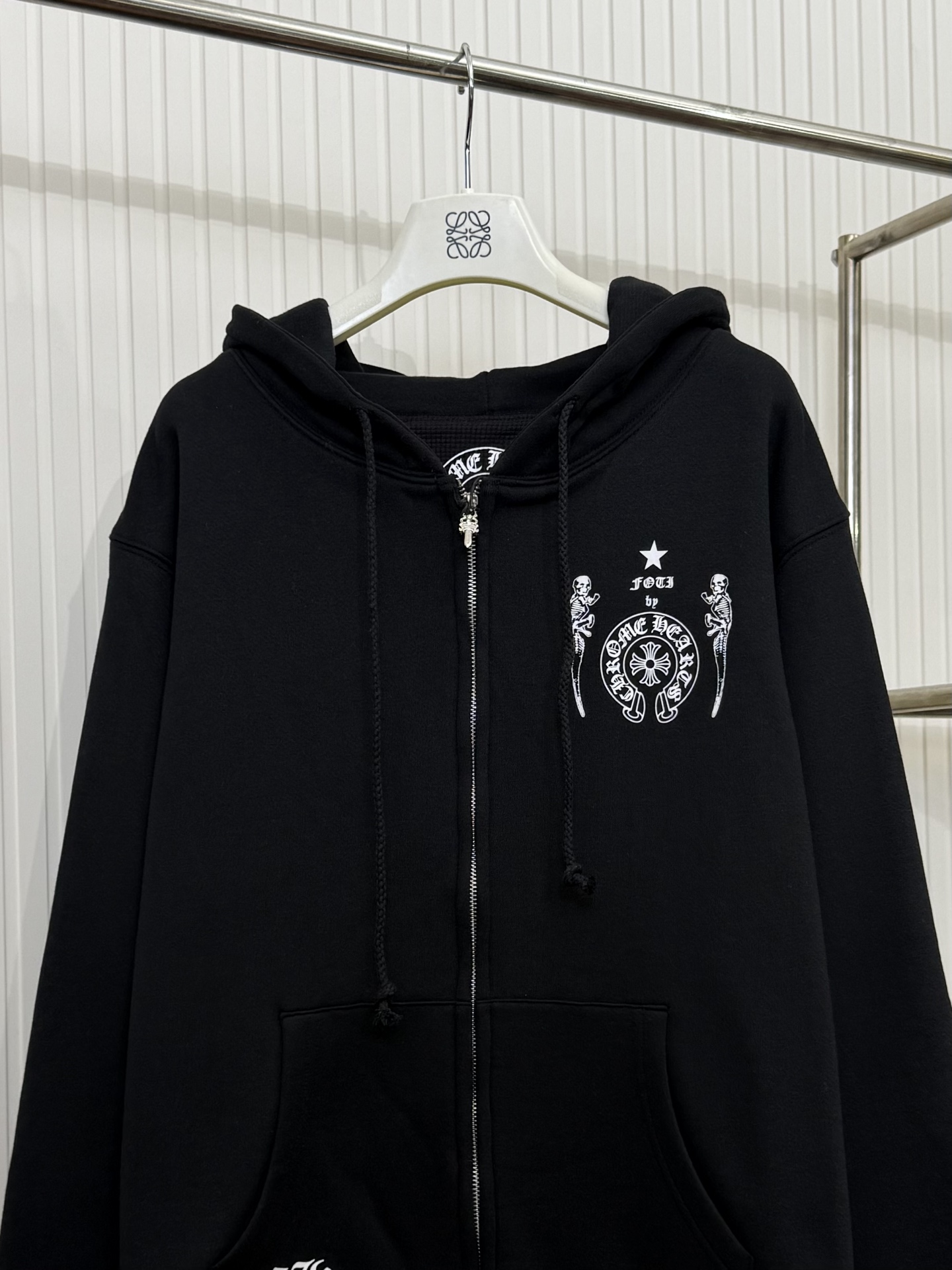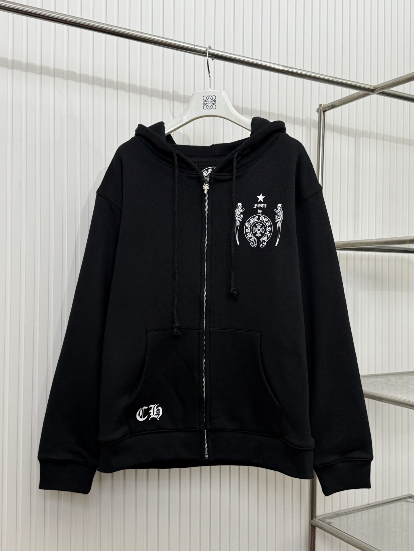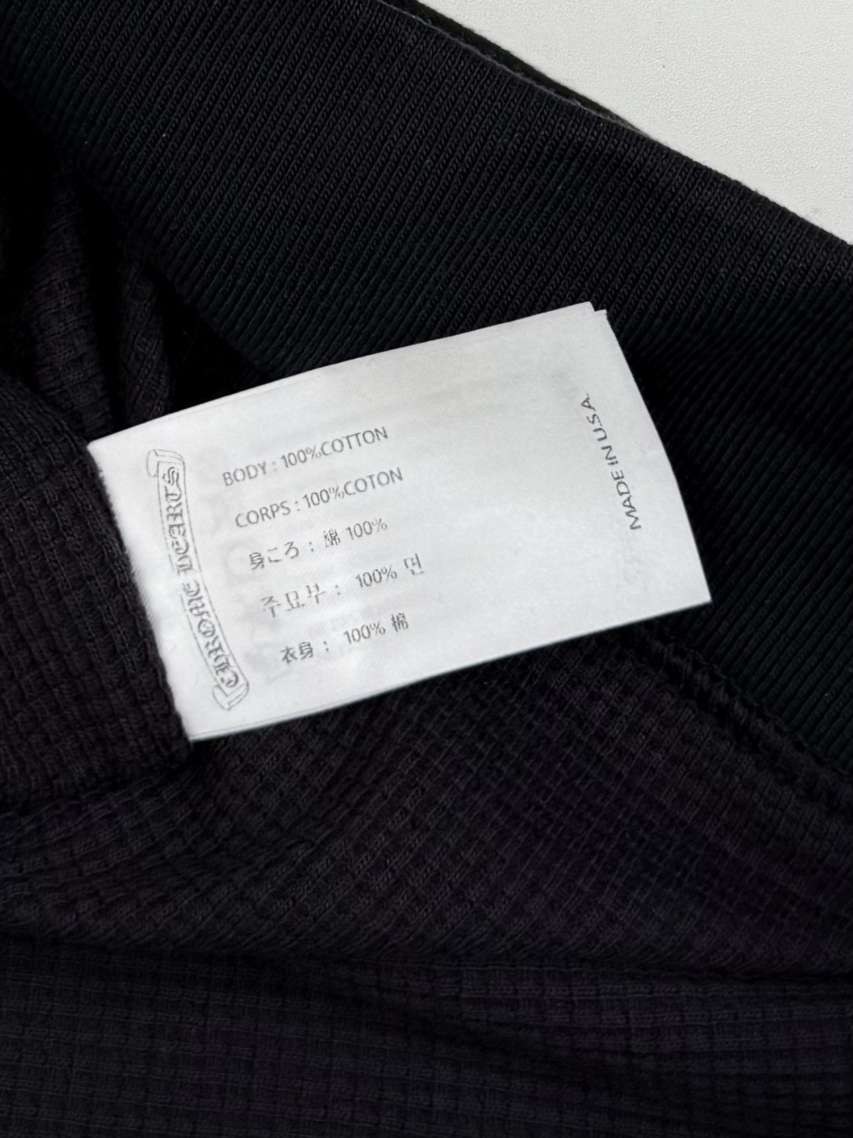 这款衣服是AAAAA 1:1 质量 (非常棒). 使用了和原版一模一样的材料. 商标部分也保持了和克罗心/Chrome Hearts一样. 图片拍摄是实物衣服拍摄, 您所收到的实物保证和我们图片一模一样.