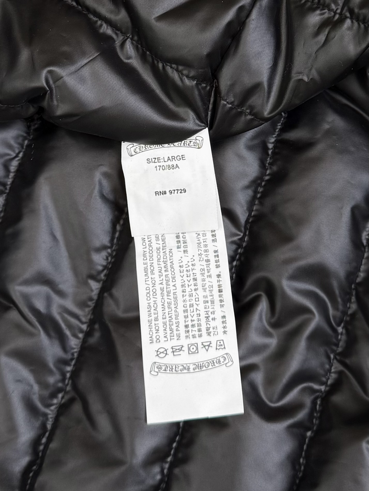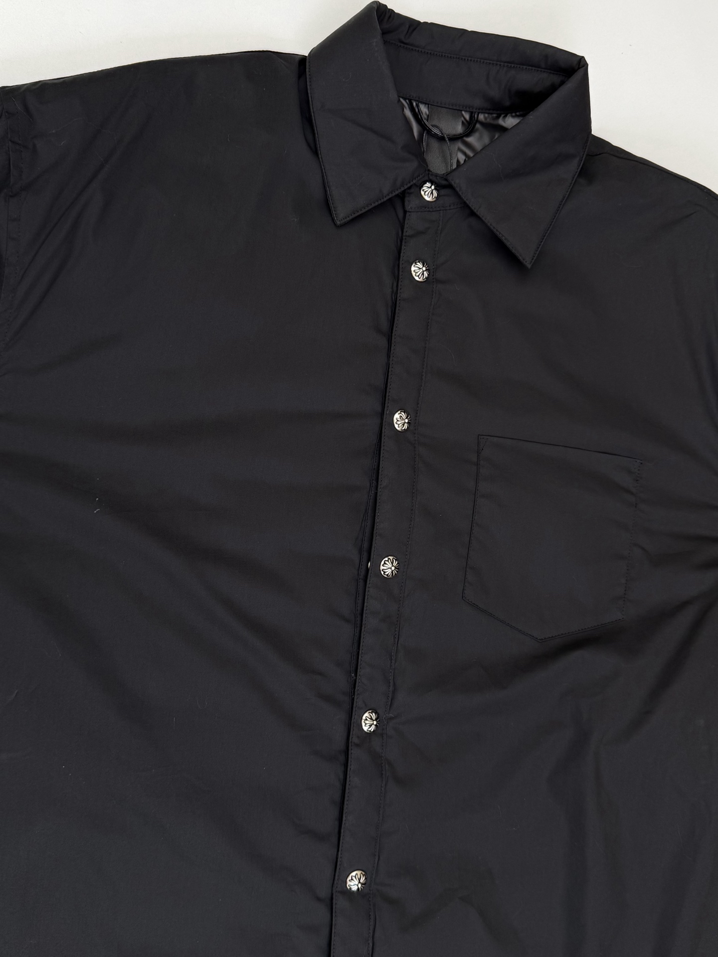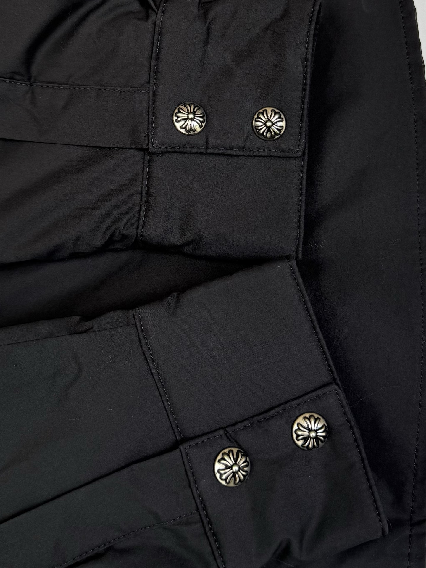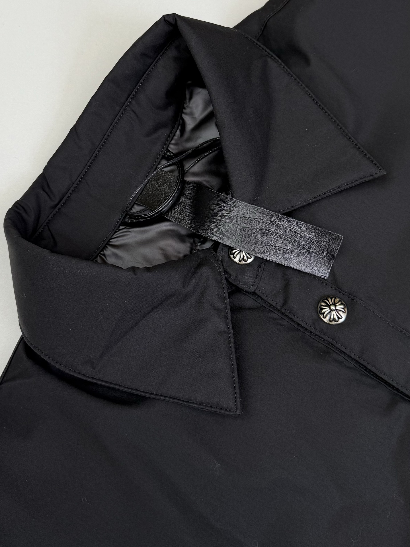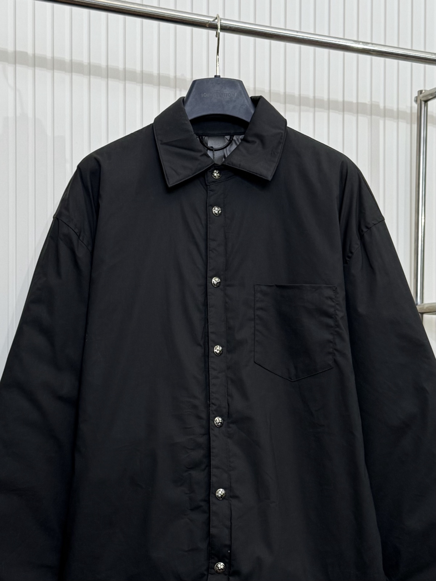 这款衣服是AAAAA 1:1 质量 (非常棒). 使用了和原版一模一样的材料. 商标部分也保持了和克罗心/Chrome Hearts一样. 图片拍摄是实物衣服拍摄, 您所收到的实物保证和我们图片一模一样.