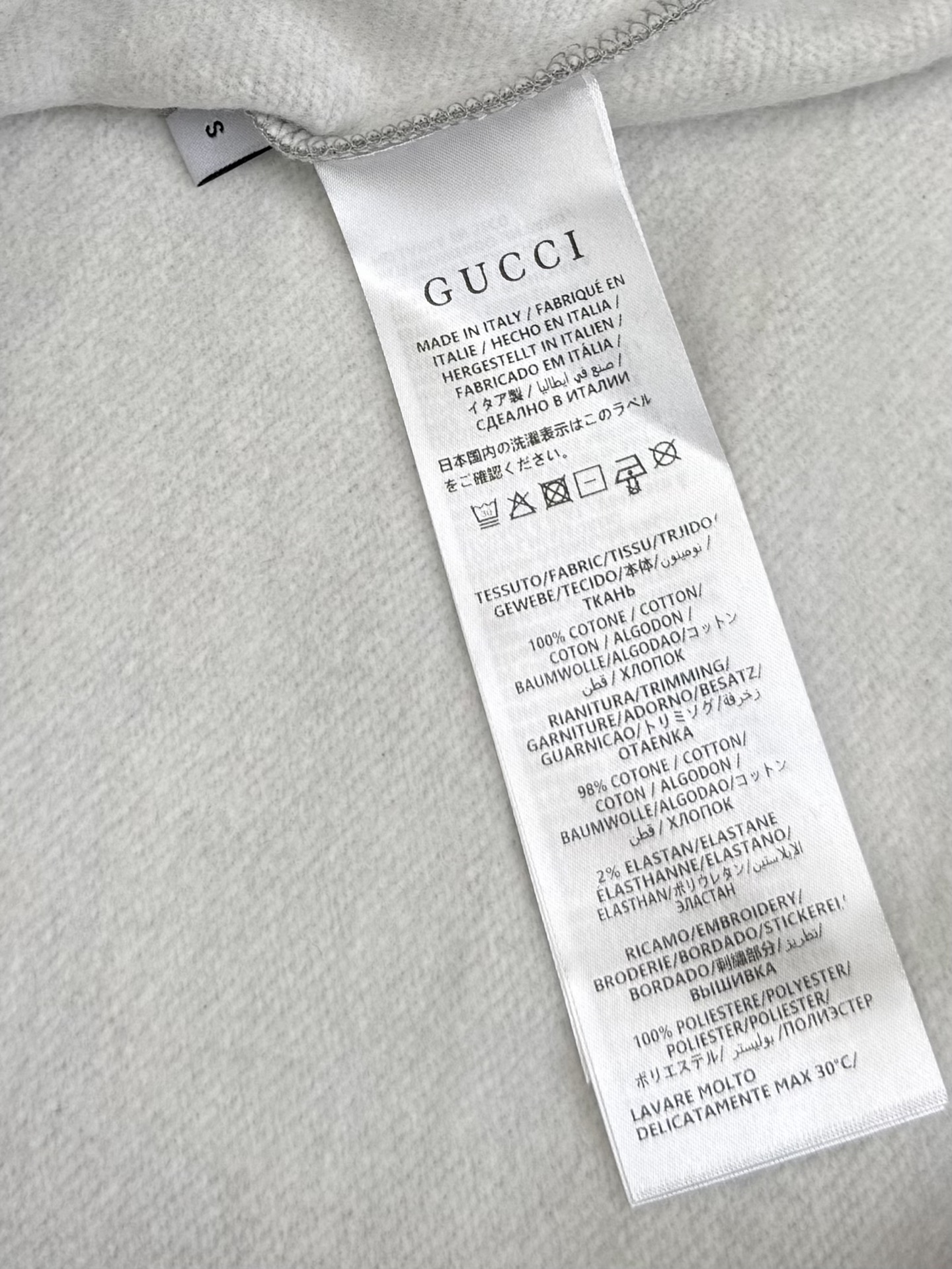 这款衣服是AAAAA 1:1 质量 (非常棒). 使用了和原版一模一样的材料. 商标部分也保持了和古奇/Gucci一样. 图片拍摄是实物衣服拍摄, 您所收到的实物保证和我们图片一模一样.