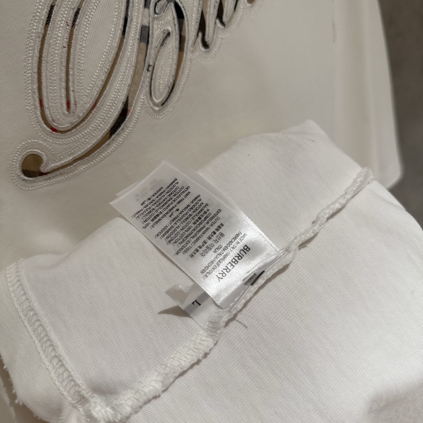 这款衣服是AAAAA 1:1 质量 (非常棒). 使用了和原版一模一样的材料. 商标部分也保持了和巴宝莉/Burberry一样. 图片拍摄是实物衣服拍摄, 您所收到的实物保证和我们图片一模一样.