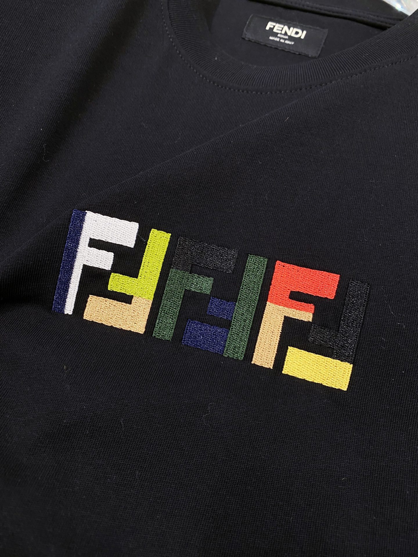 这款衣服是AAAAA 1:1 质量 (非常棒). 使用了和原版一模一样的材料. 商标部分也保持了和芬迪/Fendi一样. 图片拍摄是实物衣服拍摄, 您所收到的实物保证和我们图片一模一样.
