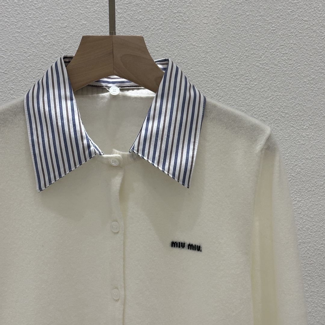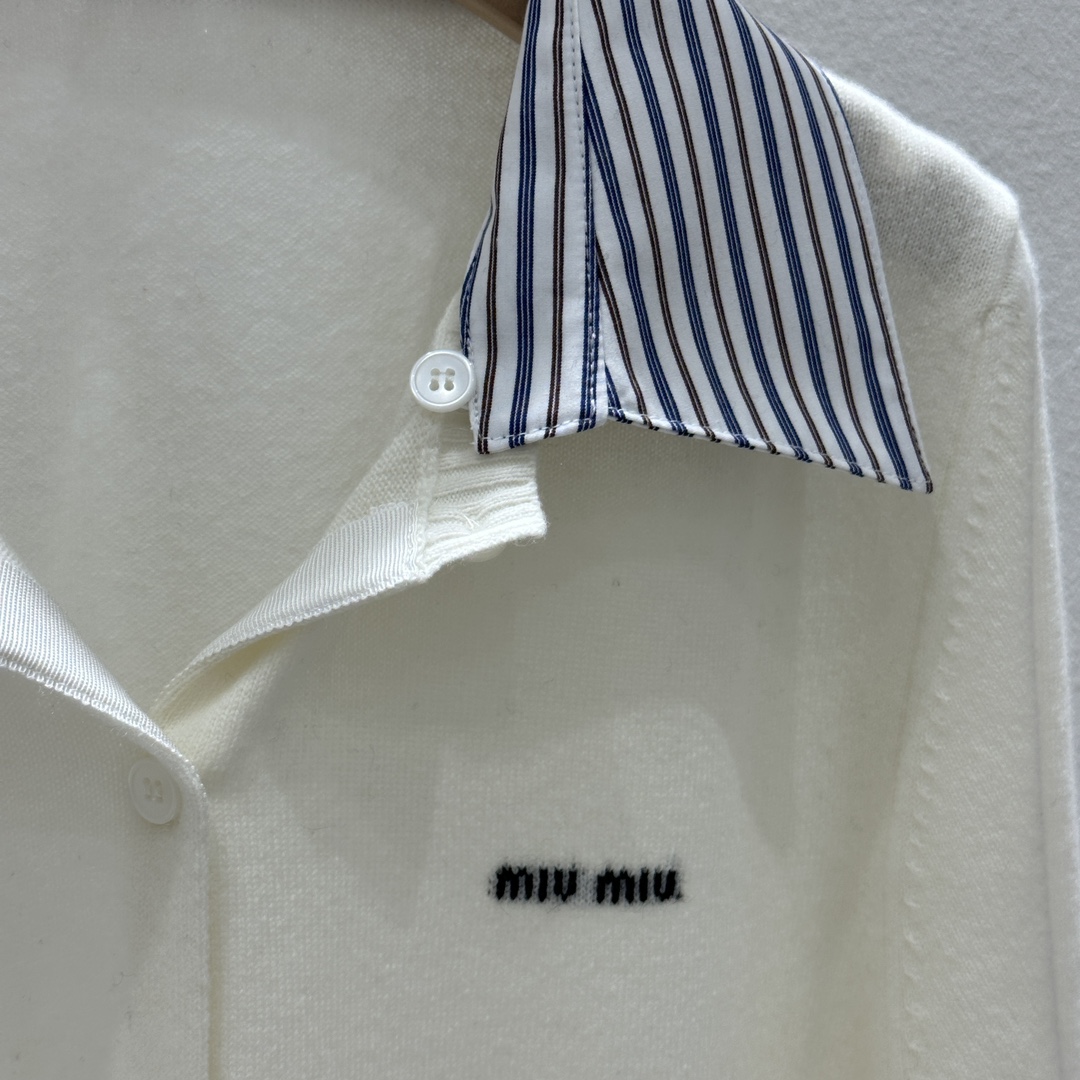 这款衣服是AAAAA 1:1 质量 (非常棒). 使用了和原版一模一样的材料. 商标部分也保持了和缪缪/Miu Miu一样. 图片拍摄是实物衣服拍摄, 您所收到的实物保证和我们图片一模一样.